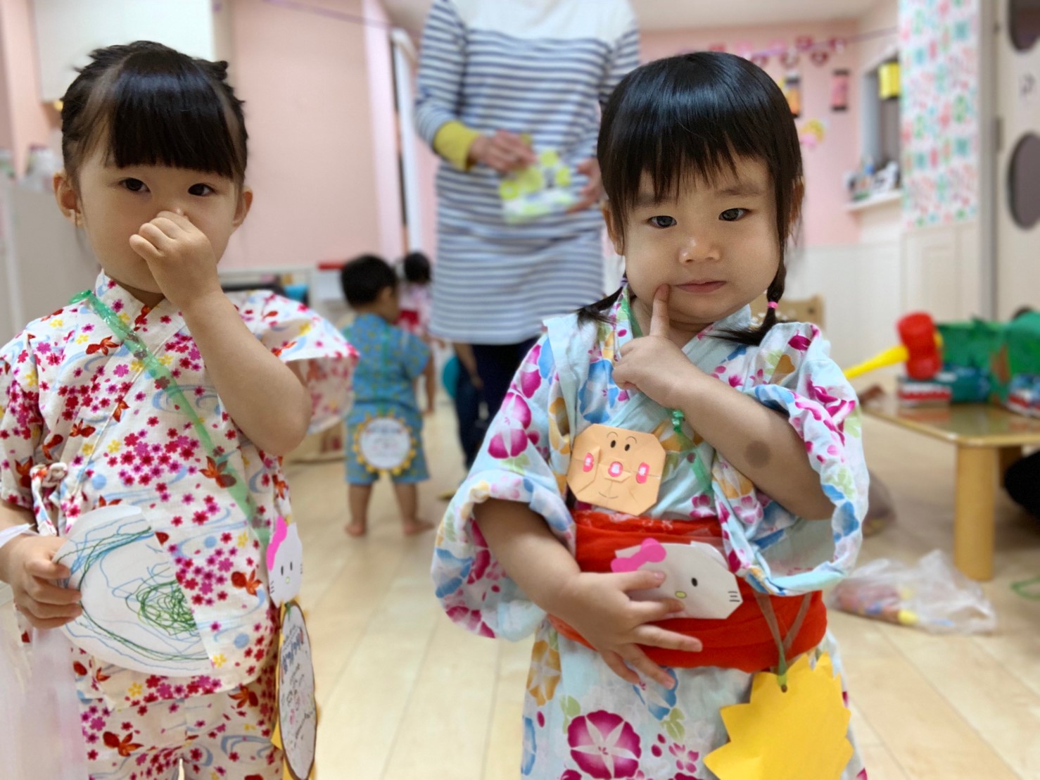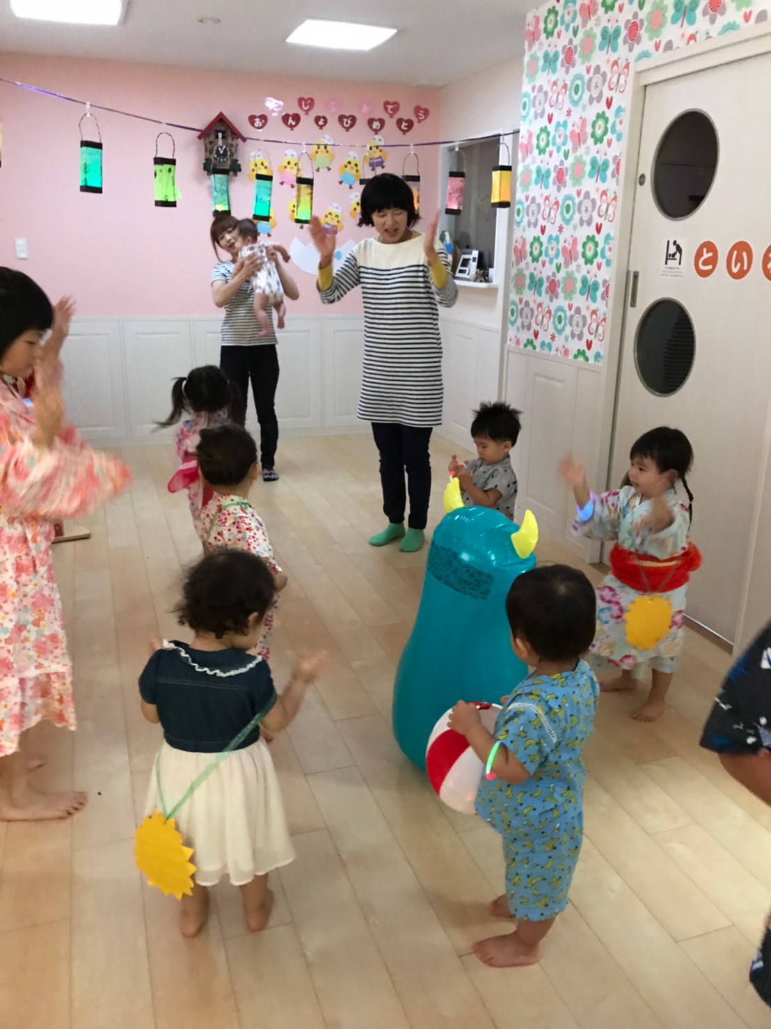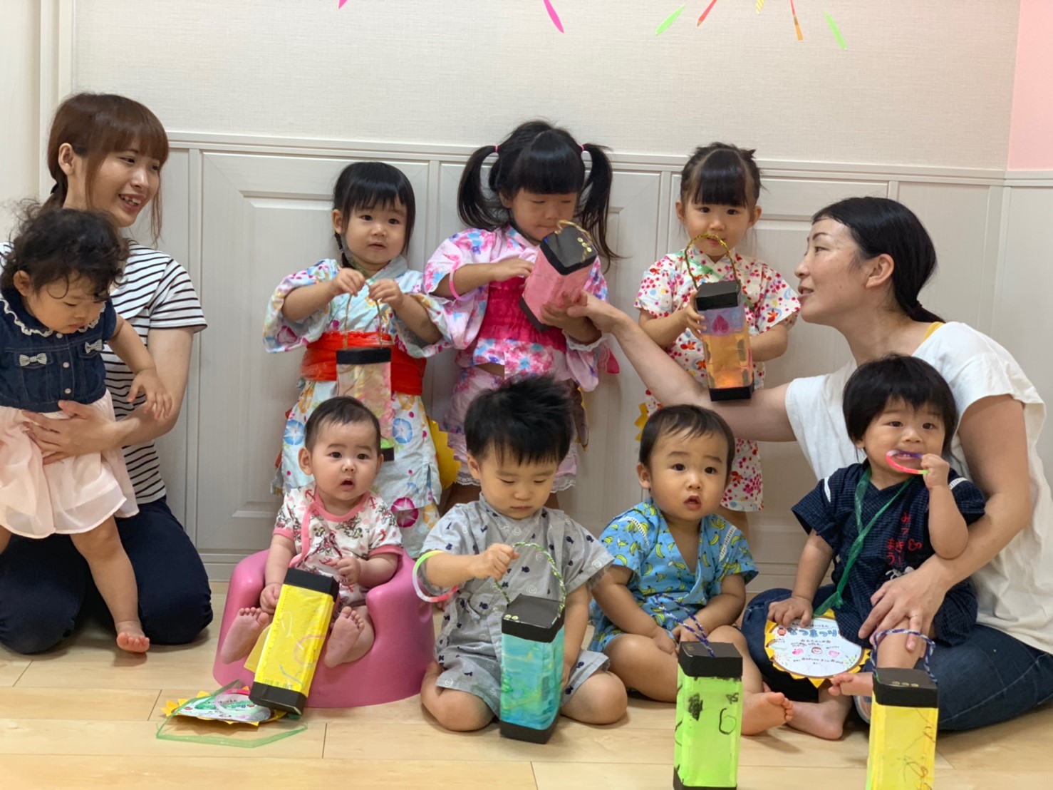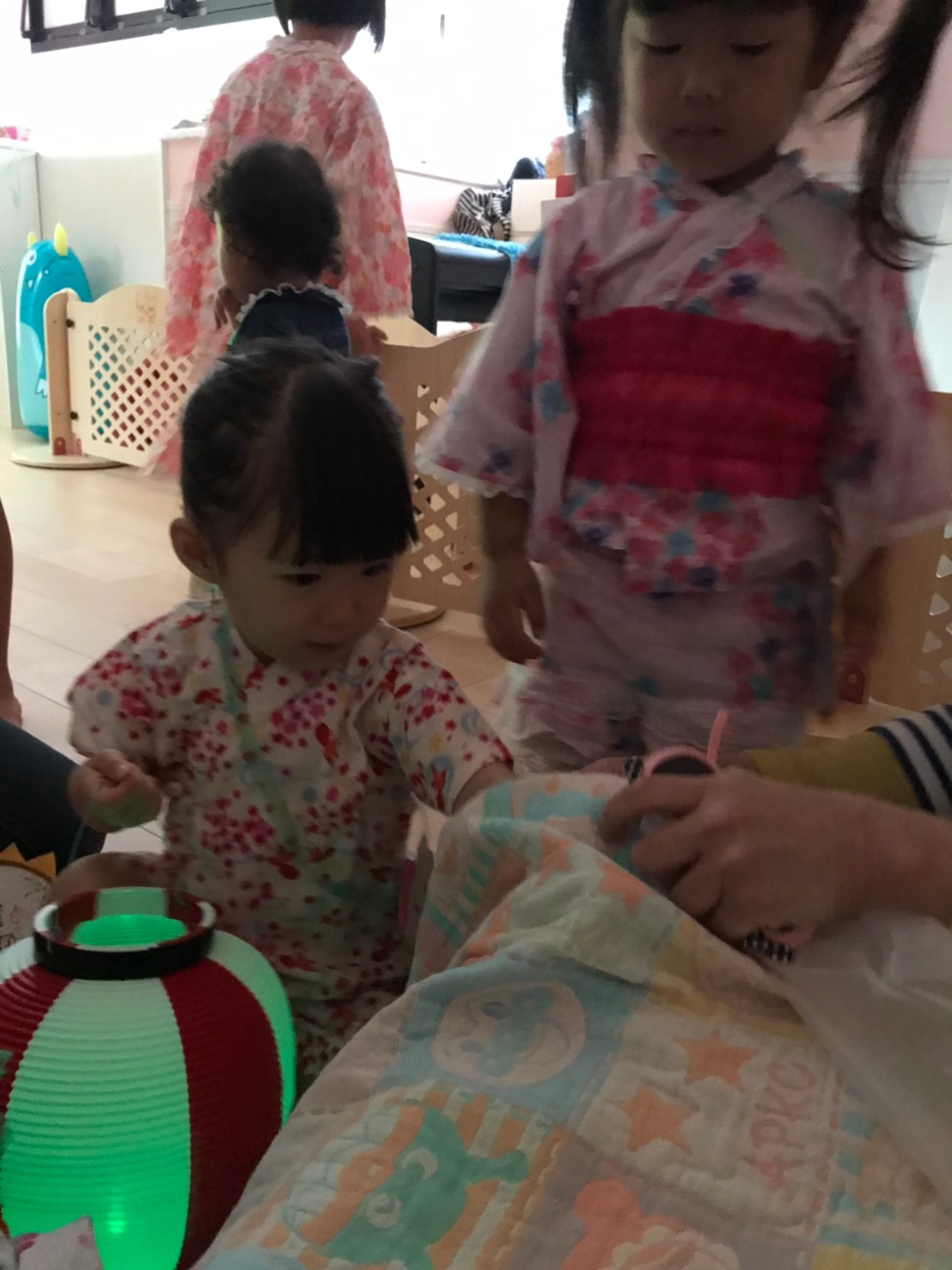 今日は夏祭りでした!!先生達が準備している間、玄関で待っているお友達です☆彡