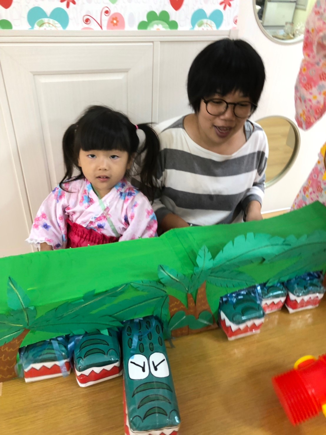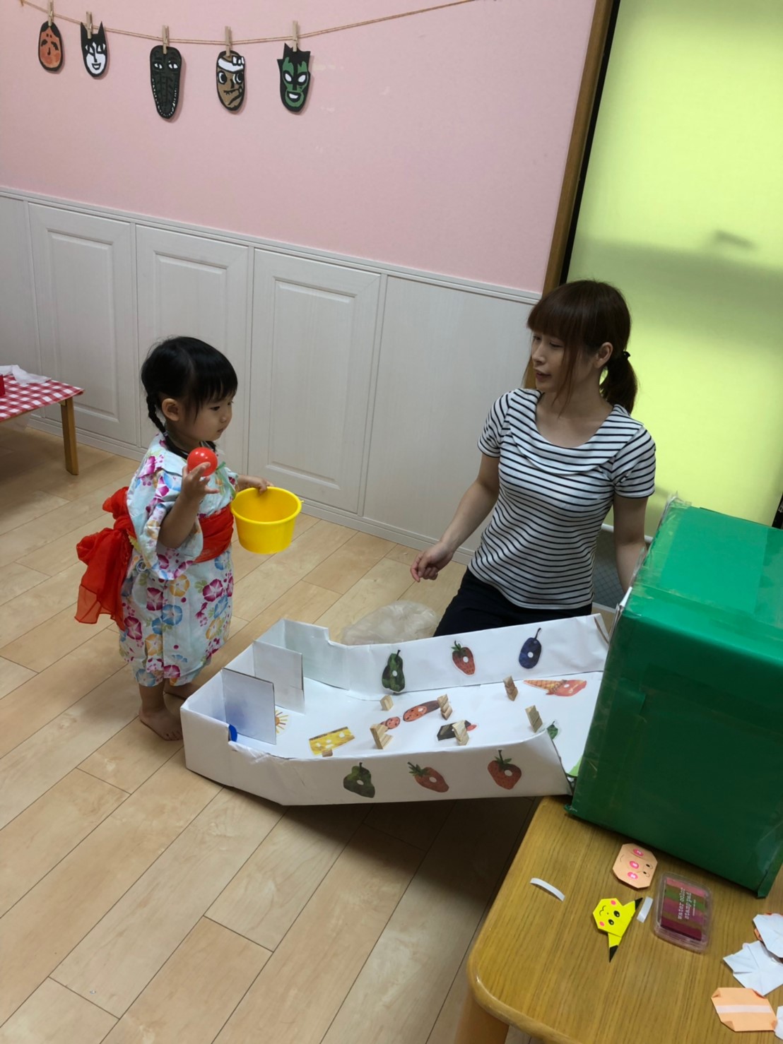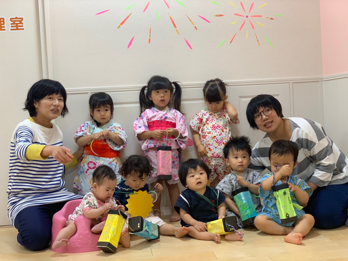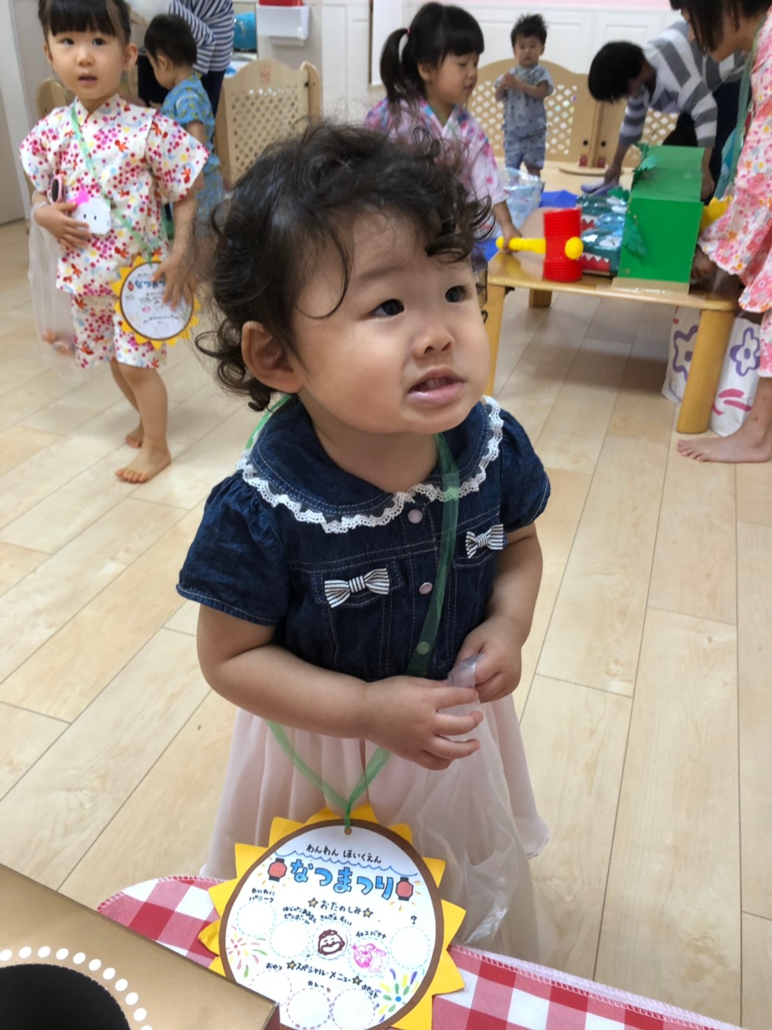 今日は夏祭りでした!!先生達が準備している間、玄関で待っているお友達です☆彡