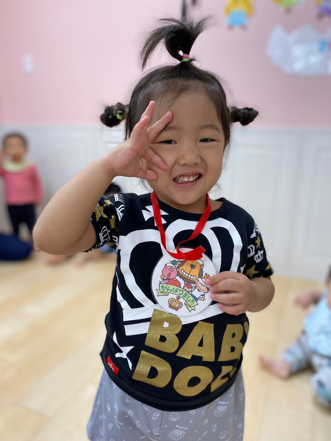 運動会、頑張ったご褒美にメダル(≧▽≦)