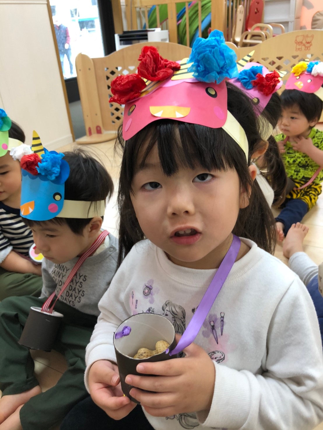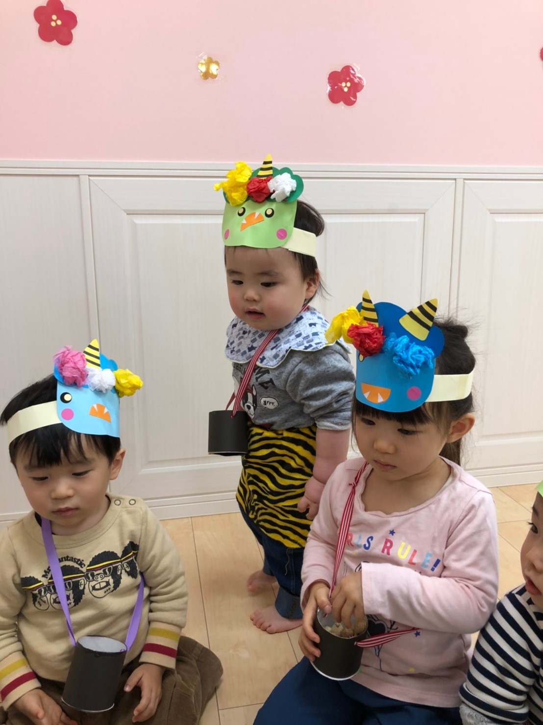Home › わんわん保育園(大橋) › 鬼は外、福は内👹 2020-02-03 鬼は外、福は内👹 今日は節分でしたね!! 先生から節分のお話を聞いて・・・ 豆まきの準備完了です!! みんなドキドキしているのでしょうね 鬼が出てきて。。。豆を投げるのも忘れ、逃げる逃げる・・・!! 心の中の泣き虫鬼や、おこりんぼう鬼はやっつけられたかな??? 最後は鬼さんと記念撮影です📷 前の記事へ 次の記事へ