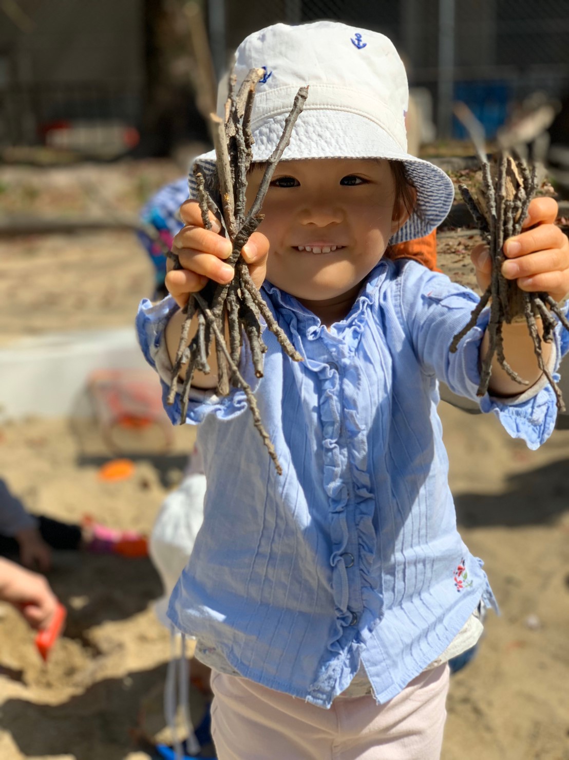砂遊びや、木収集に夢中なお友達でした(≧▽≦)