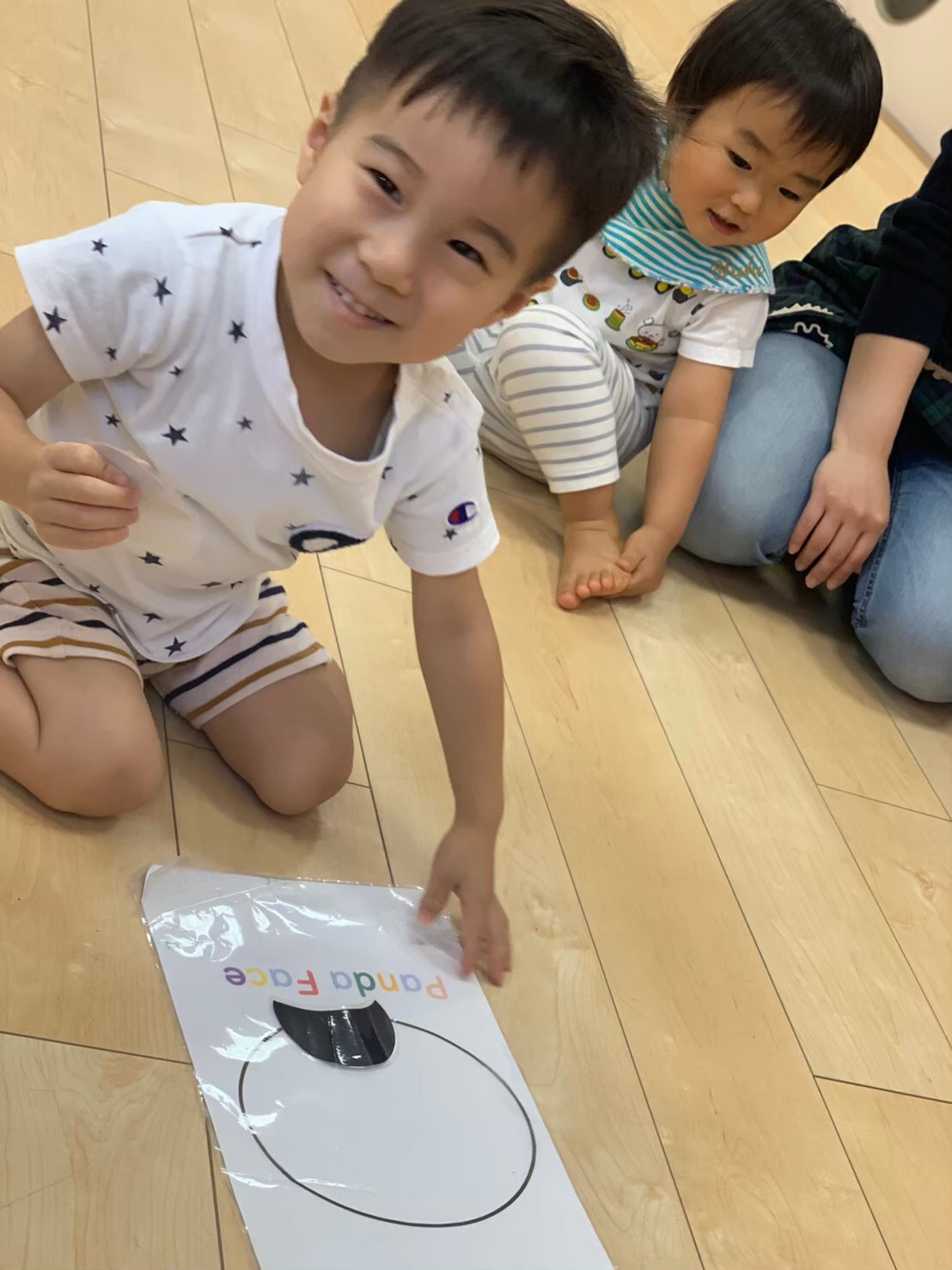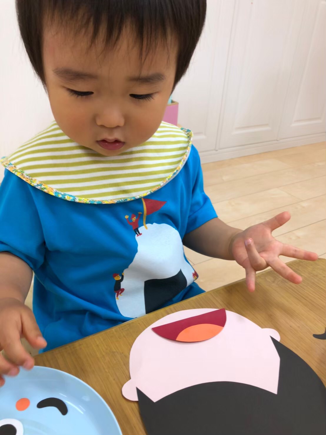 お顔の台紙に目や鼻や口を置いていきますよ~!