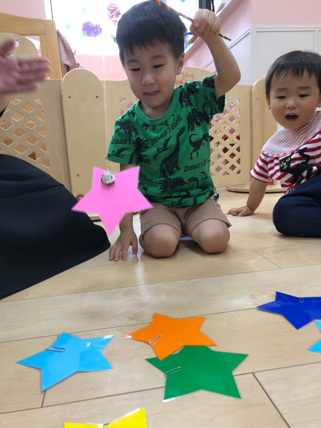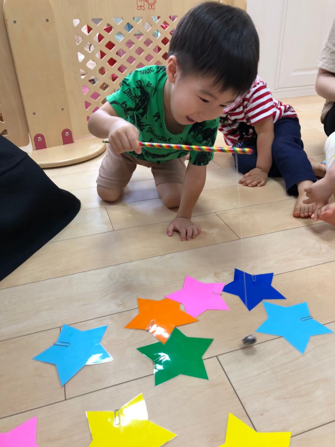 英語のレッスンで先生が言った色のお星さまを釣っています☆彡