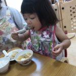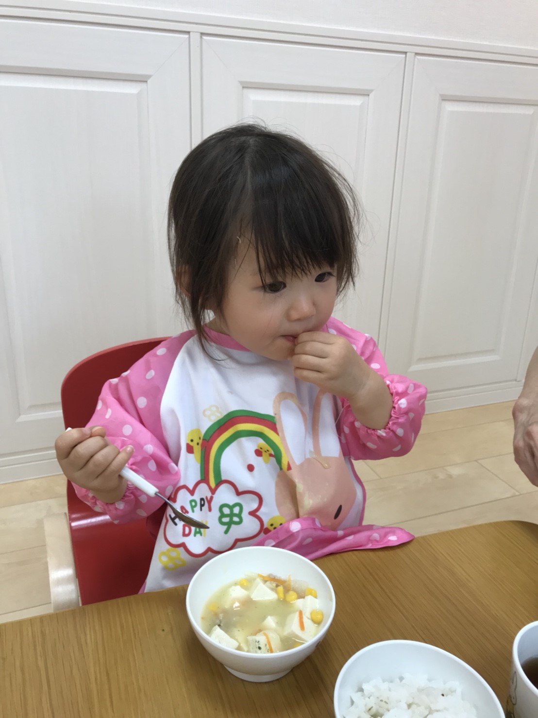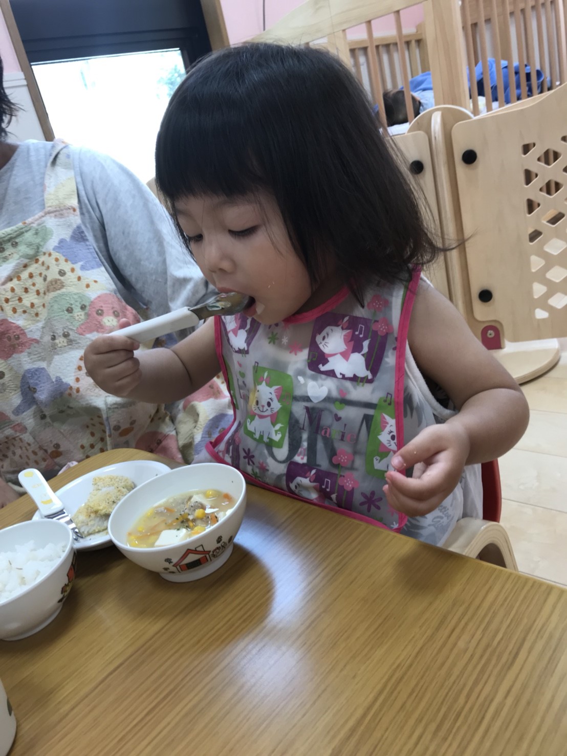 涼しい中で給食time🎶たくさん食べることができていましたよ❤