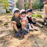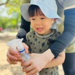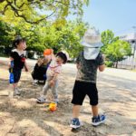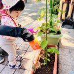 2歳児のお兄ちゃんが水やりする姿をしっかり見つめる1歳児のお友達😊