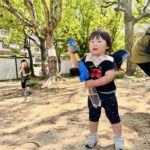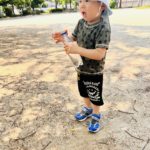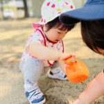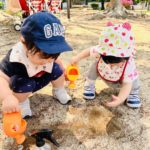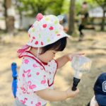 お水をかけながら、お砂も触って泥んこに興味津々です♫