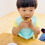 小豆を見つけて、そこからガブっと大きなお口♫小さなお口だなぁーと見ていると、食べた断面から小豆が出てきてました😊