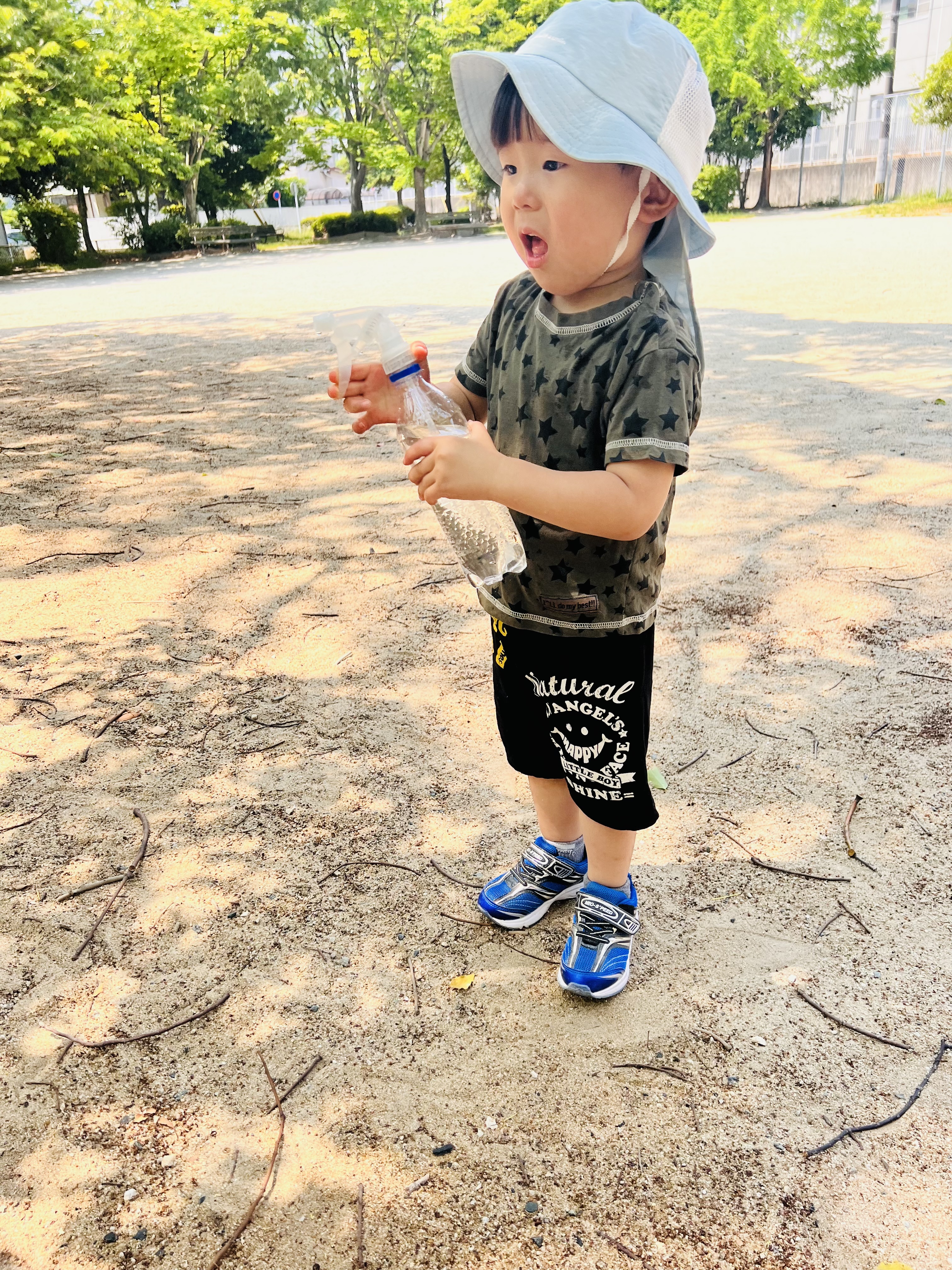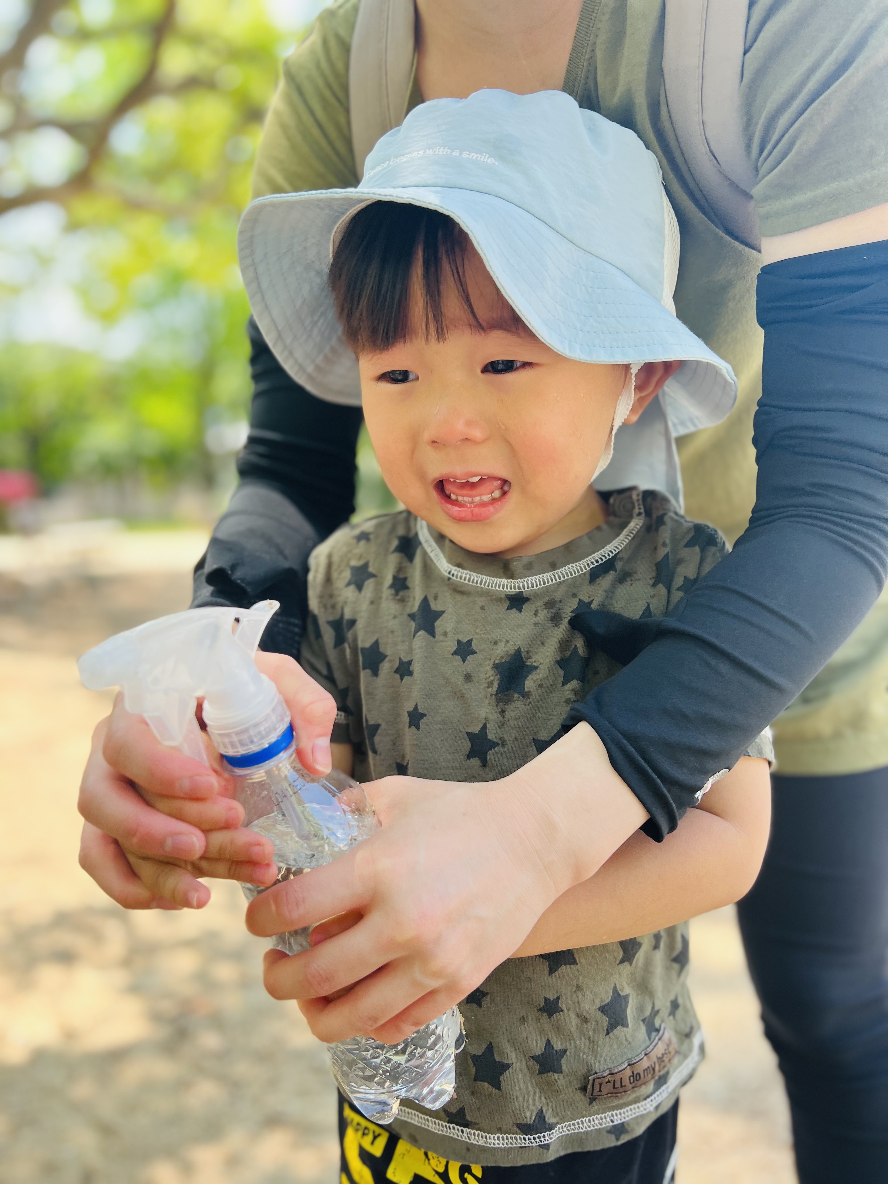 手に砂がついたから…霧吹きで少しずつ手を洗ってます😁
