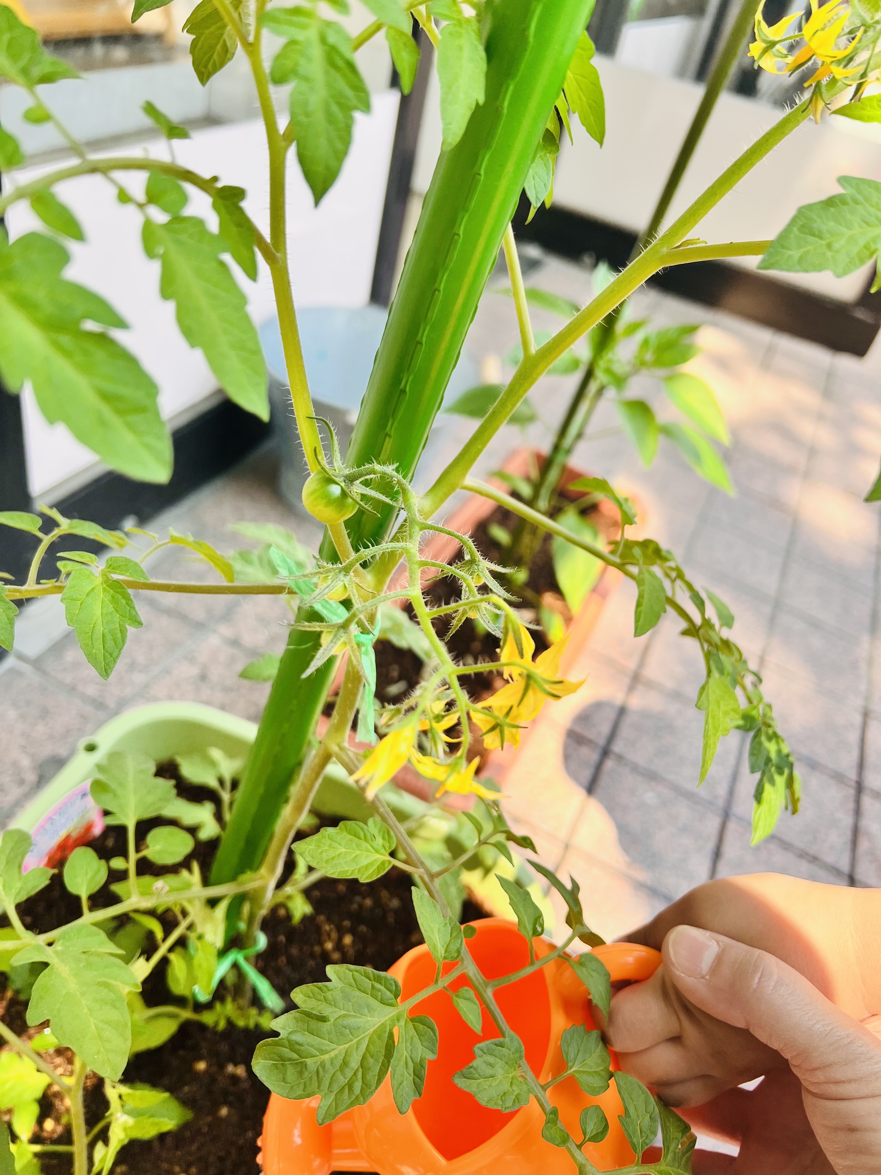今週も水やりをしながらミニトマトとピーマンを観察しますよ♫