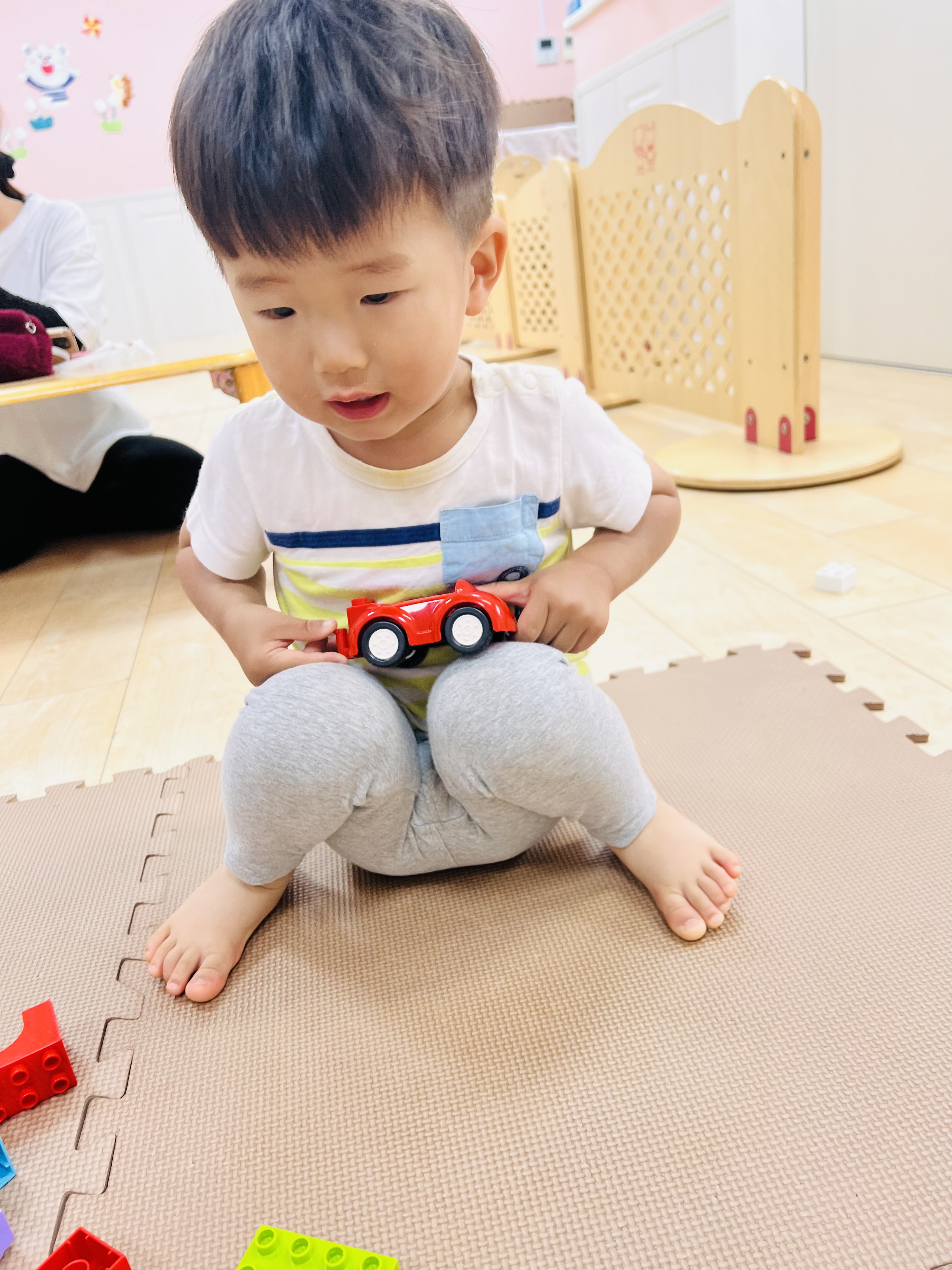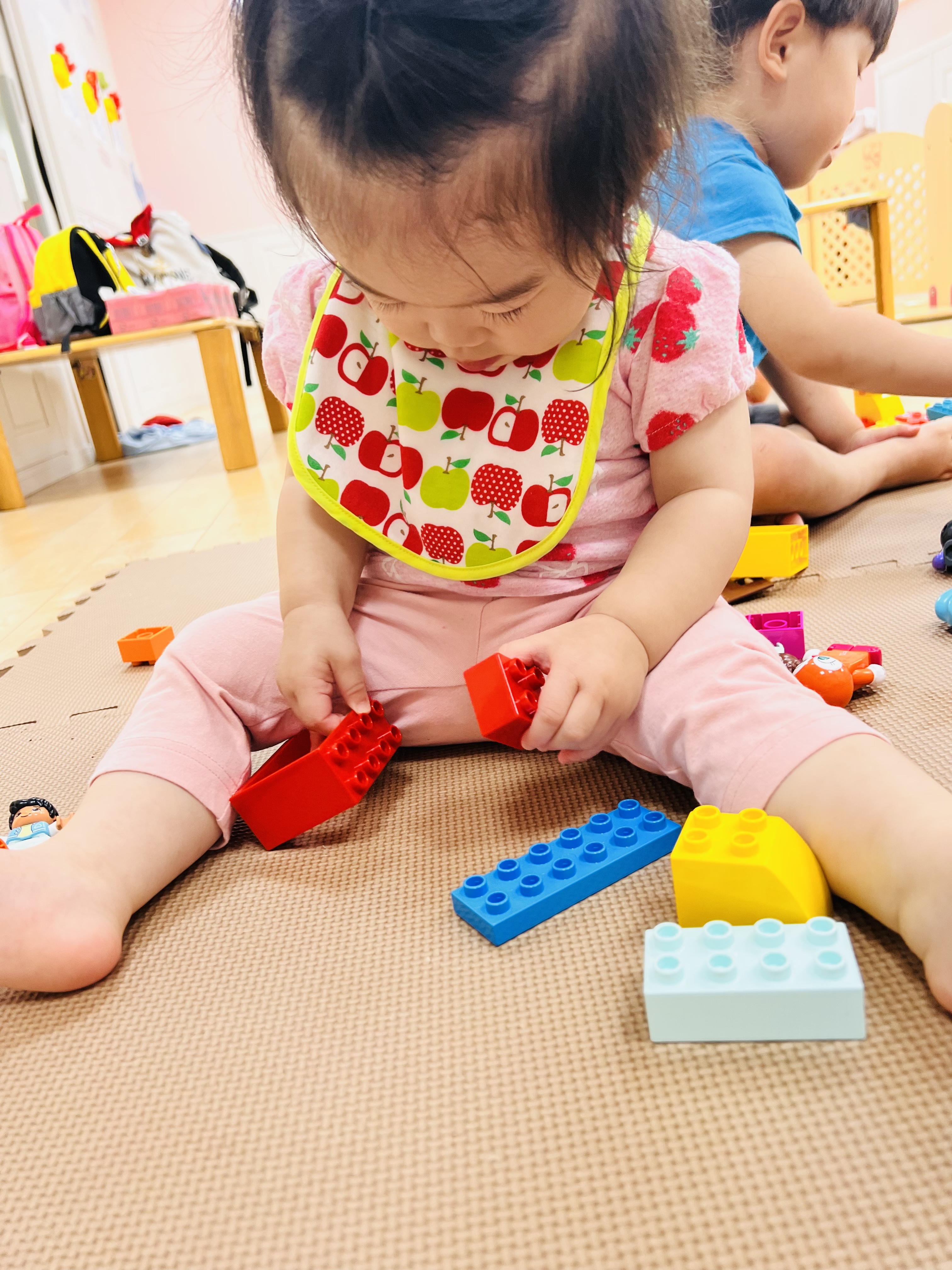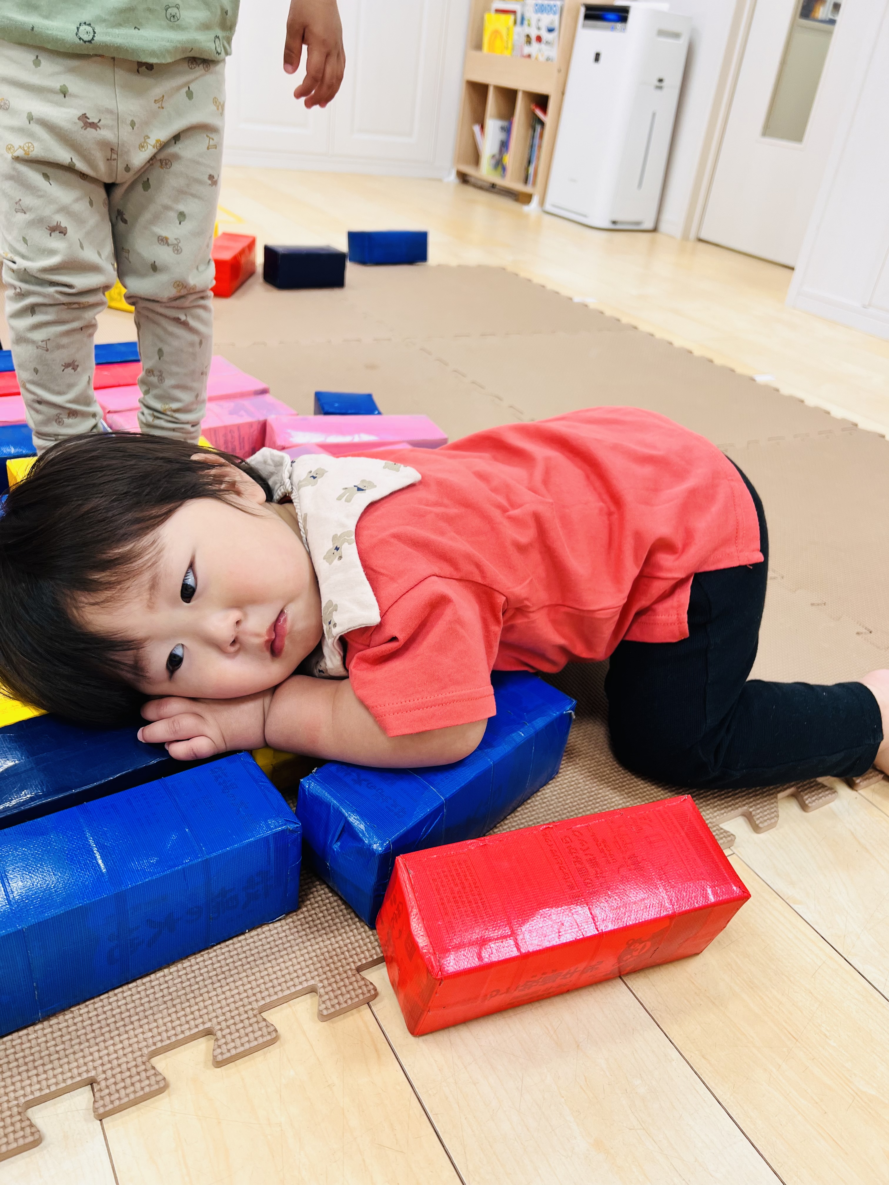 ブロックをくっつける事も難しかったお友達が1人遊びを黙々とするうちに自分でくっつける事ができるようになってます✨