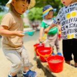 スコップを洗いたいお友達と、手をお水につけていたいお友達と譲り合いながら遊びました😊