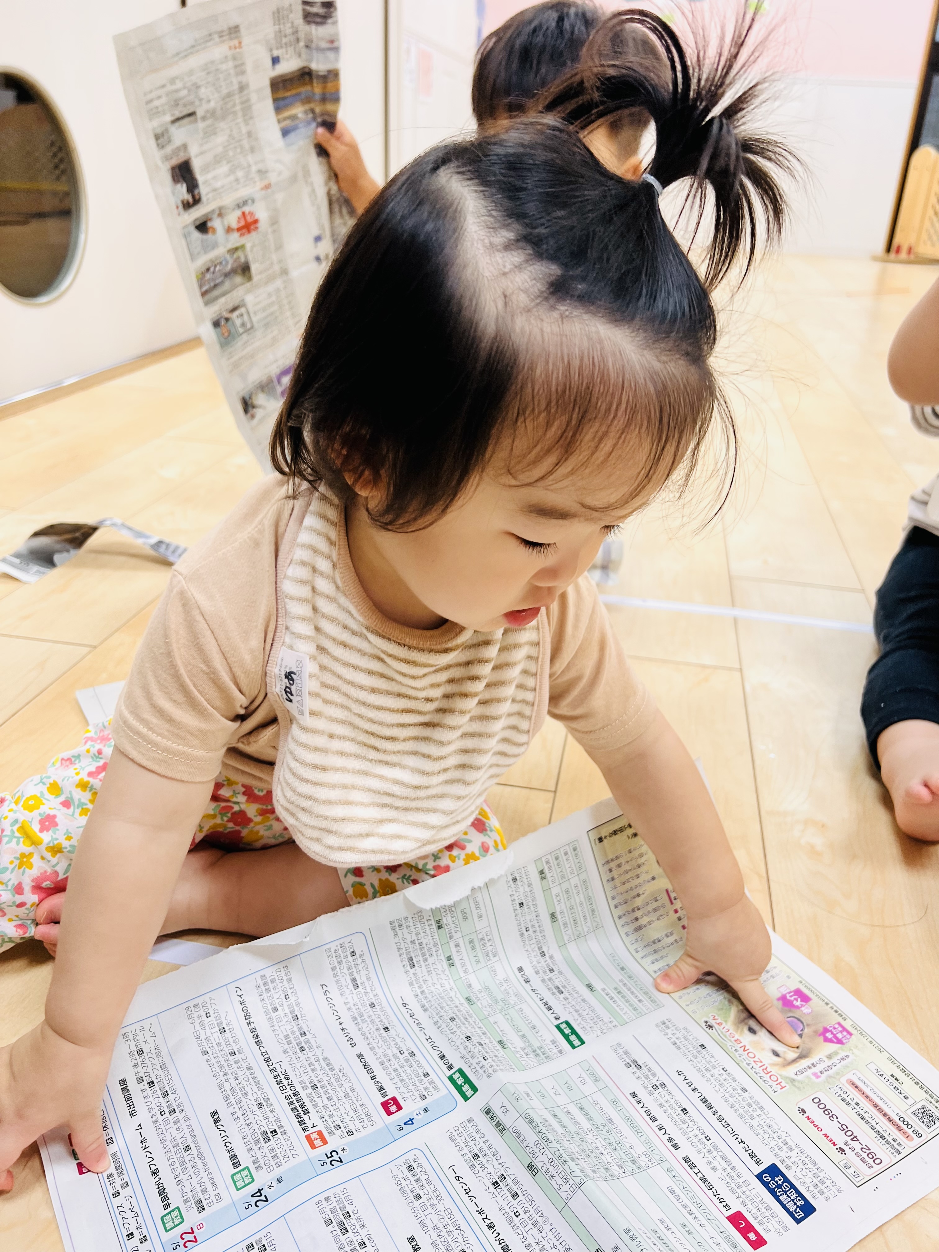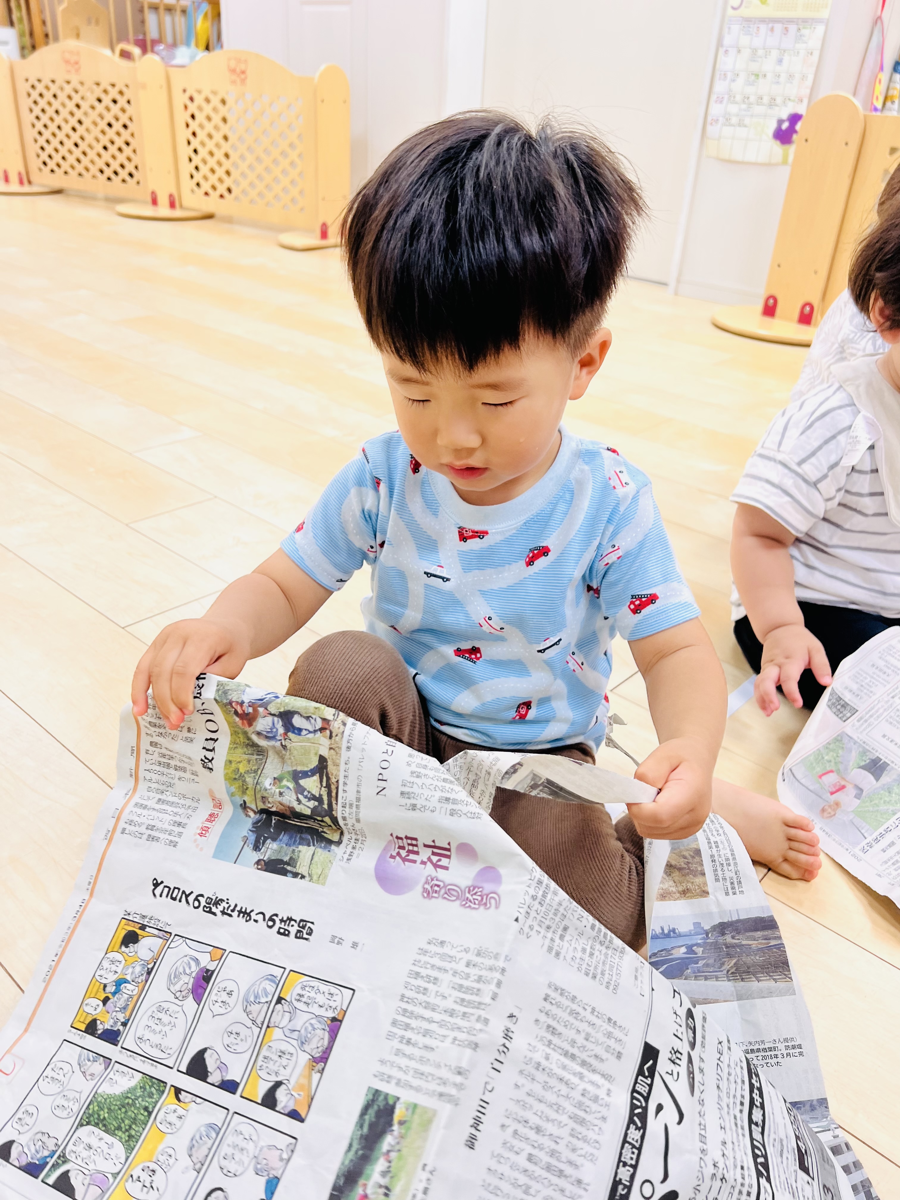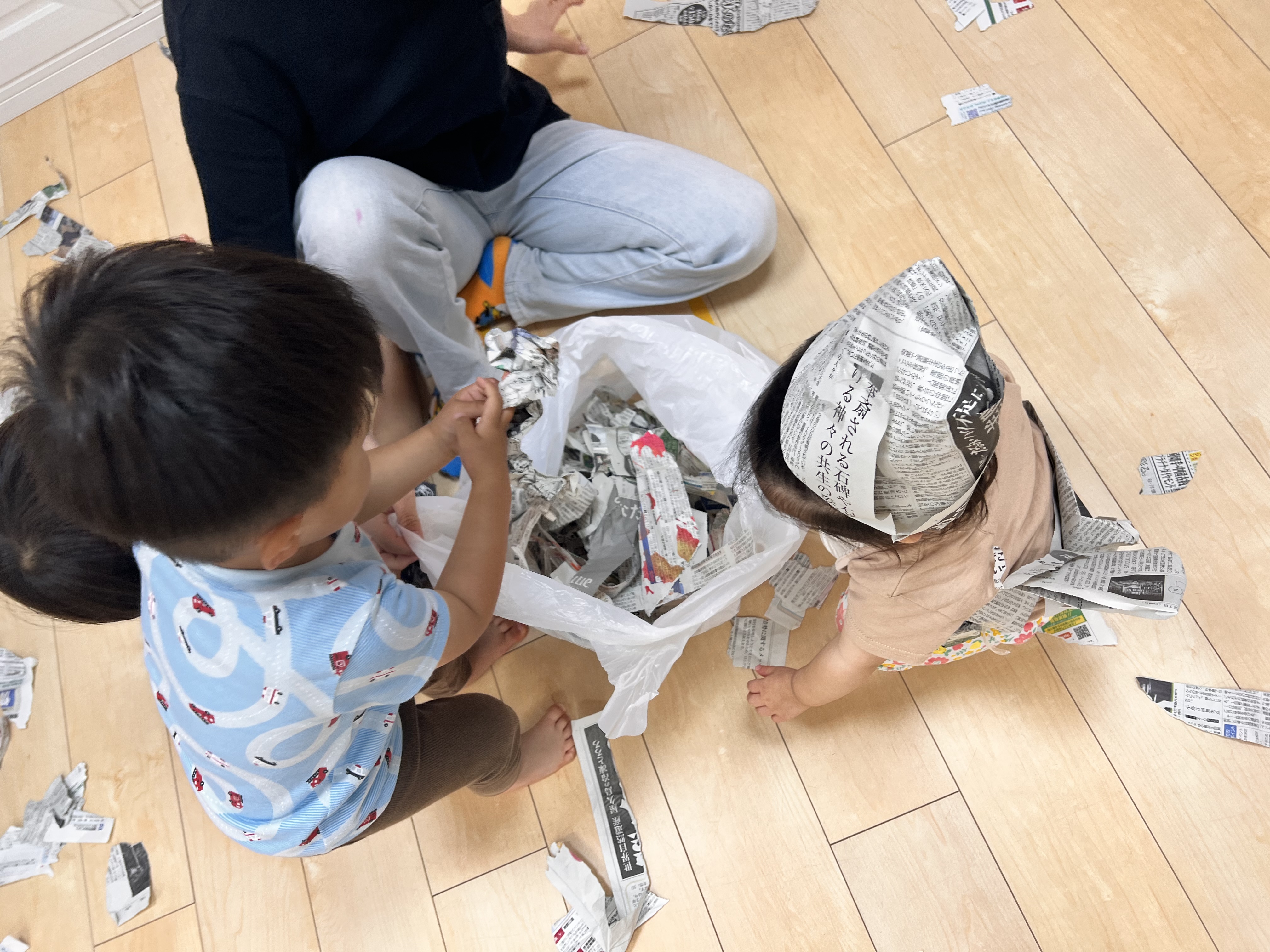 ちぎったり、丸めたり、新聞紙を読んだり😁