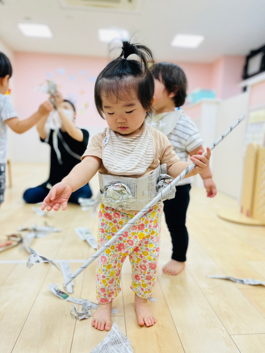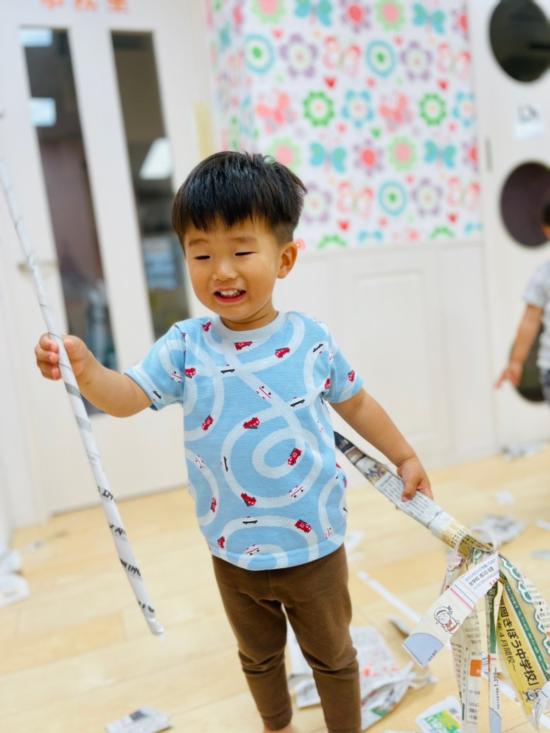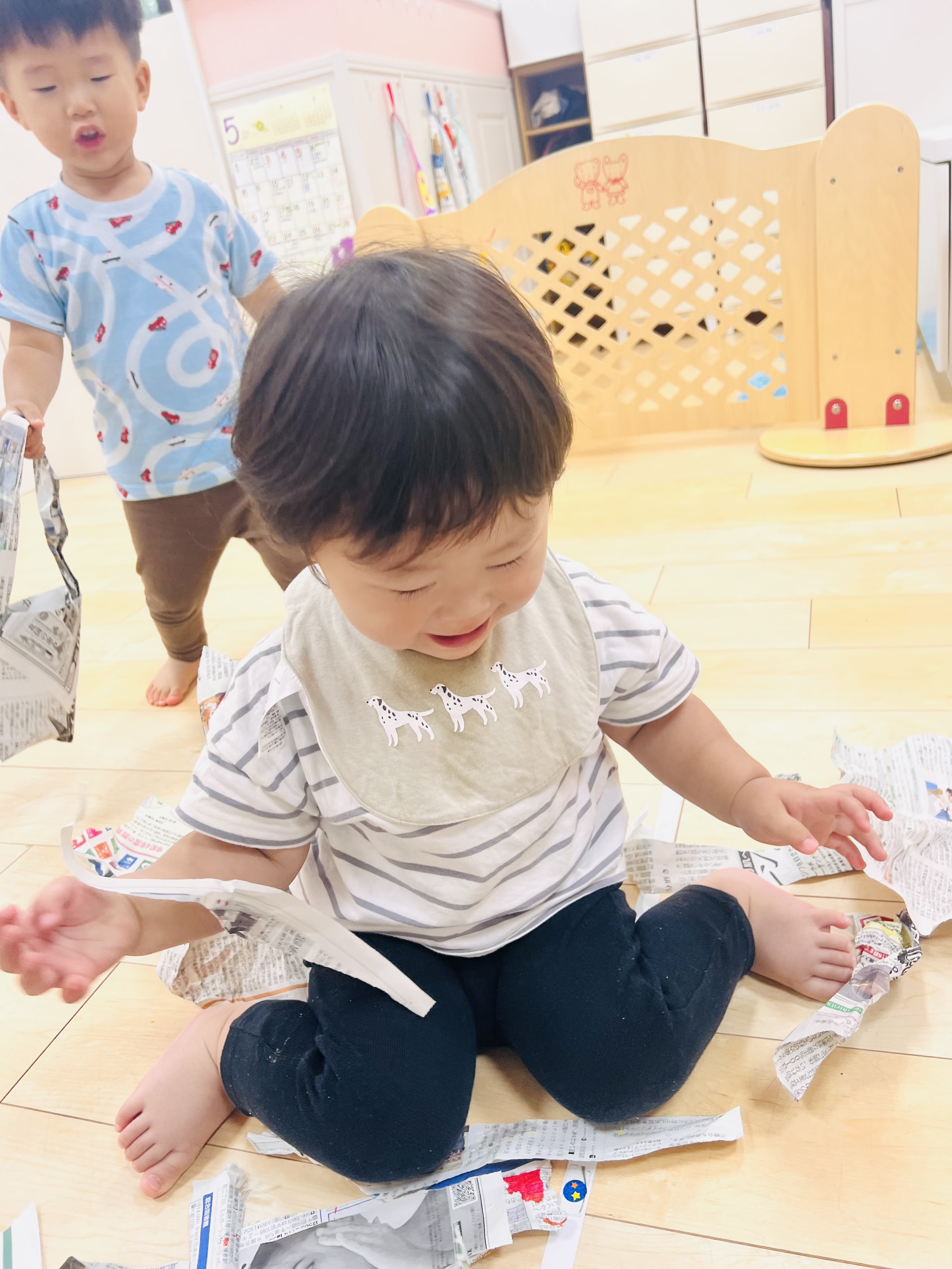 ちぎったり、丸めたり、新聞紙を読んだり😁