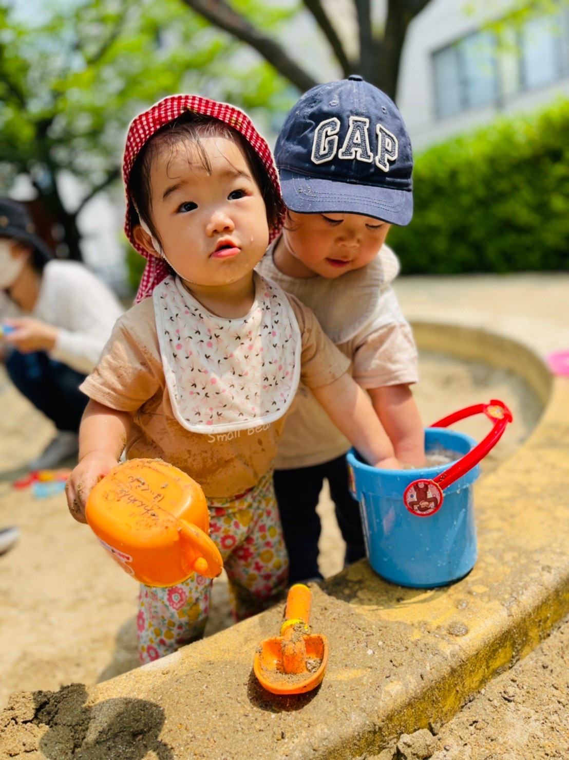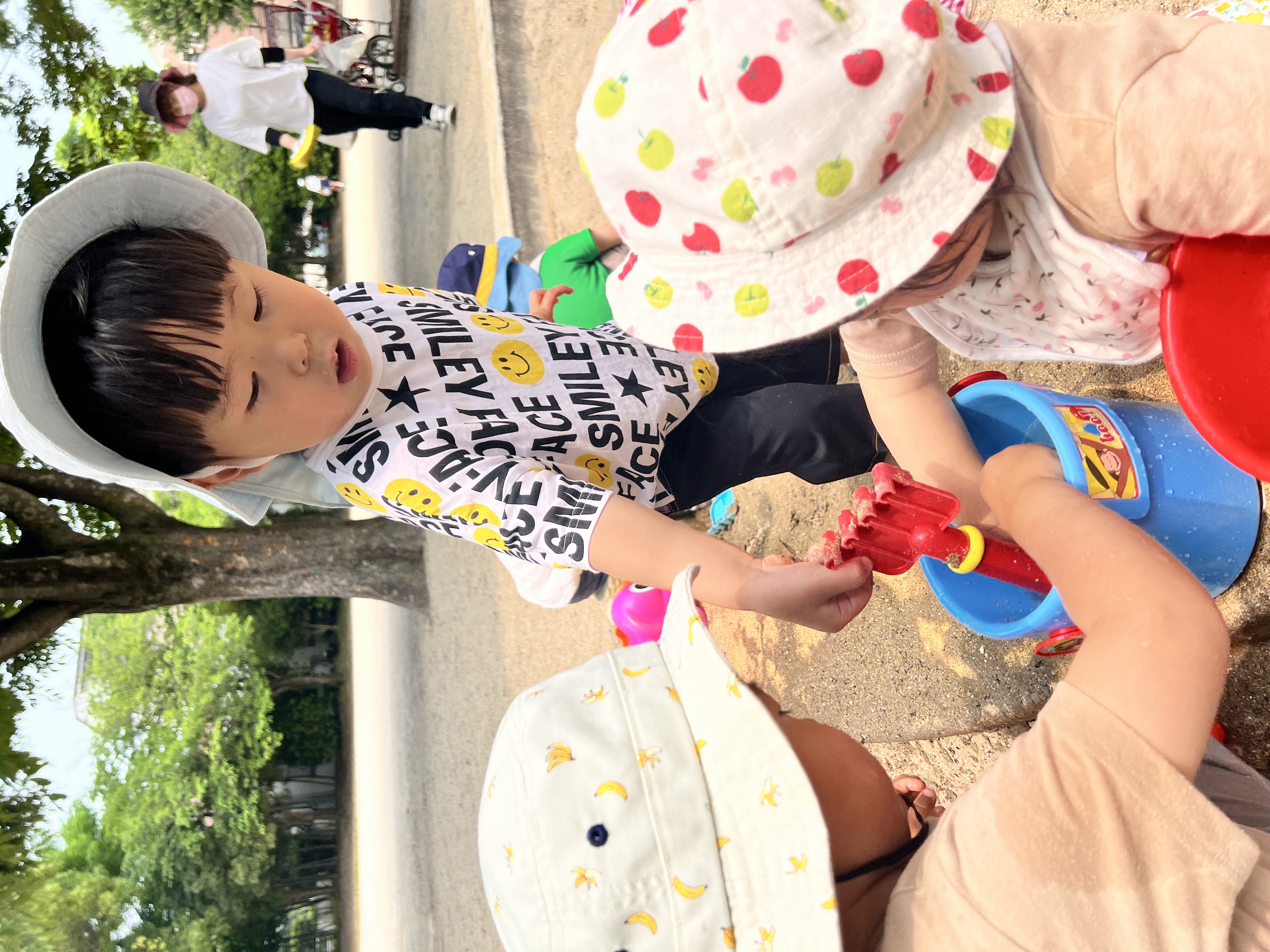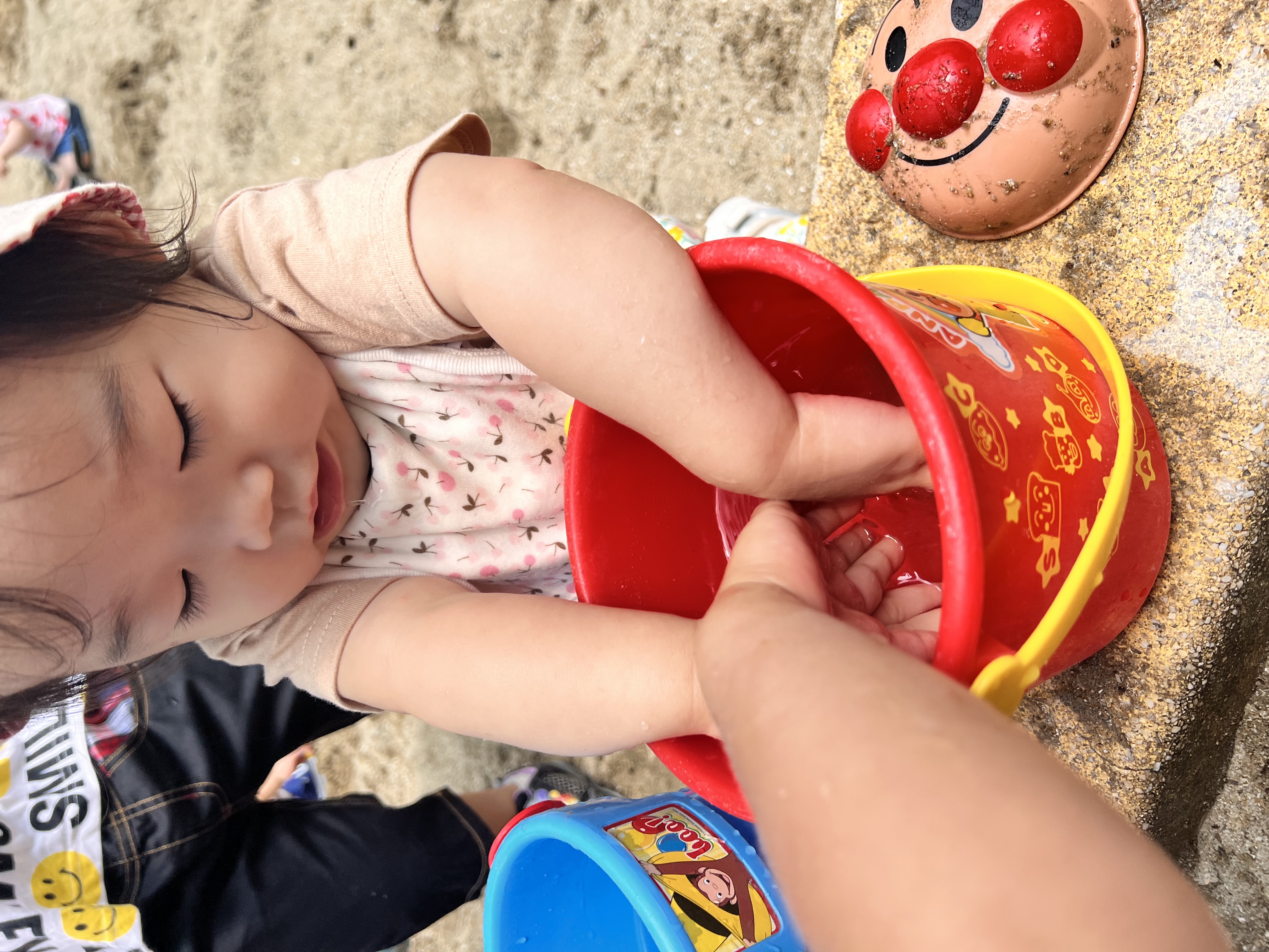 スコップを洗いたいお友達と、手をお水につけていたいお友達と譲り合いながら遊びました😊