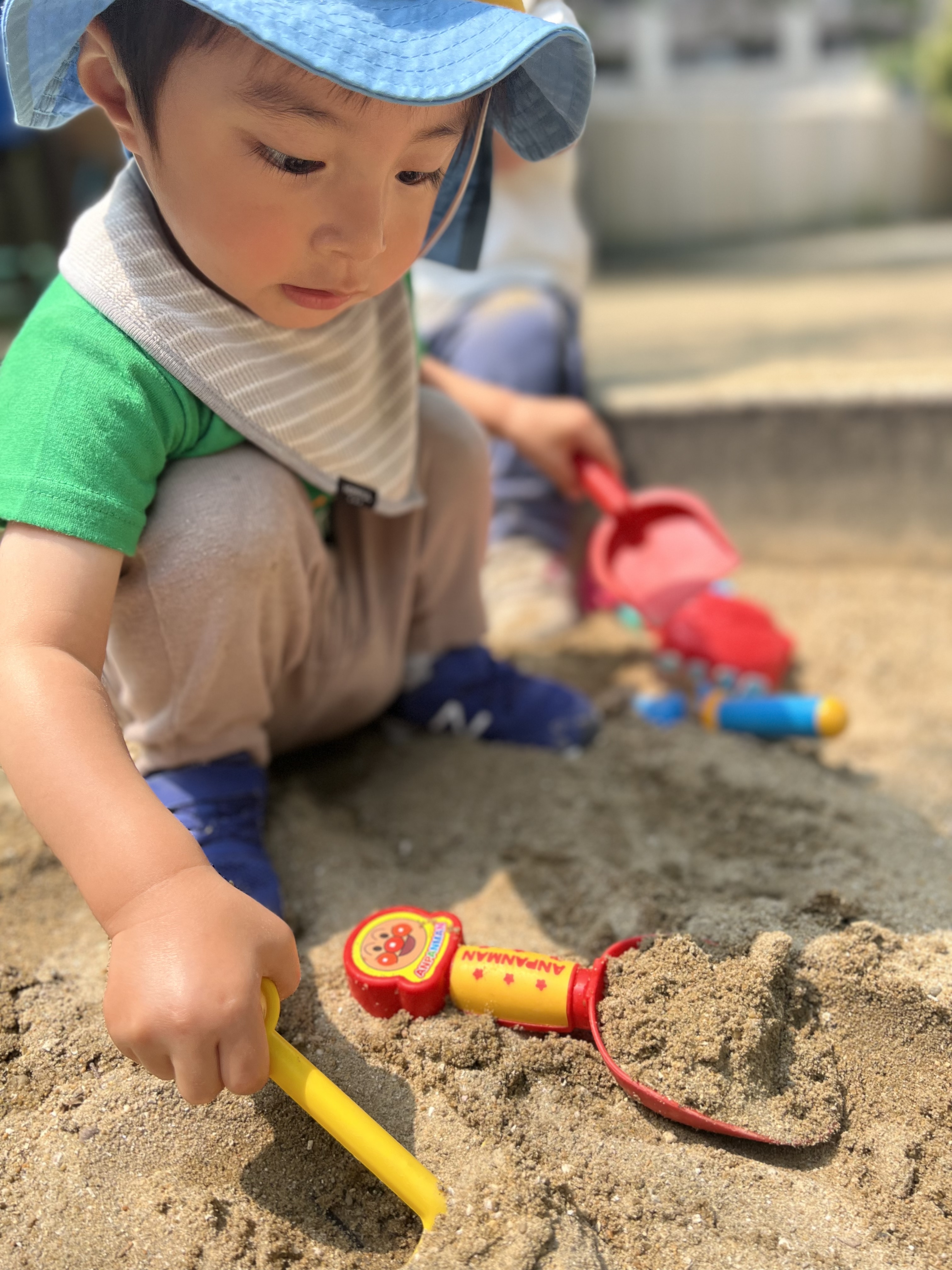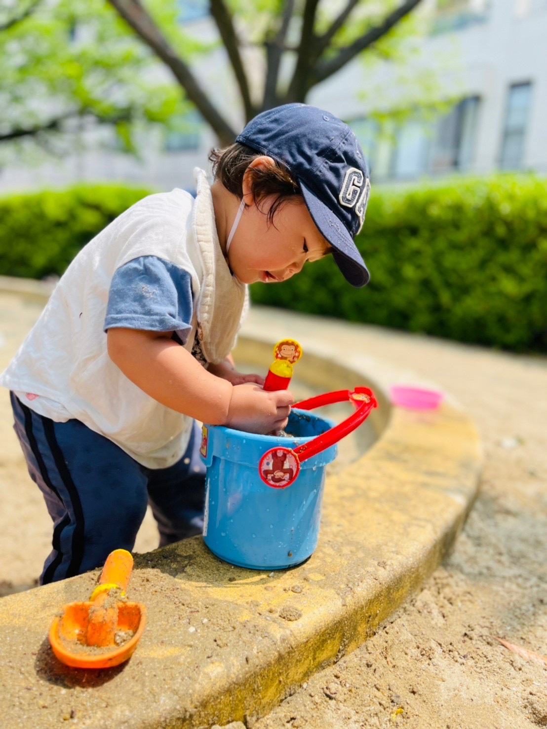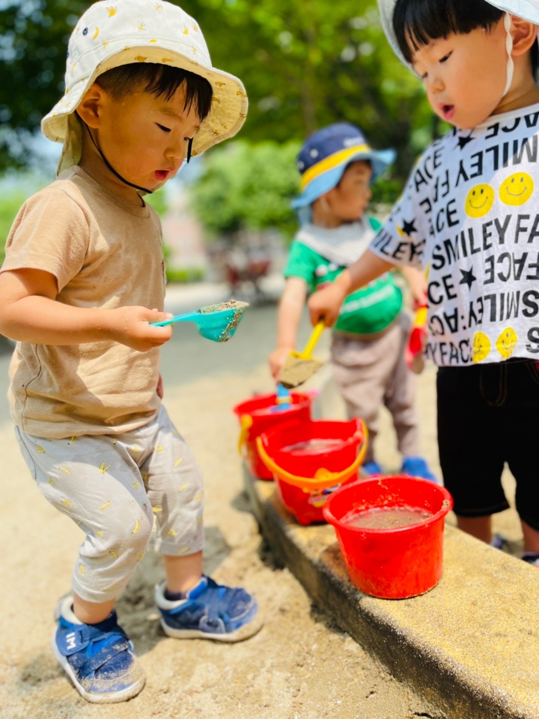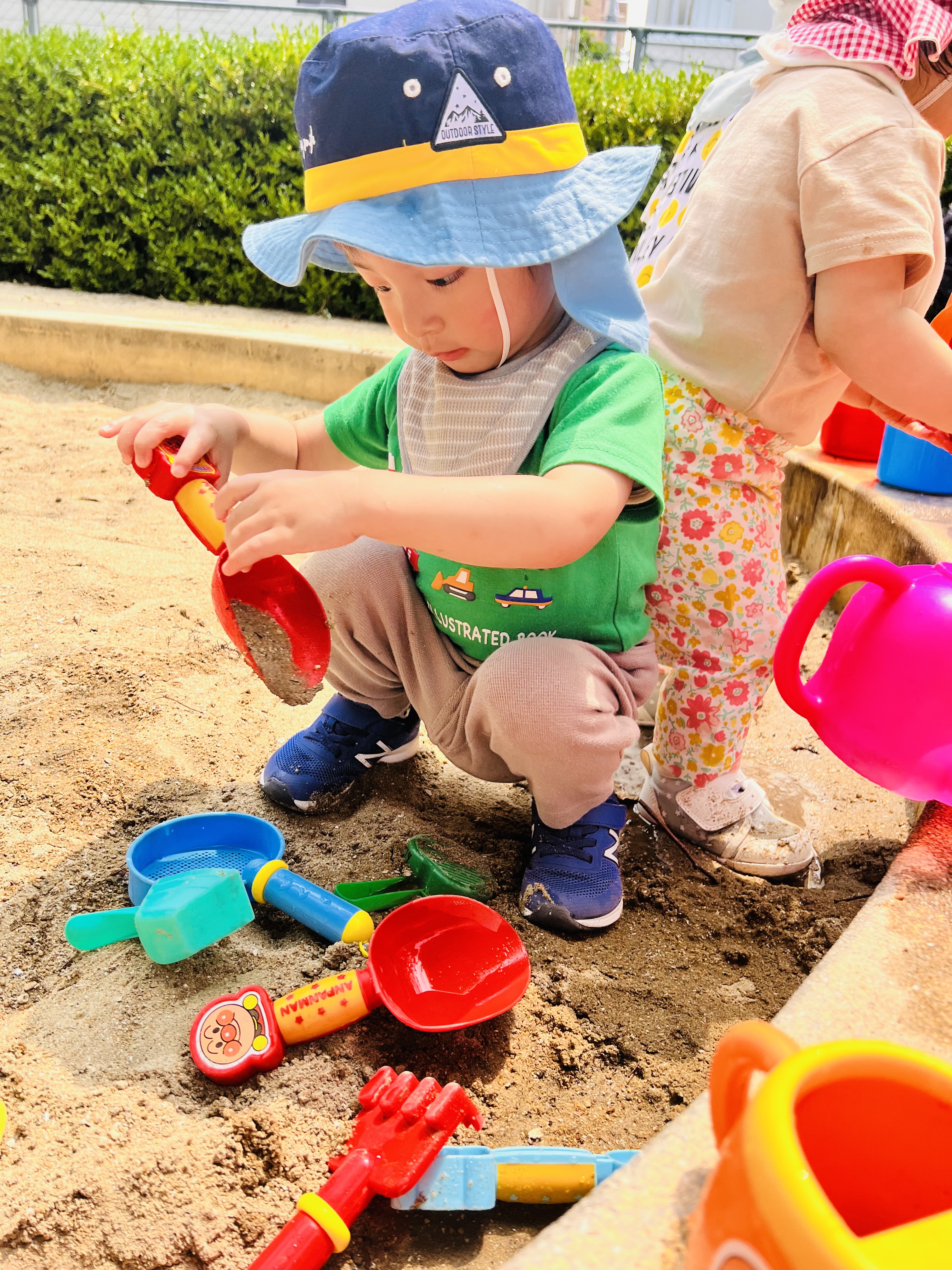 スコップを洗いたいお友達と、手をお水につけていたいお友達と譲り合いながら遊びました😊
