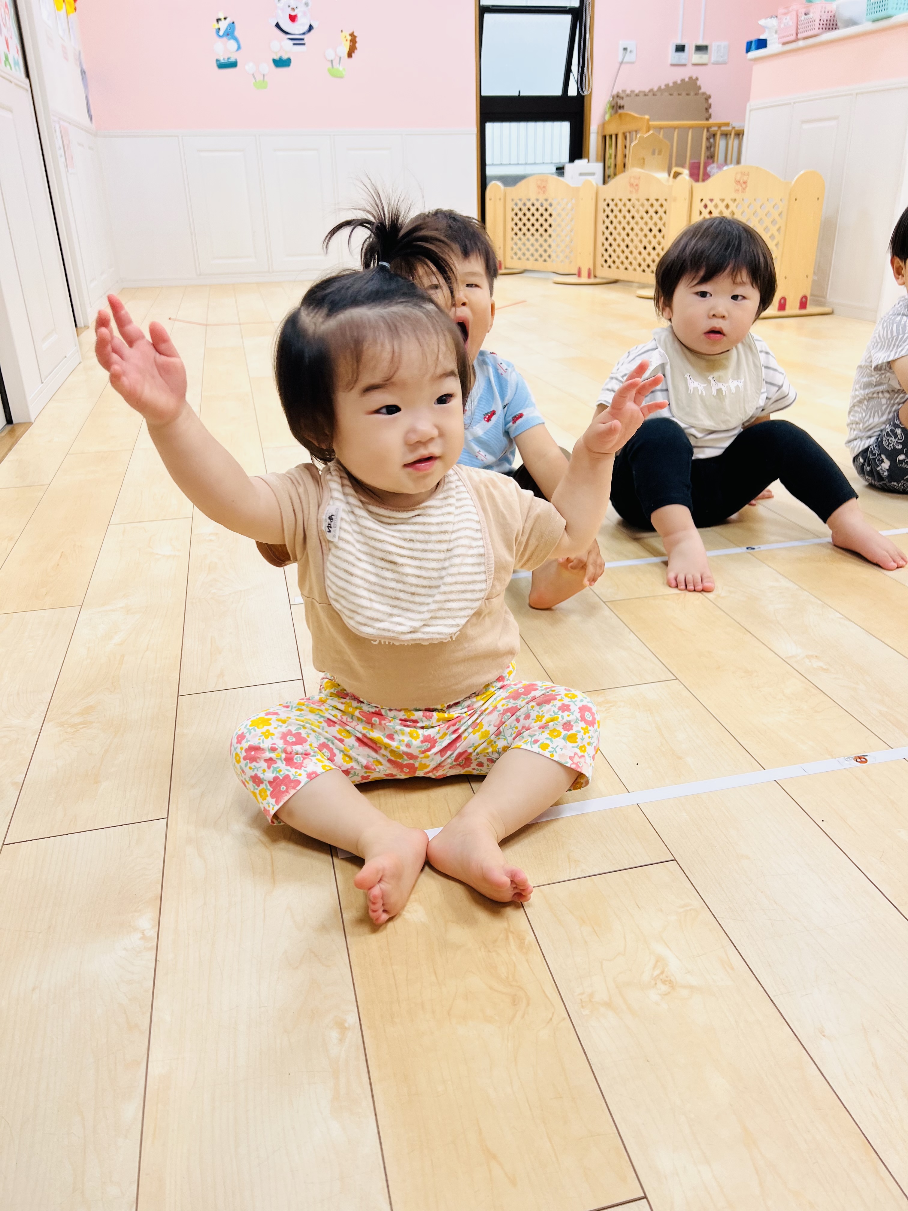 お名前呼びではハーイのお返事。1歳児さんはまだ発声せずジェスチャーだけですが、しっかり手をあげてくれます😊