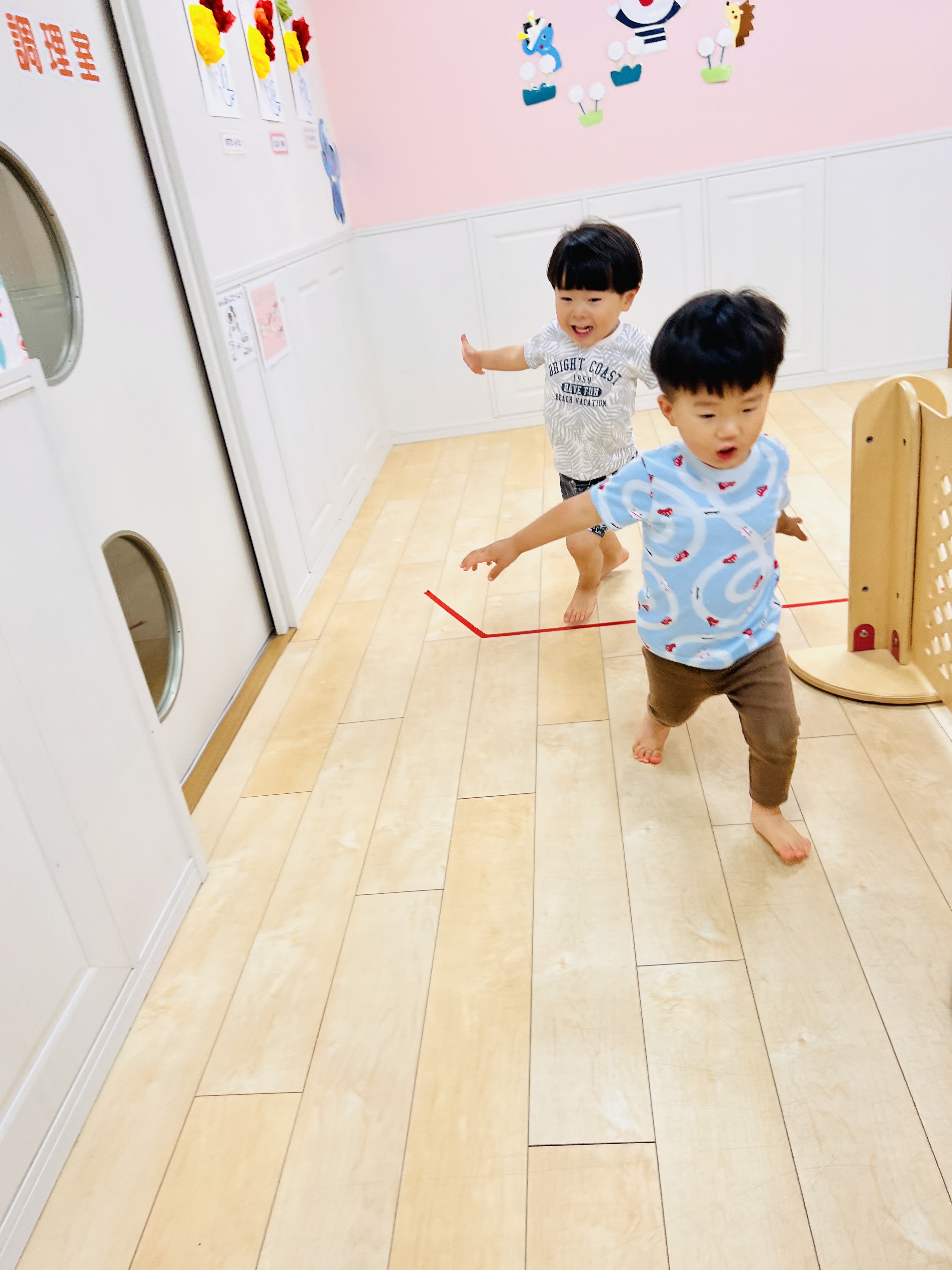 2歳児のお兄ちゃんは先生と手を繋いで歩くのも上手になり体力もついてます✨