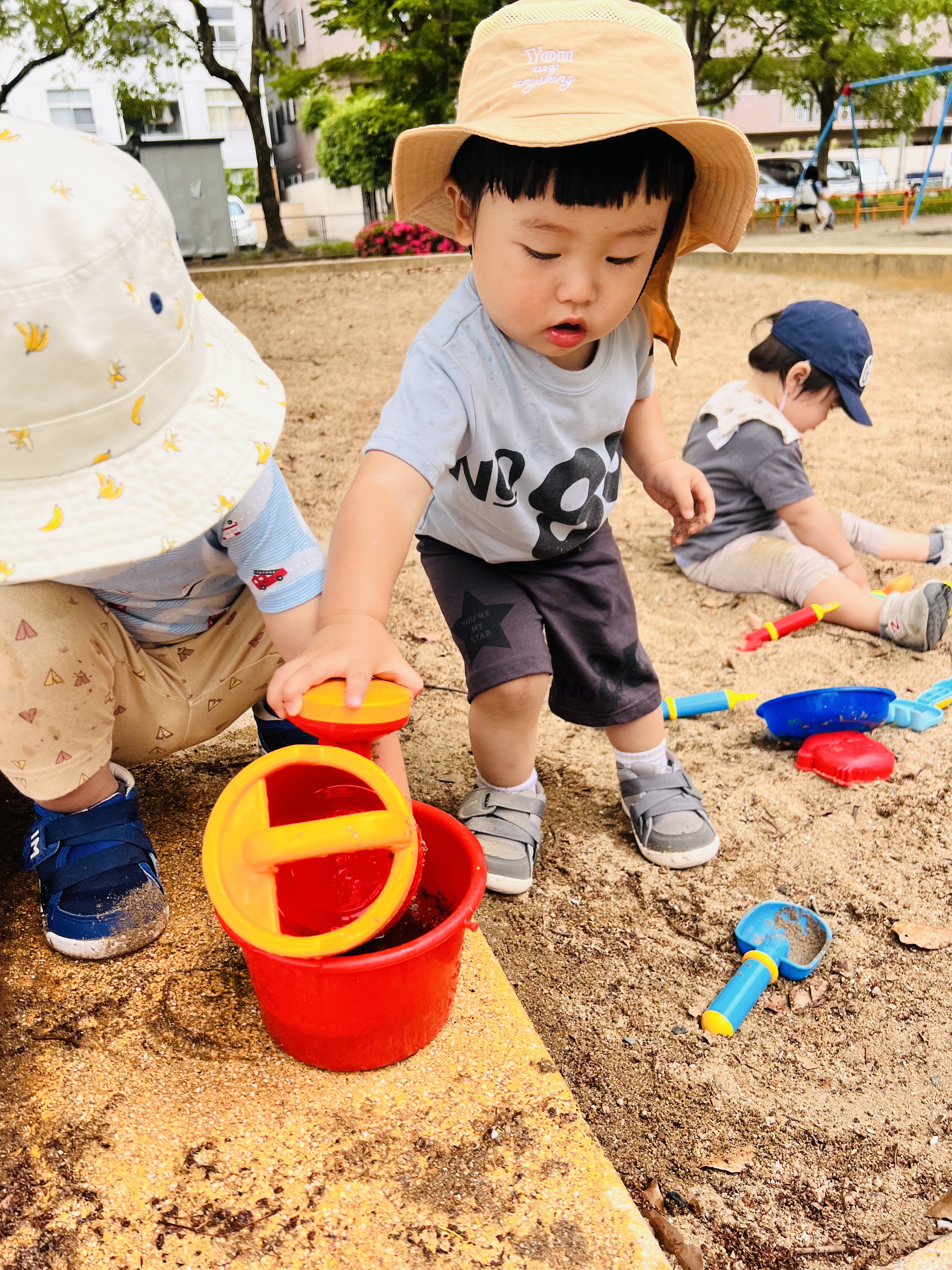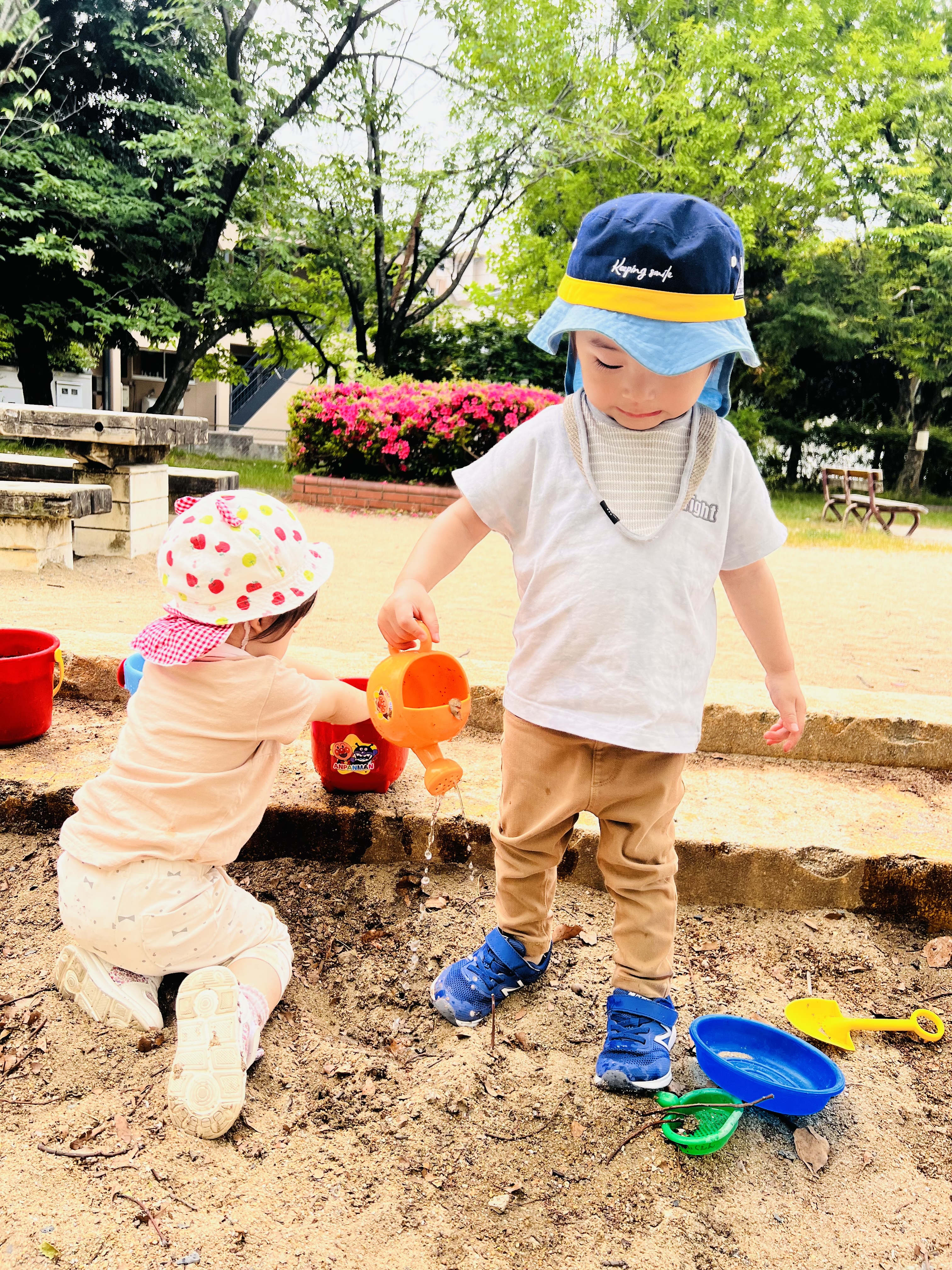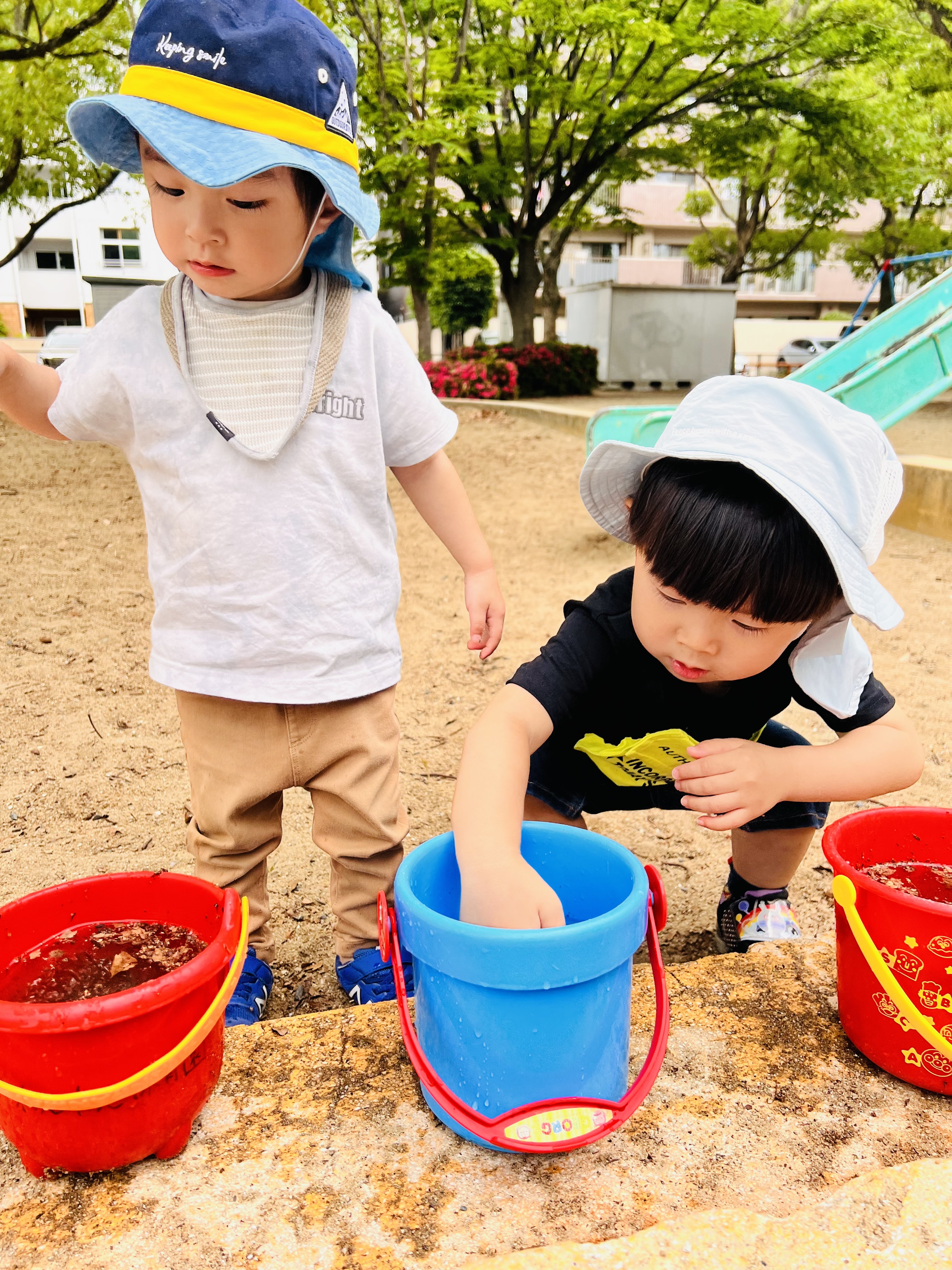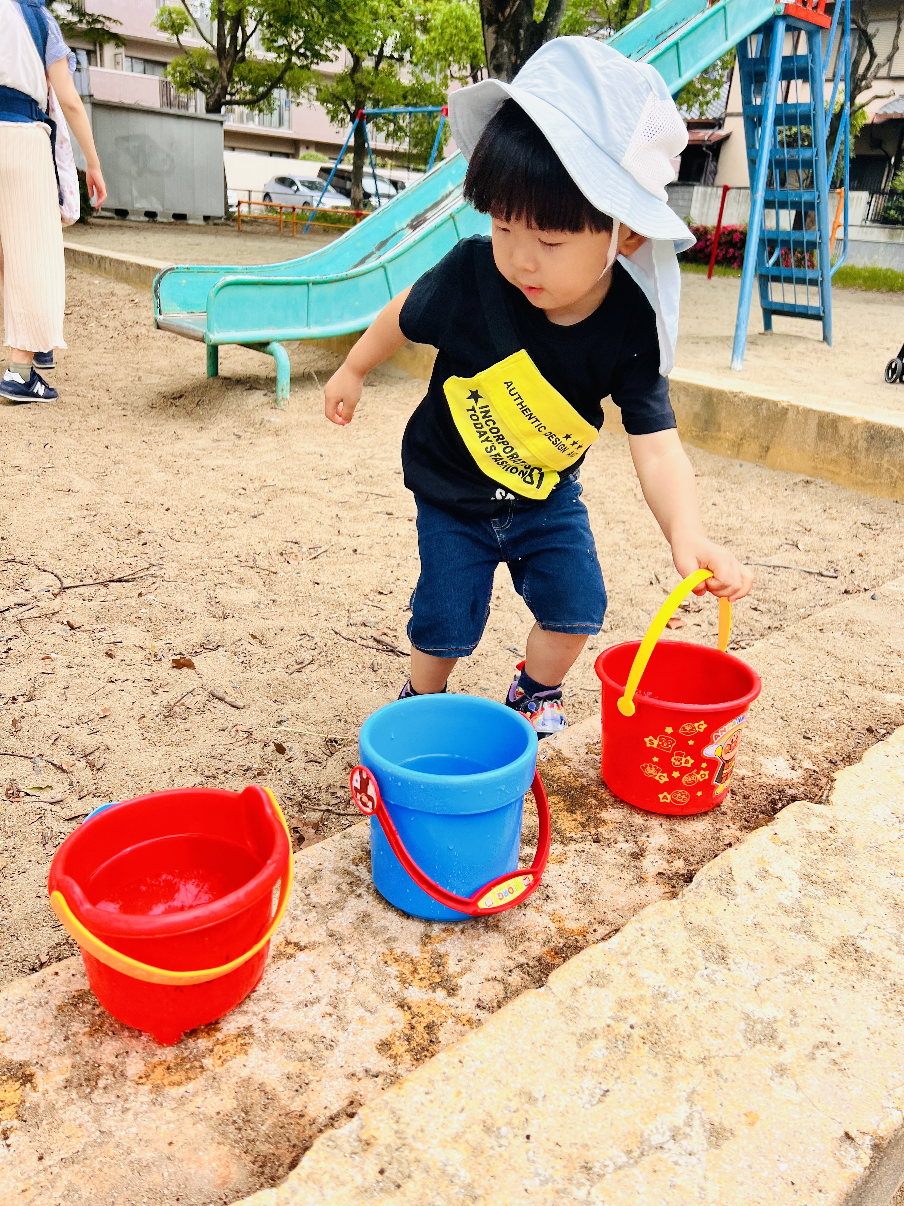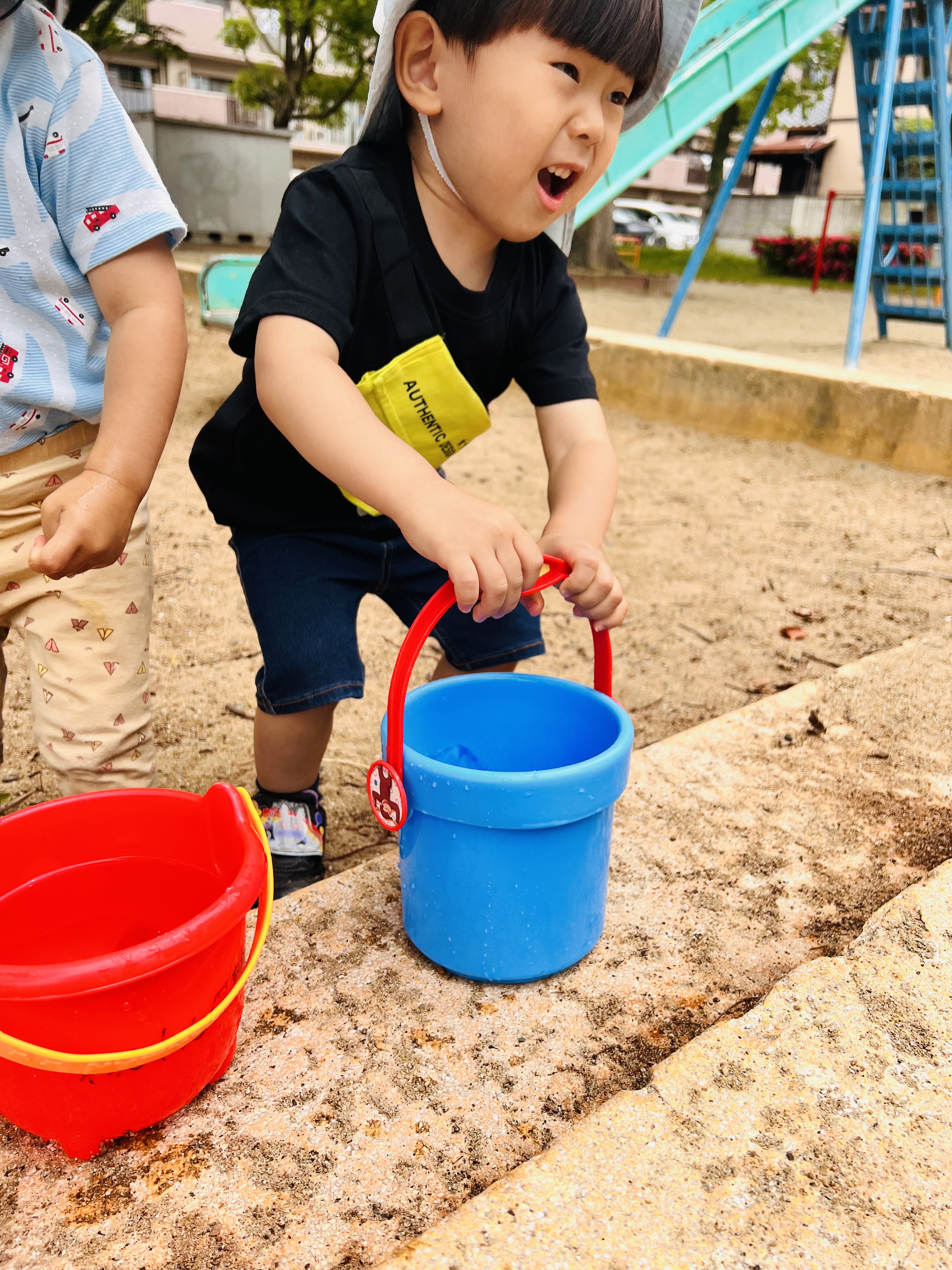 入らなくて残念かと思ったら、お水の代わりにお砂を入れたり、スコップでお水をすくったり、自分達で遊びを楽しむ天才ボーイがたくさんでした✨