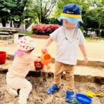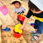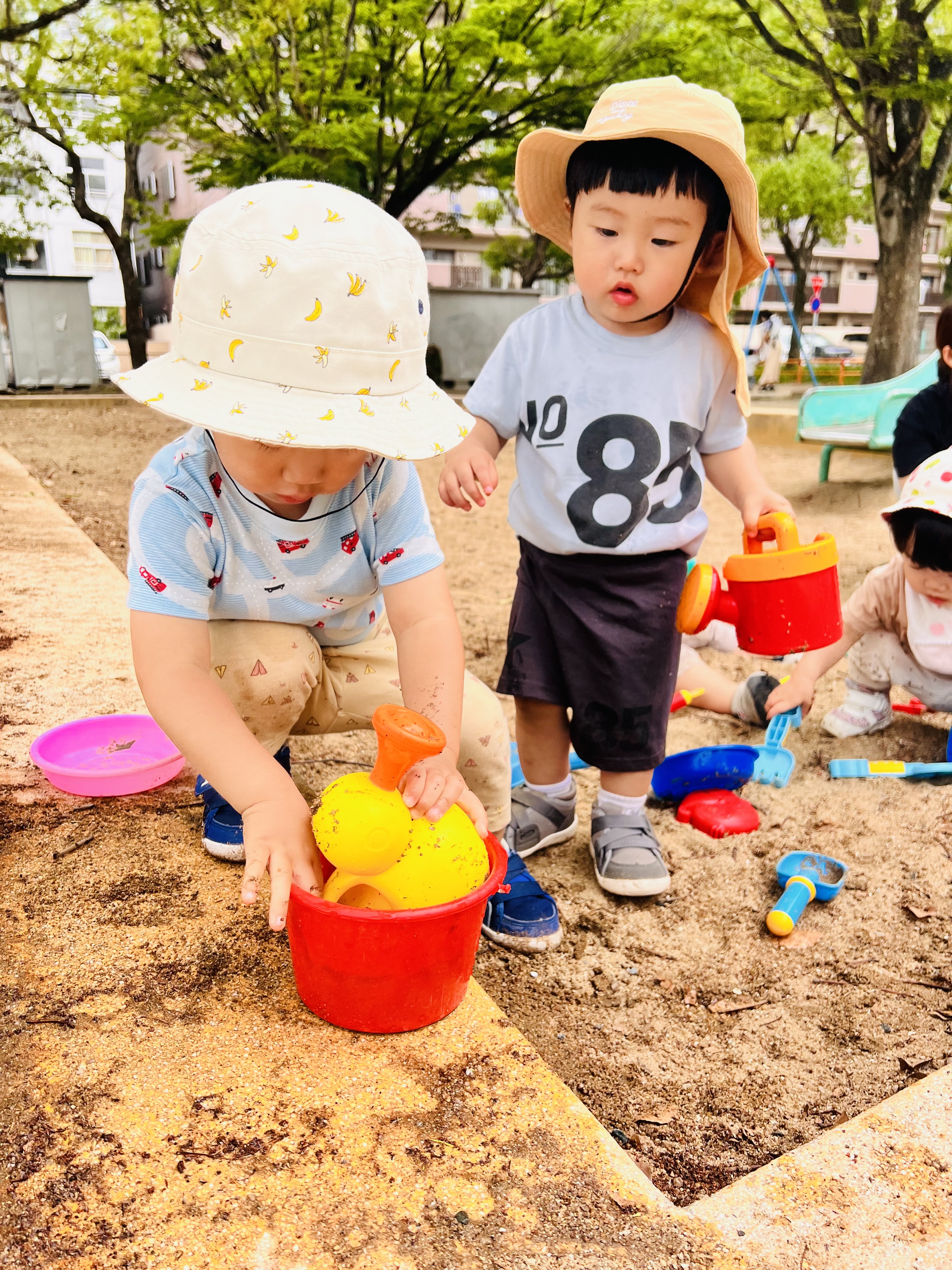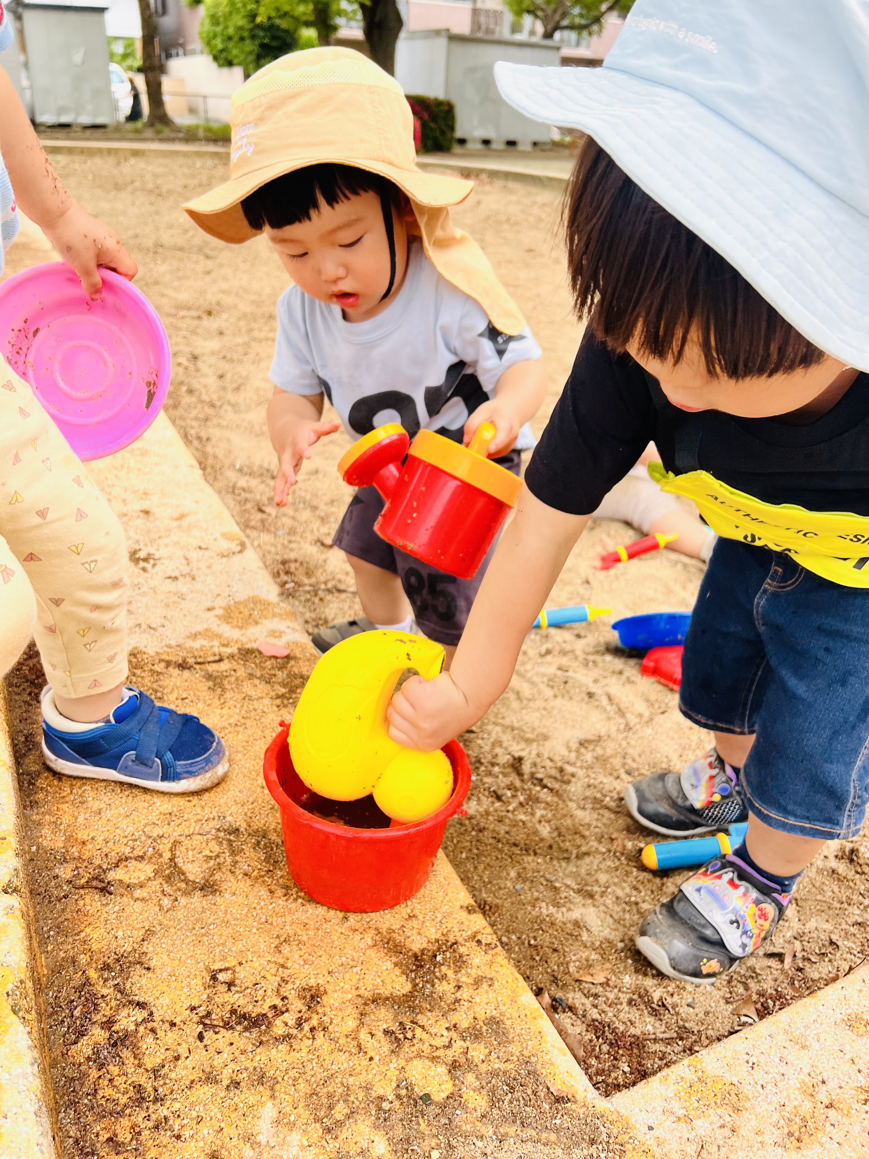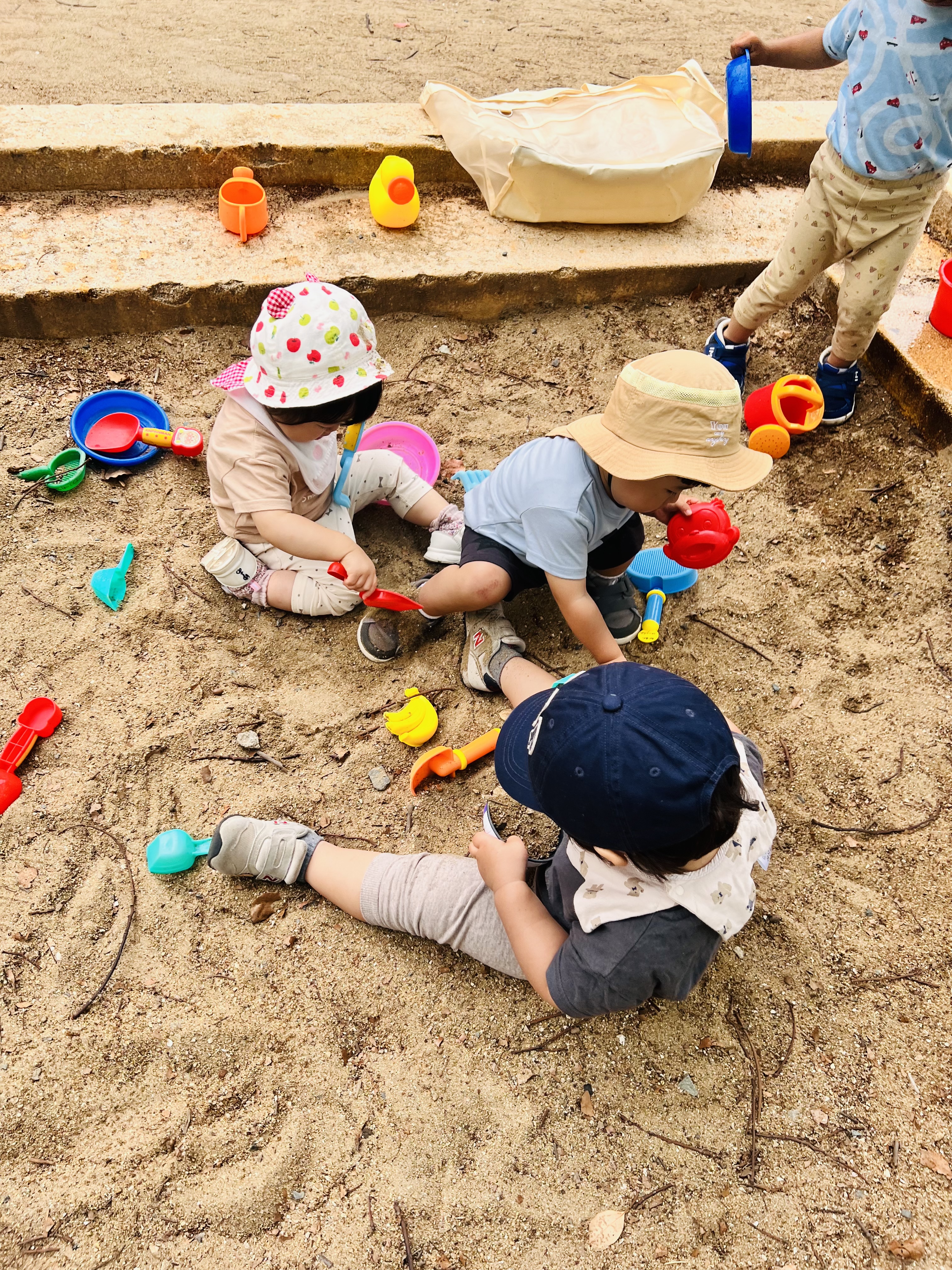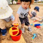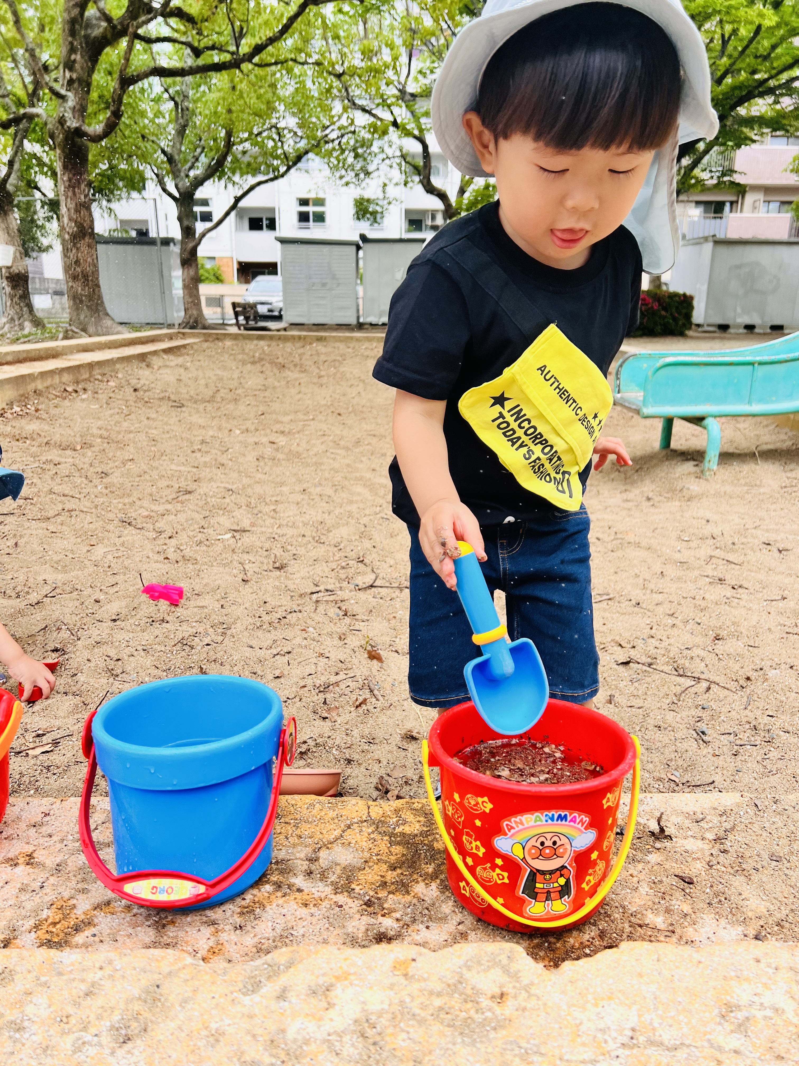 入らなくて残念かと思ったら、お水の代わりにお砂を入れたり、スコップでお水をすくったり、自分達で遊びを楽しむ天才ボーイがたくさんでした✨