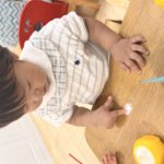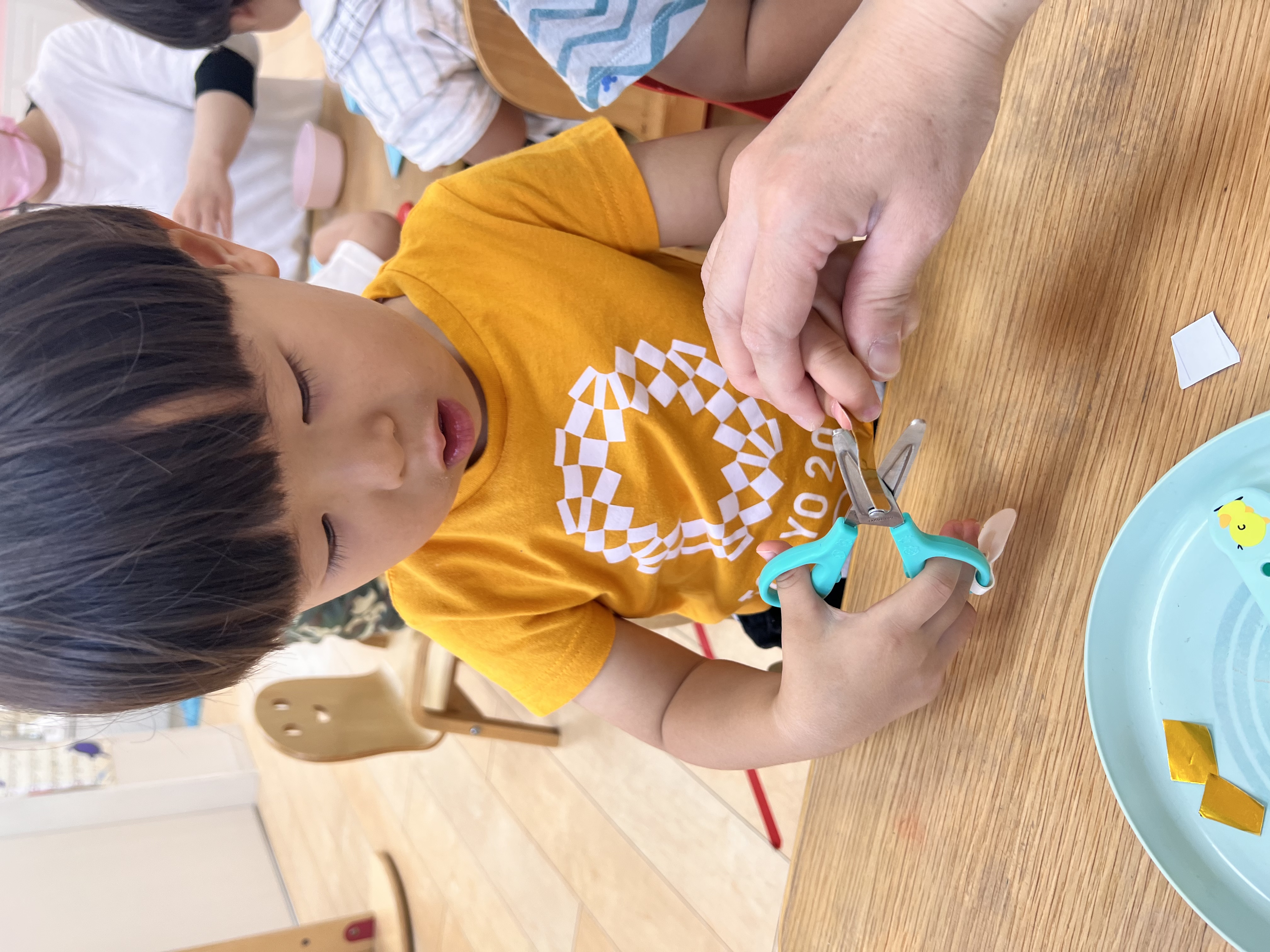 2歳児のお友達はハサミで1回切りに挑戦✨