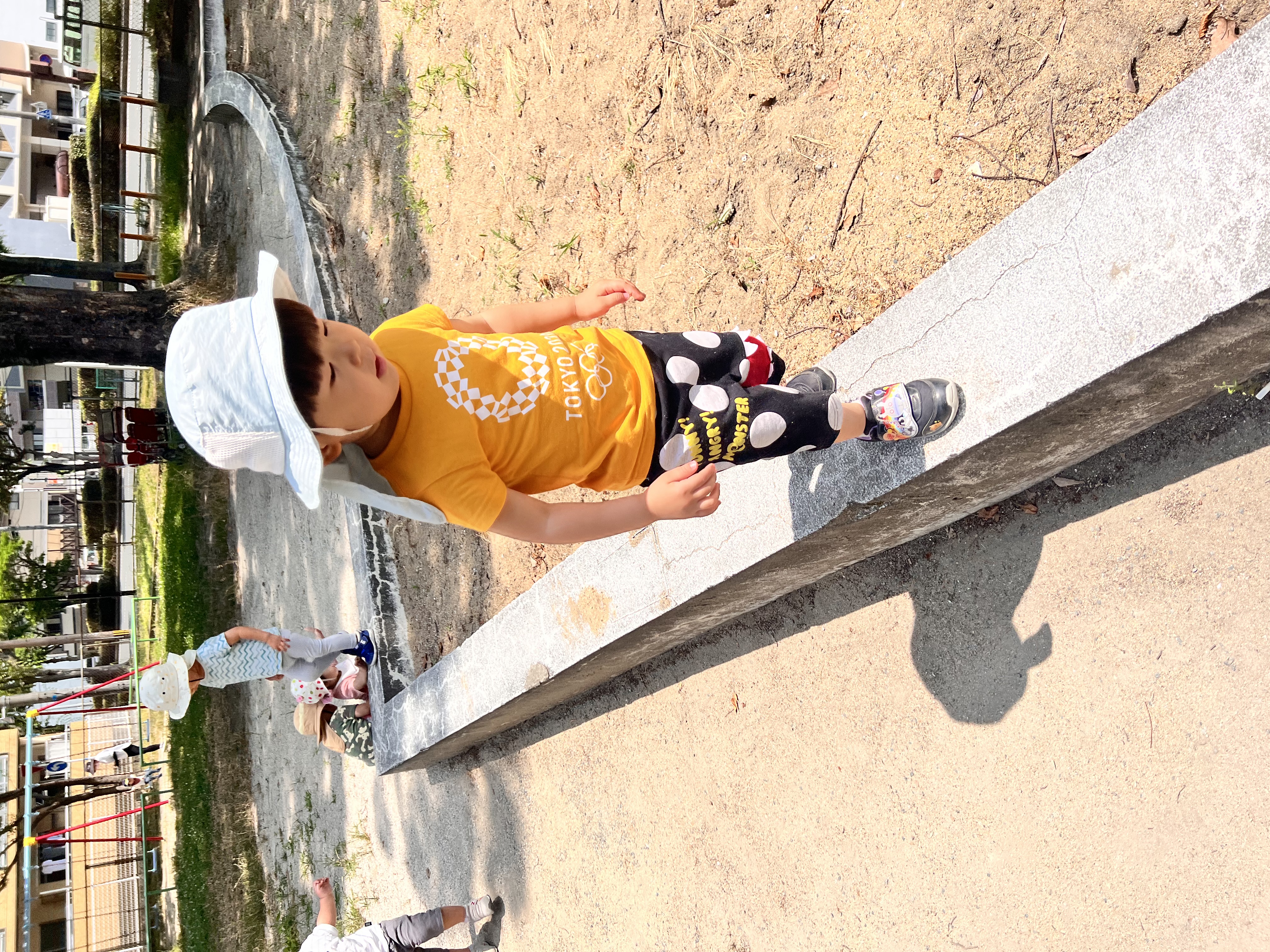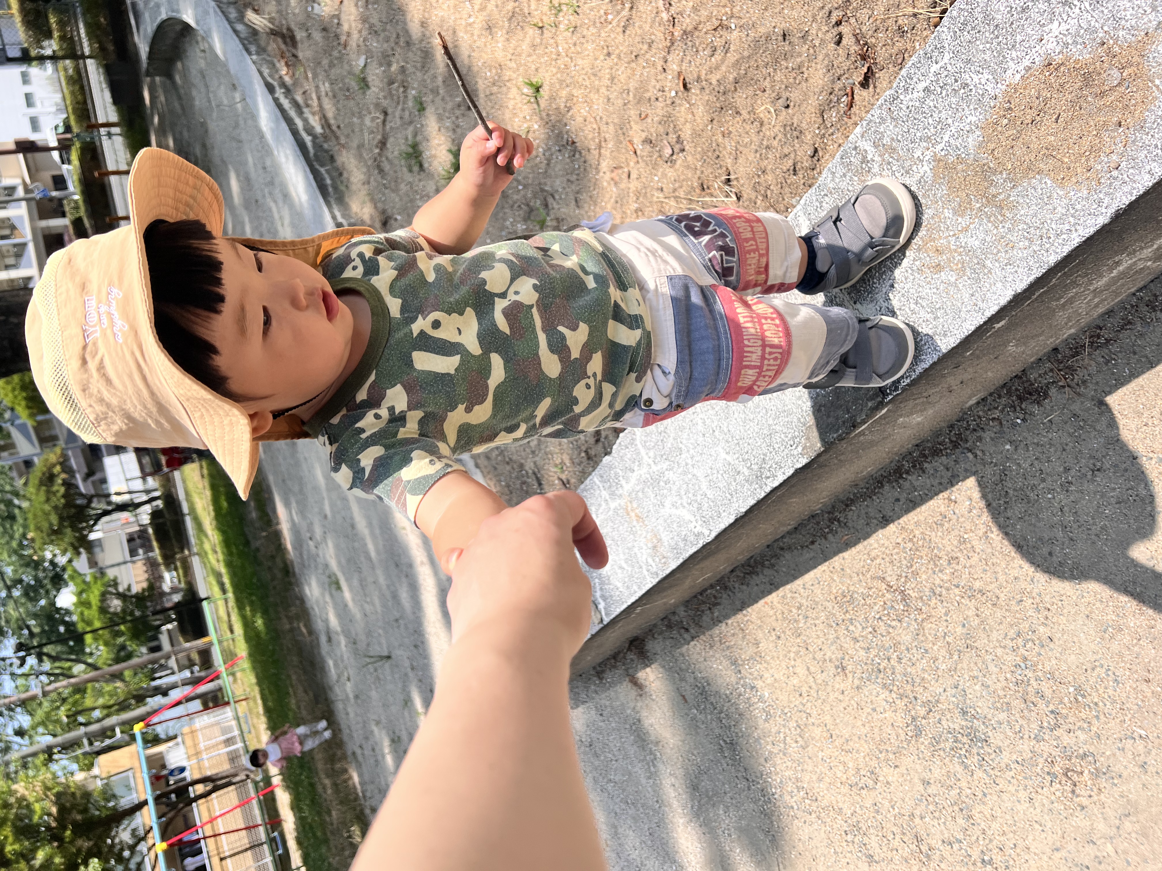 1周目は先生の手をこれでもかというくらいの力を込めてしっかり掴まえて歩き…2周目は1人で用心しながら歩いてました✨