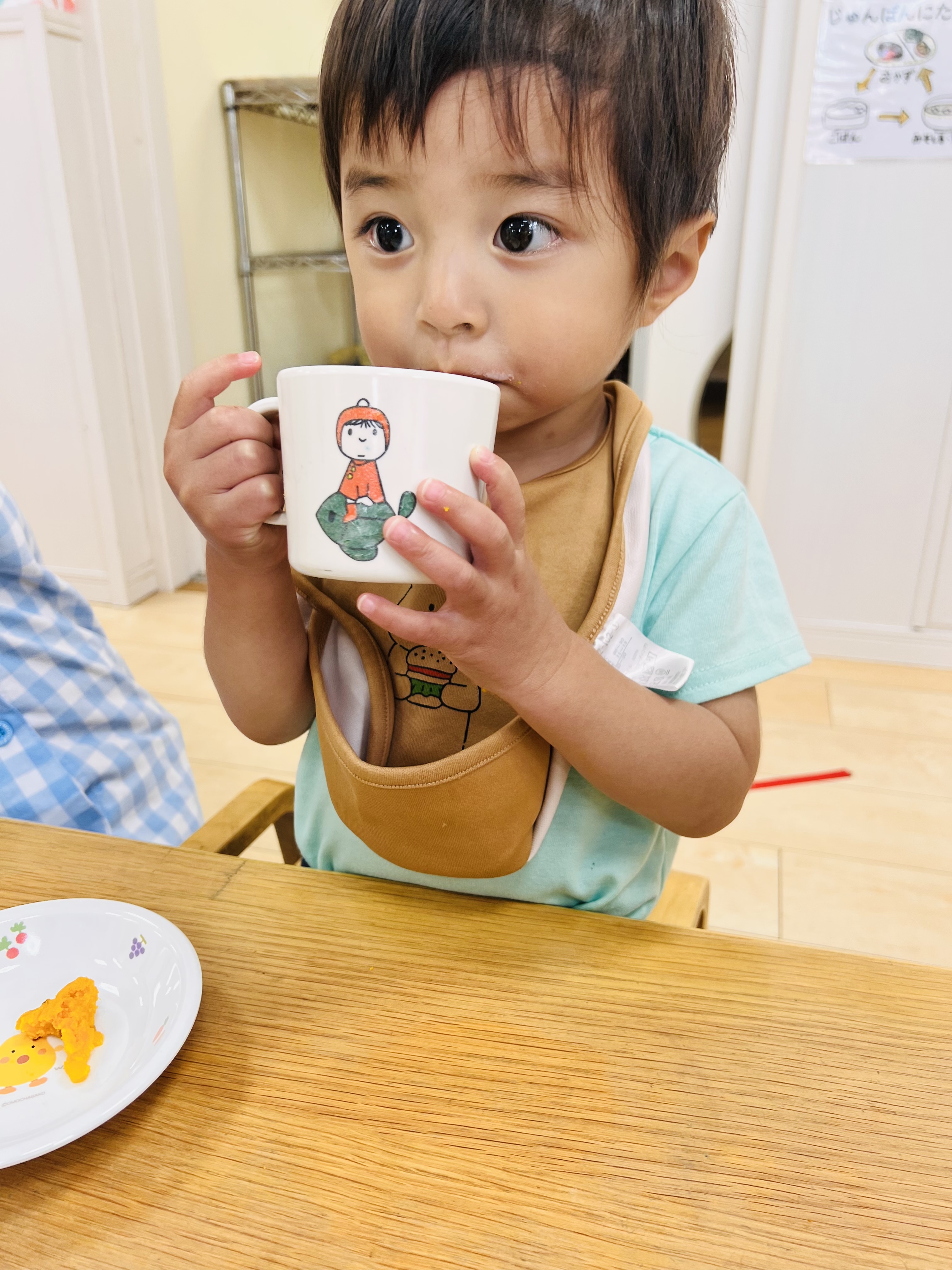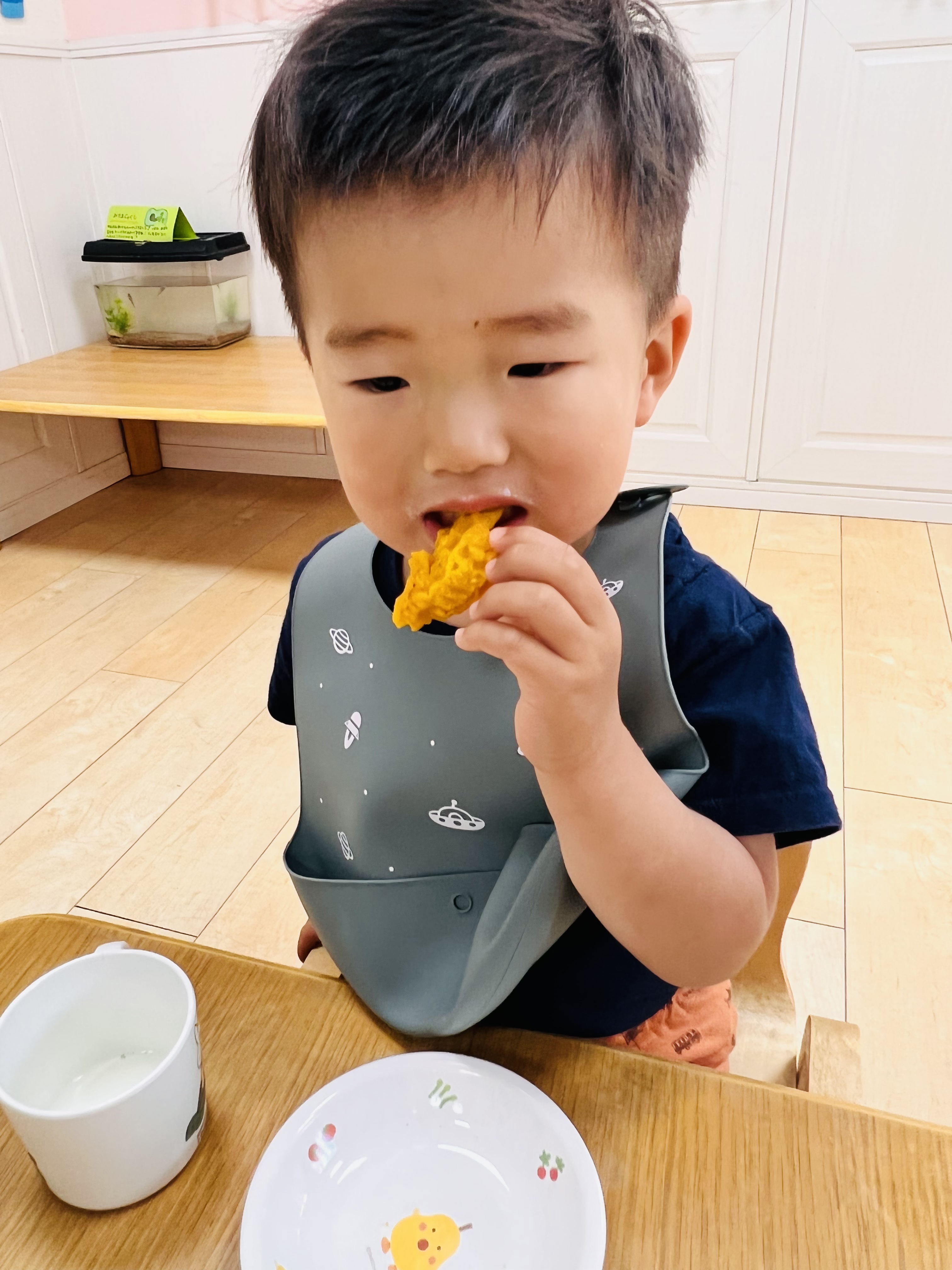 お昼寝の後の15時のおやつは寝癖や寝ぼけ眼が可愛いですね😊