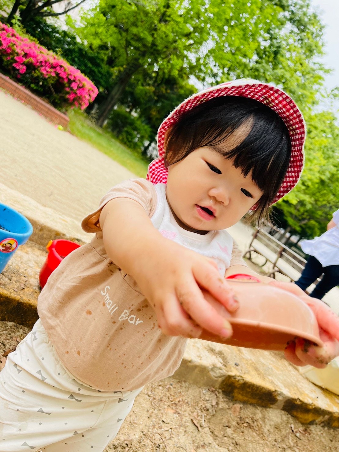 この形のお砂をつくりたい❗️柔らかいお砂では崩れてしまうので、悔しそうでした😅