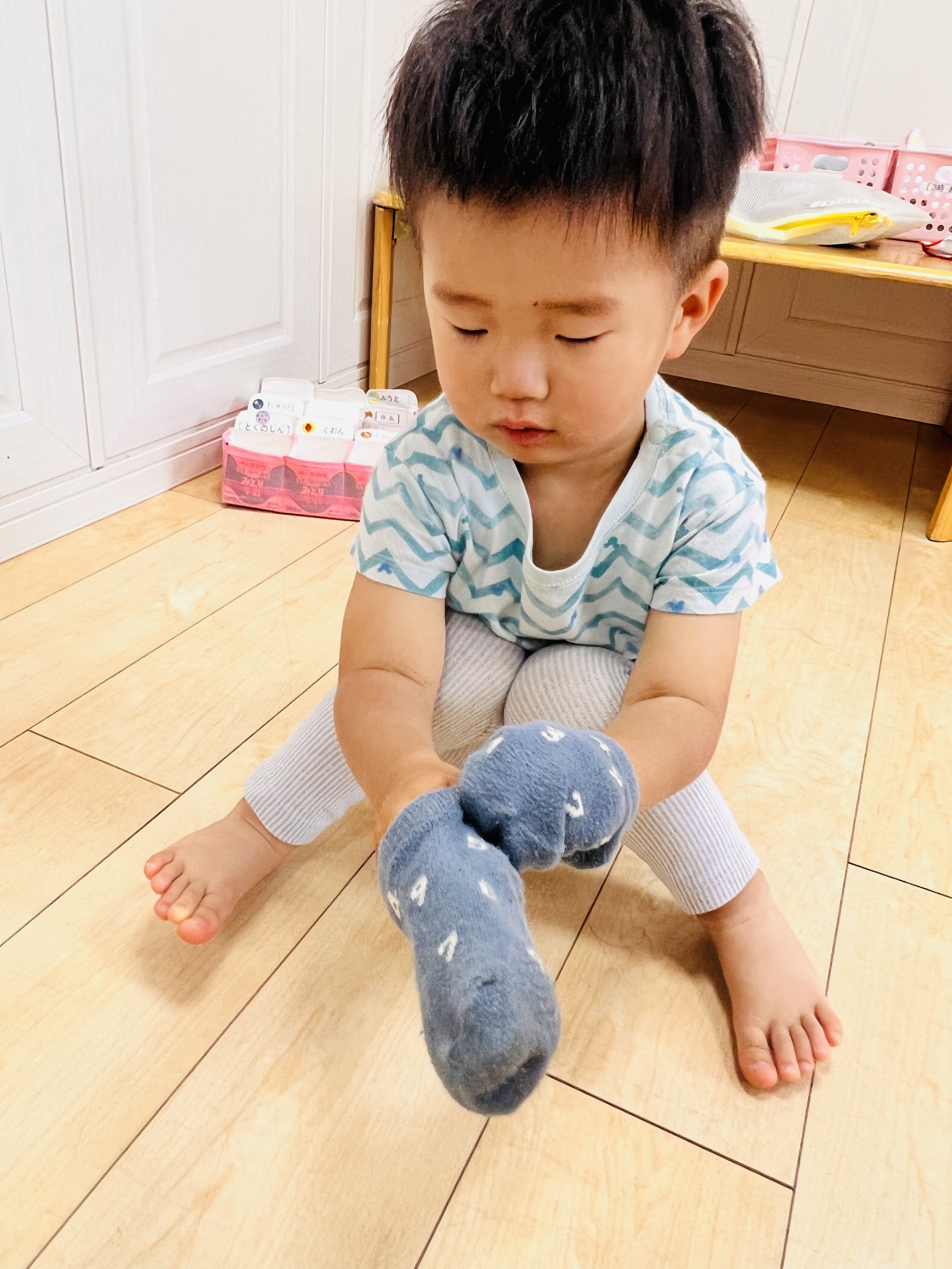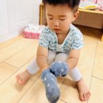 自分の靴下を脱ぐとなんとなく手にはめたくなったお友達。