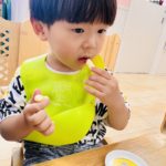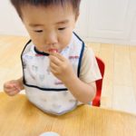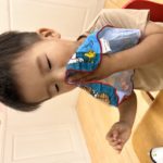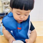 タオルをたたむ練習中😊半分こ♫半分こ♫一生懸命な姿が愛しいです❤️