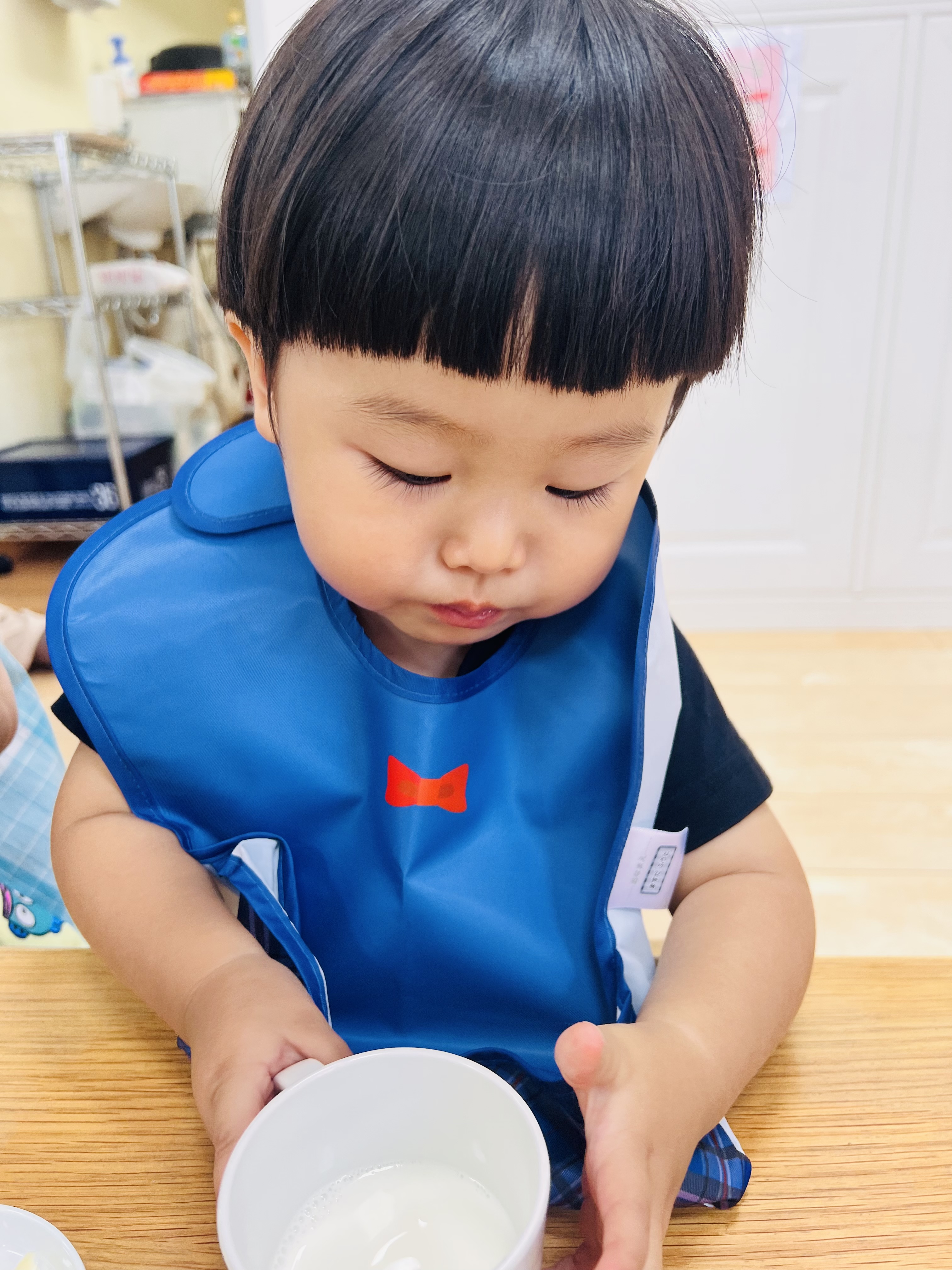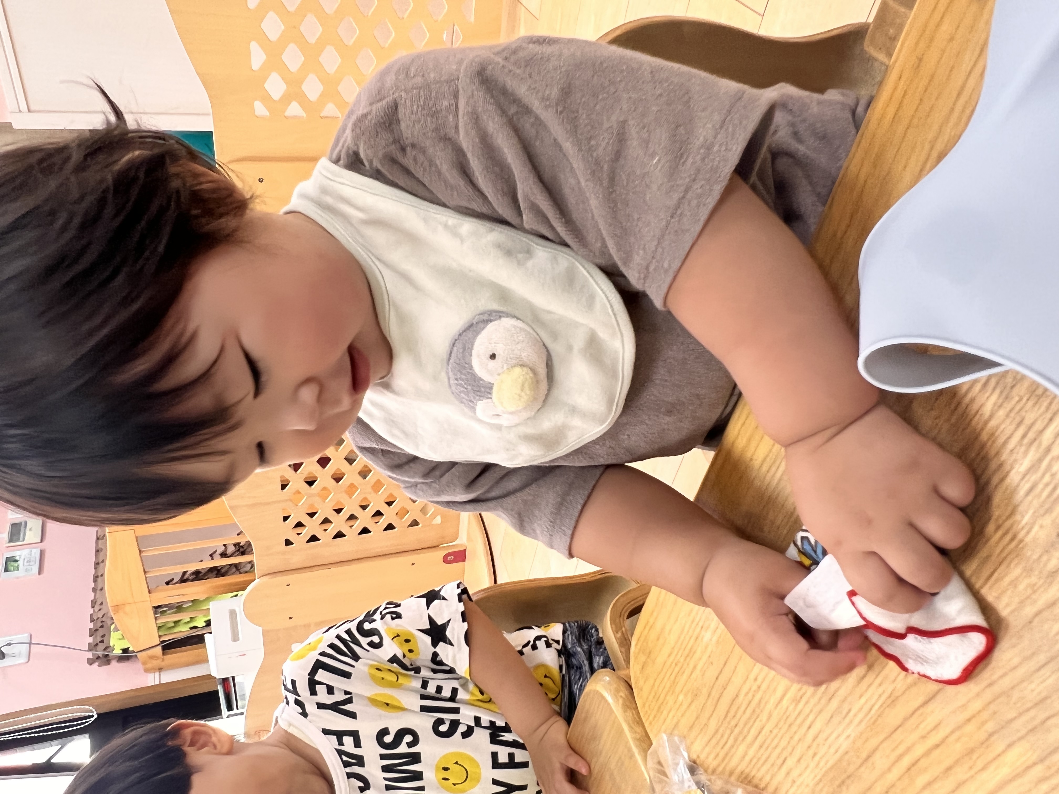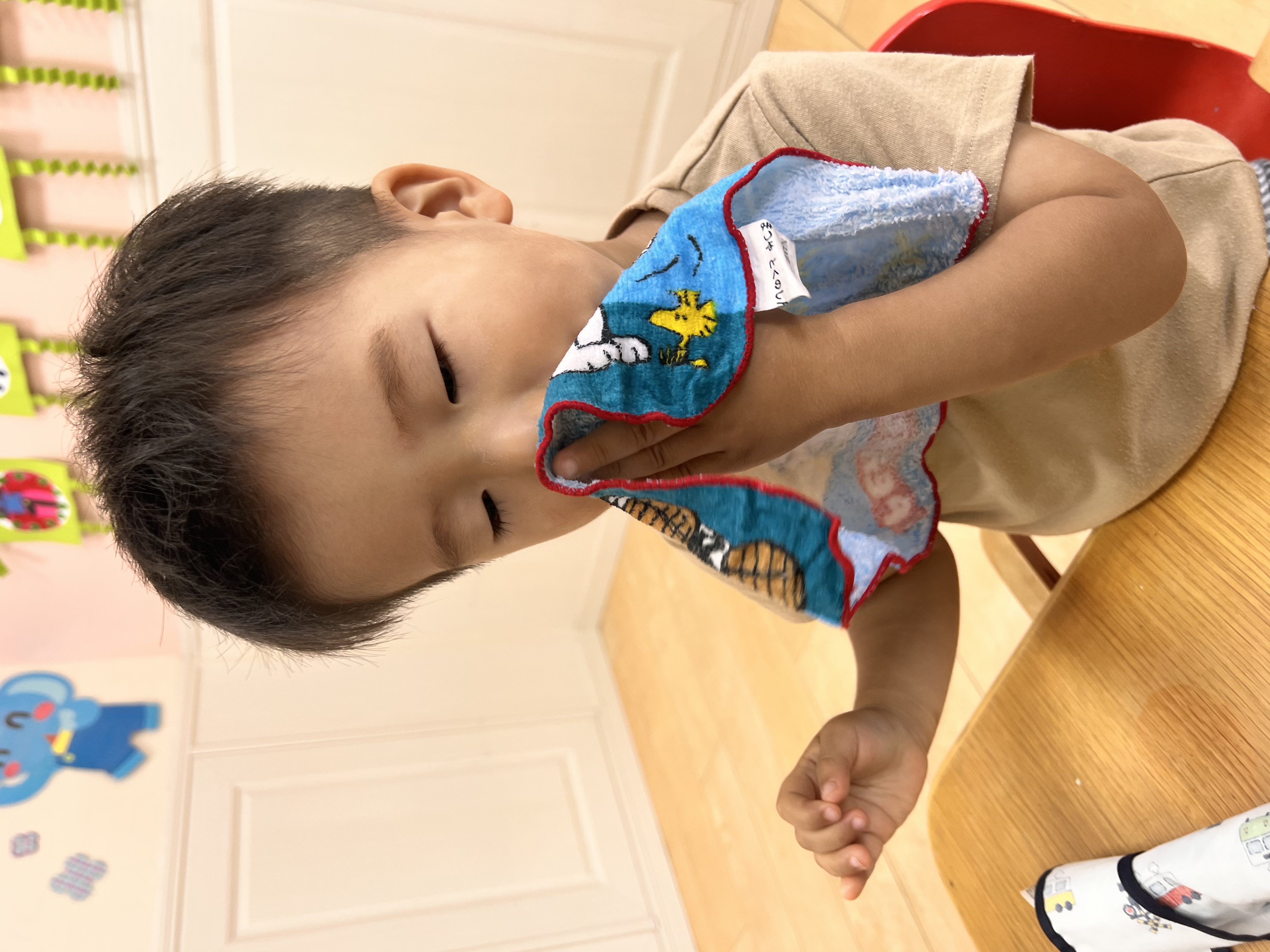 タオルをたたむ練習中😊半分こ♫半分こ♫一生懸命な姿が愛しいです❤️