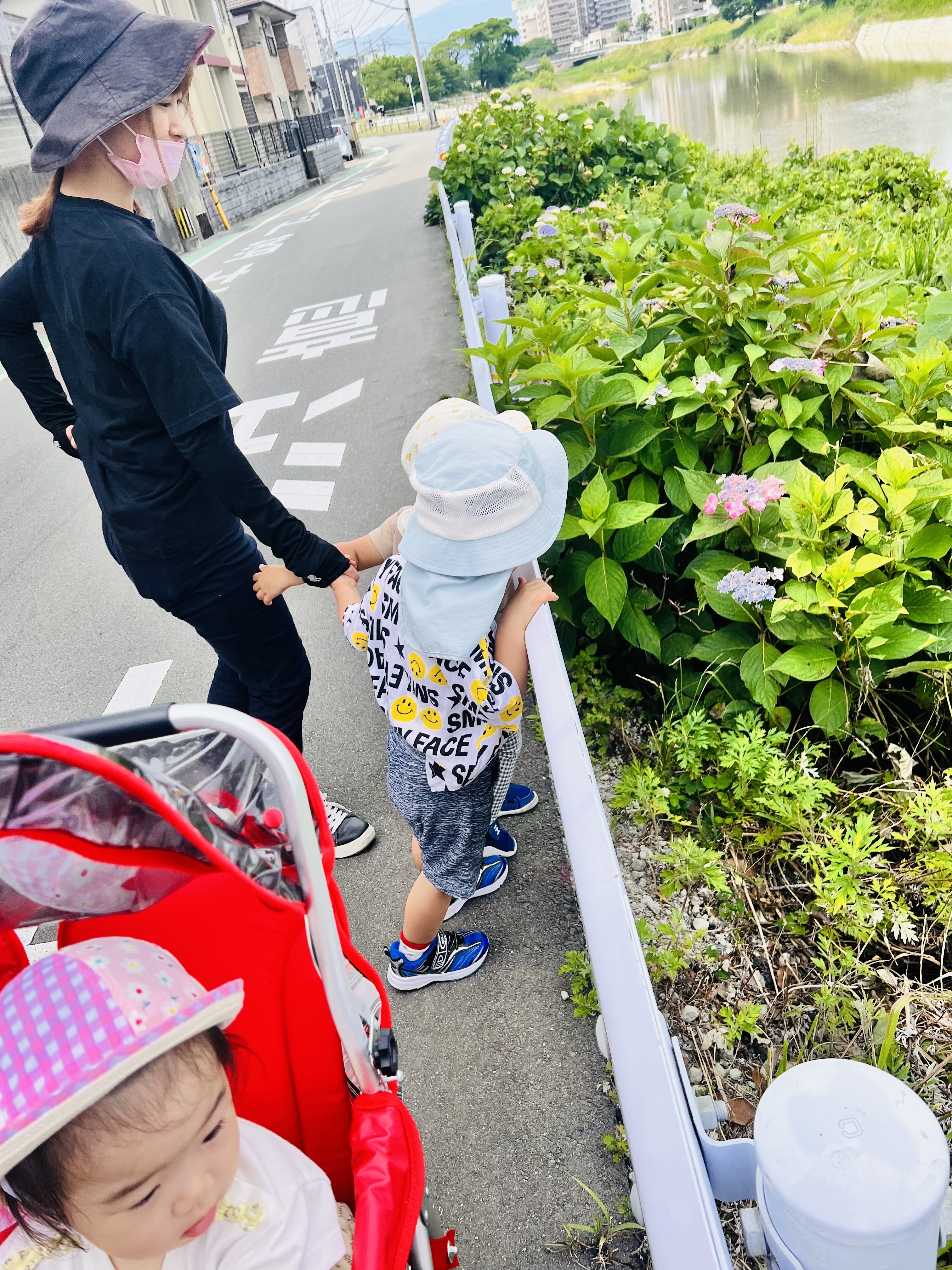 少し遠くに紫陽花がたくさん咲いてる遊歩道を見つけたので、みんなでお散歩しました😊