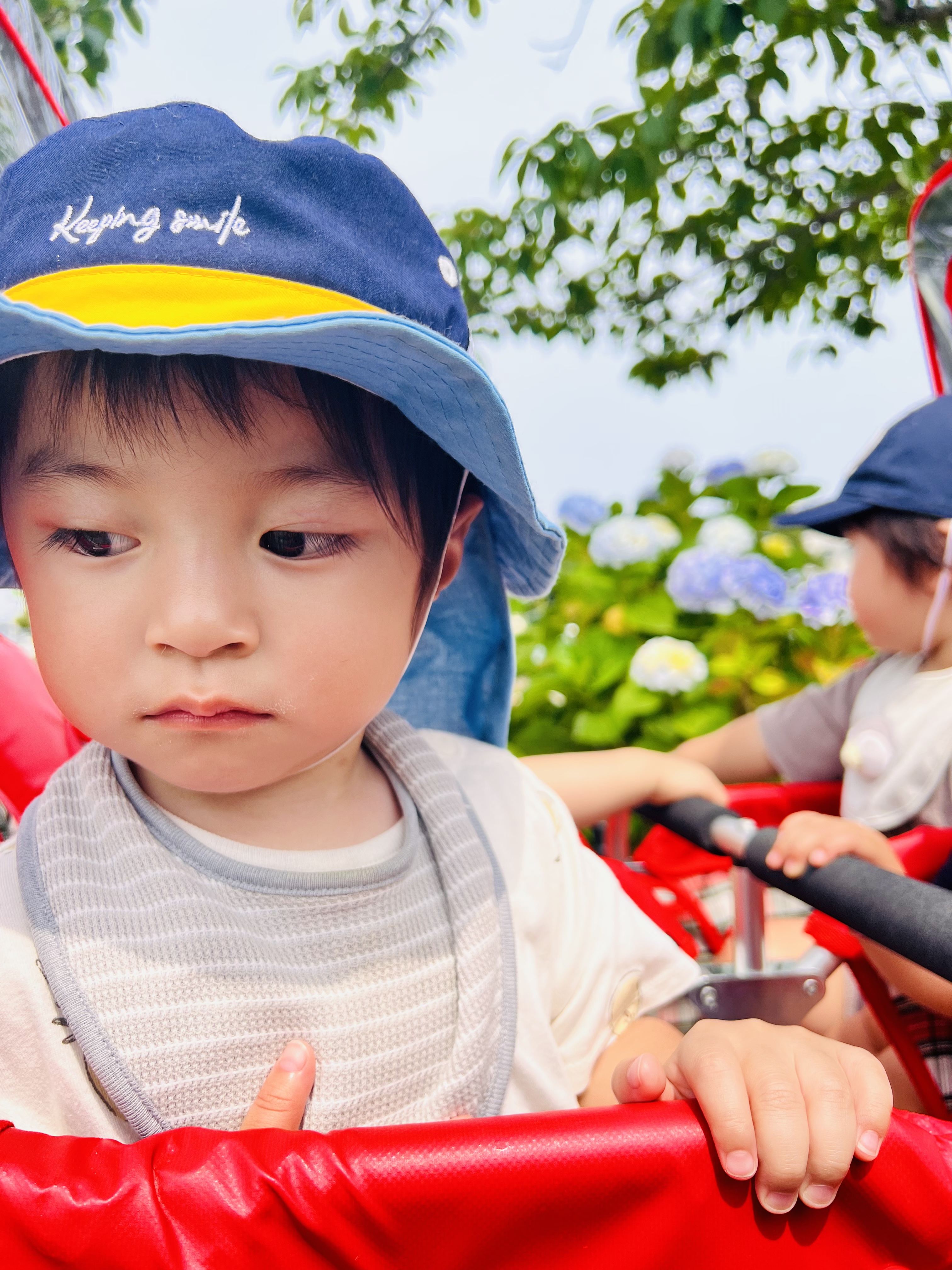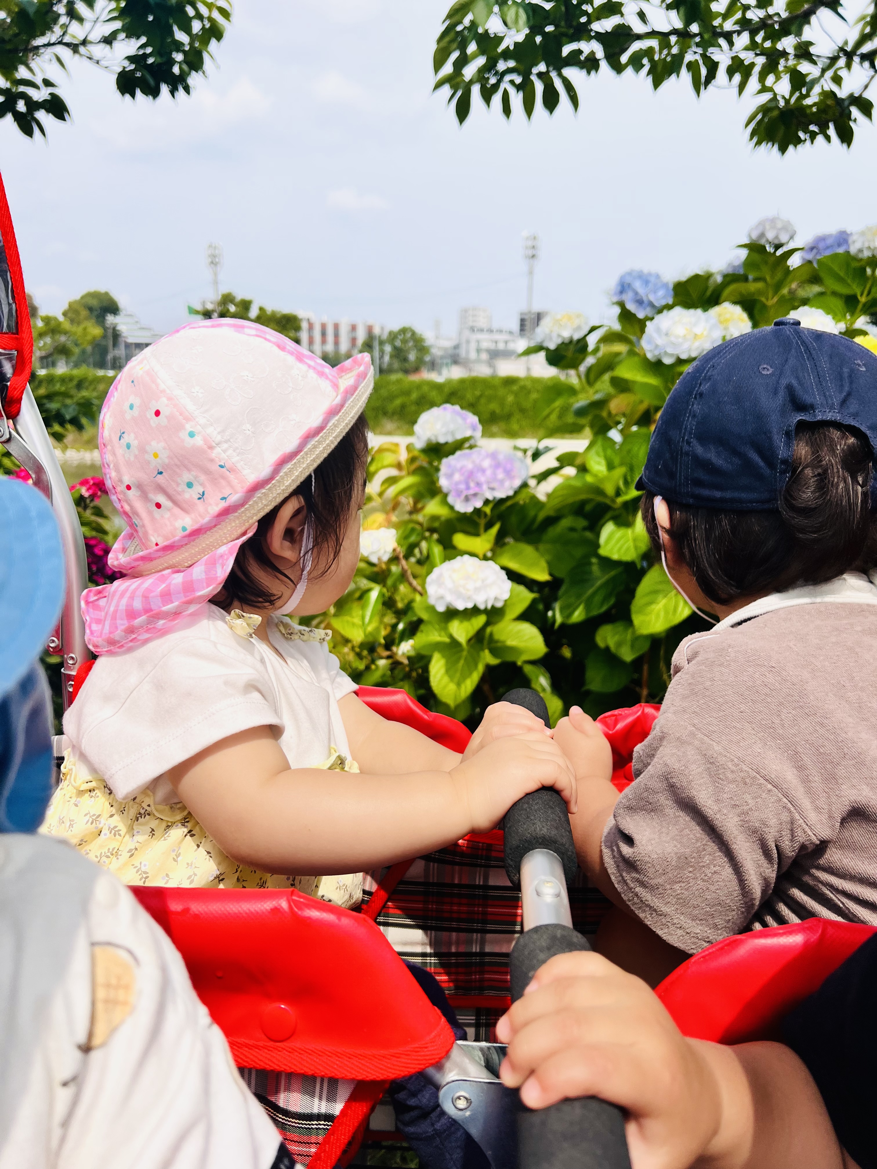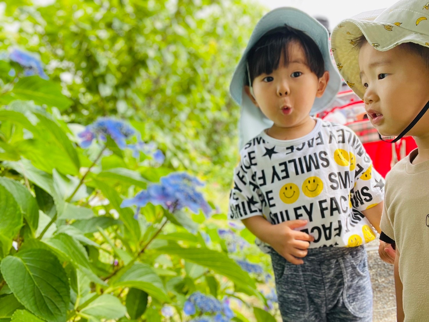 アジサイよりも電車の音に敏感に反応するお友達もいました😁
