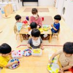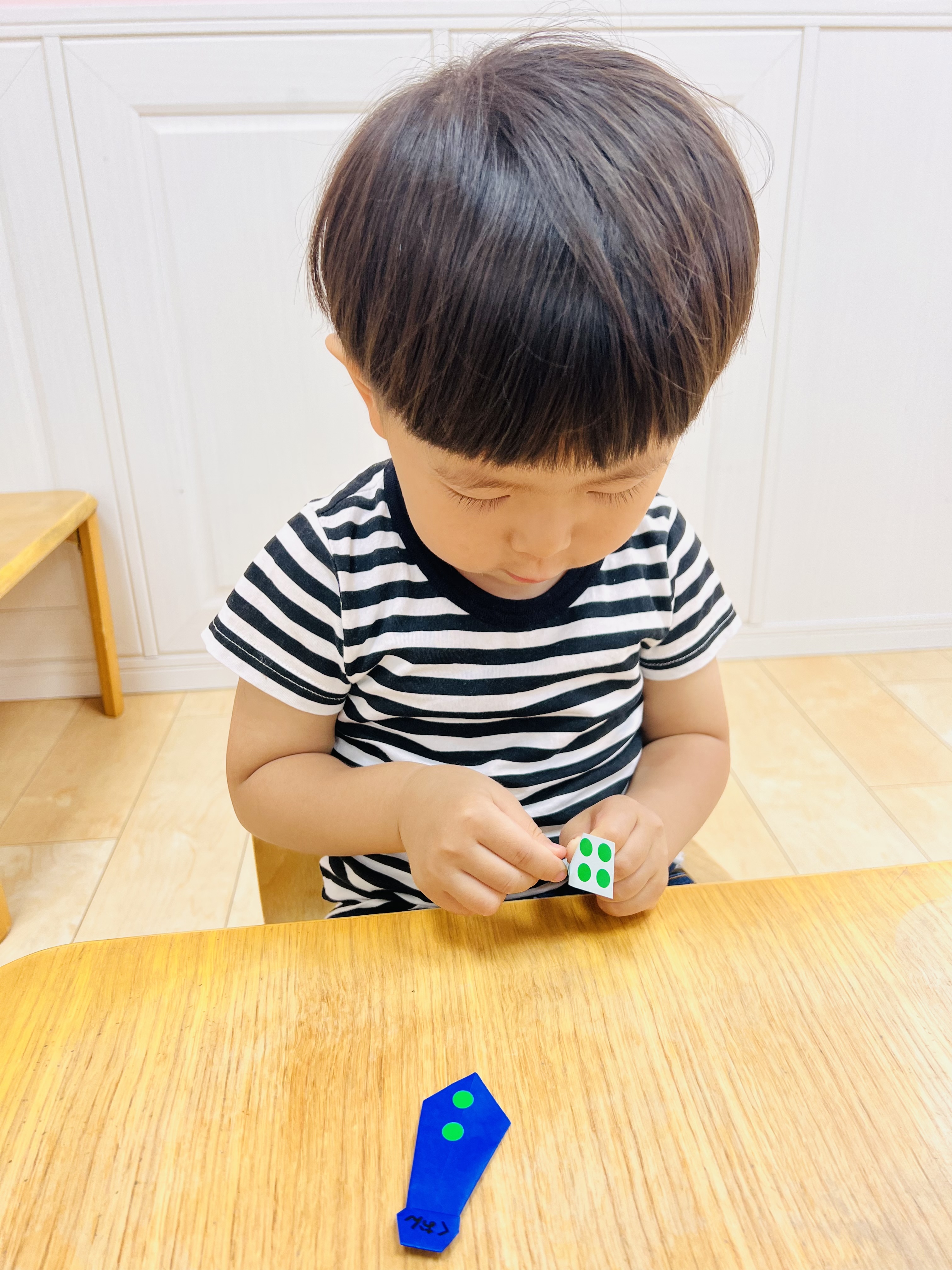 2歳児さんは少し小さな丸シールを上手に貼り、色も自分達で選んでます😊