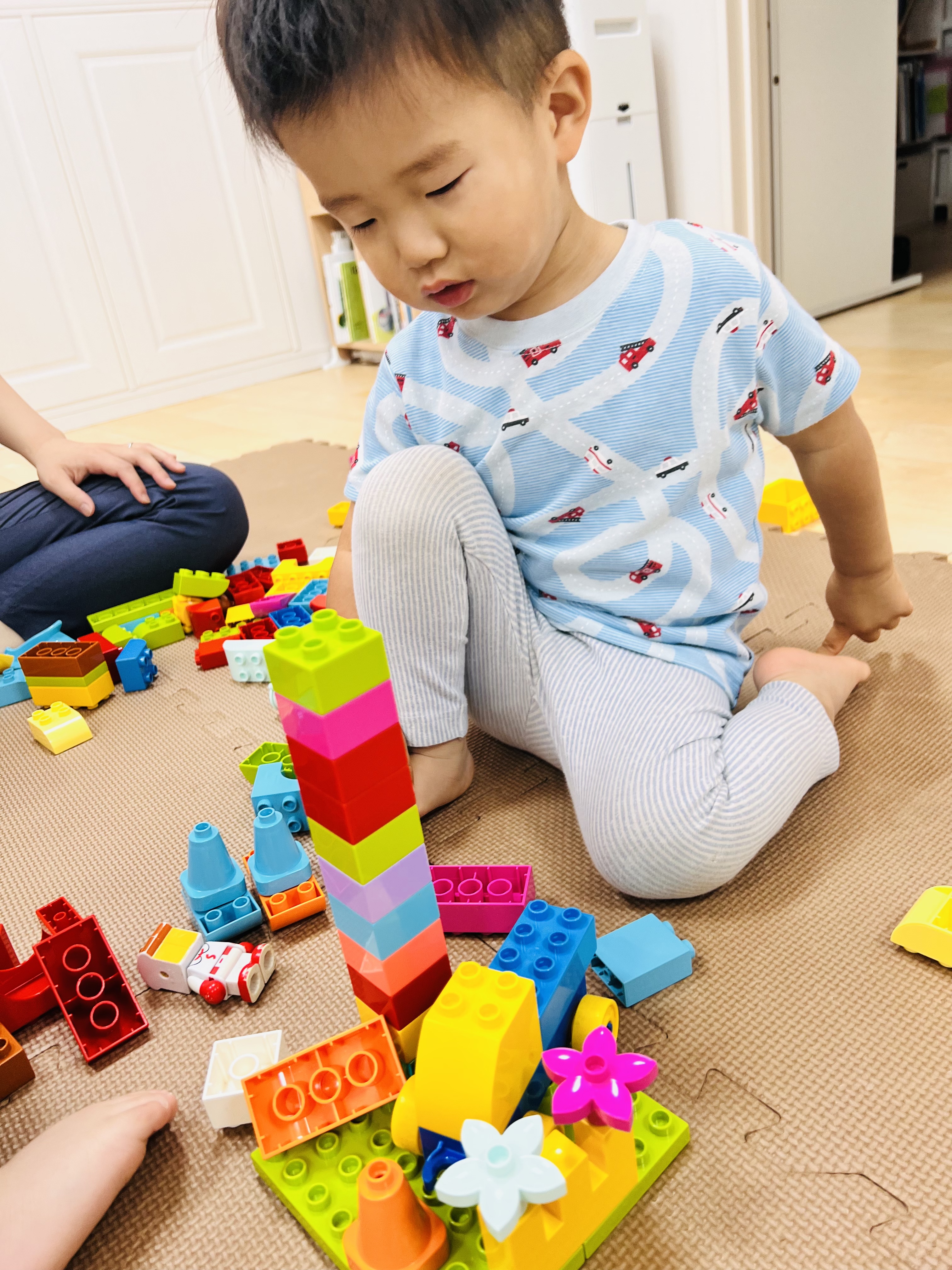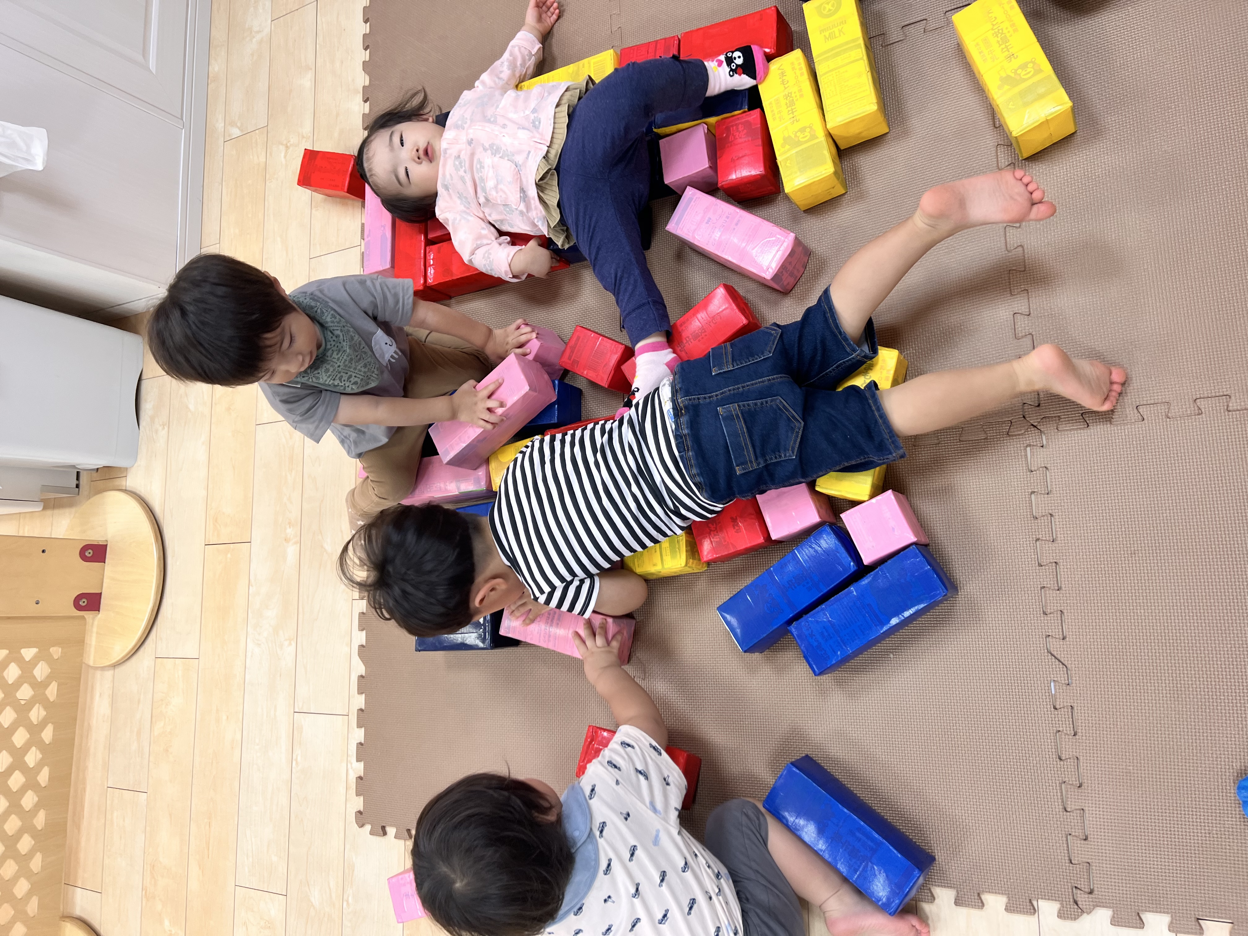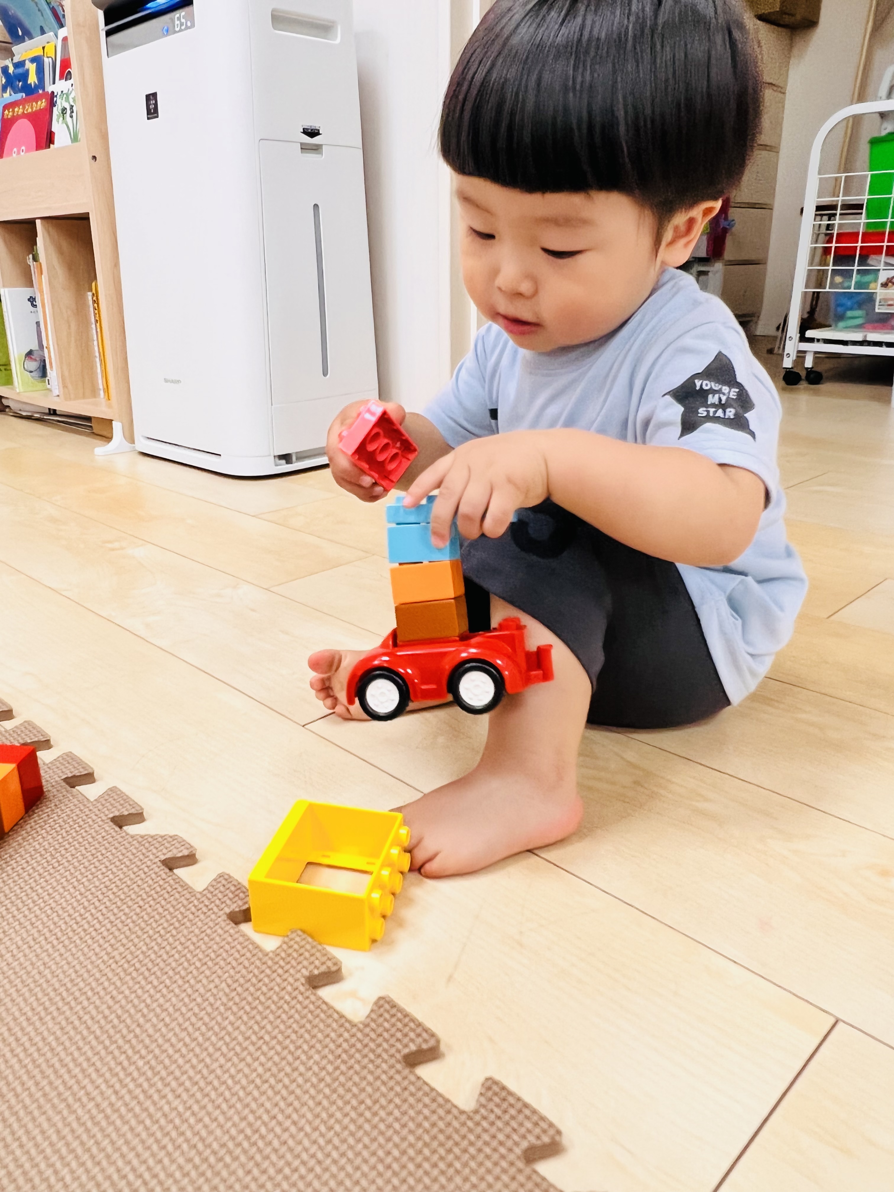 朝はブロックでお家をつくったり、車を走らせて遊びました♫