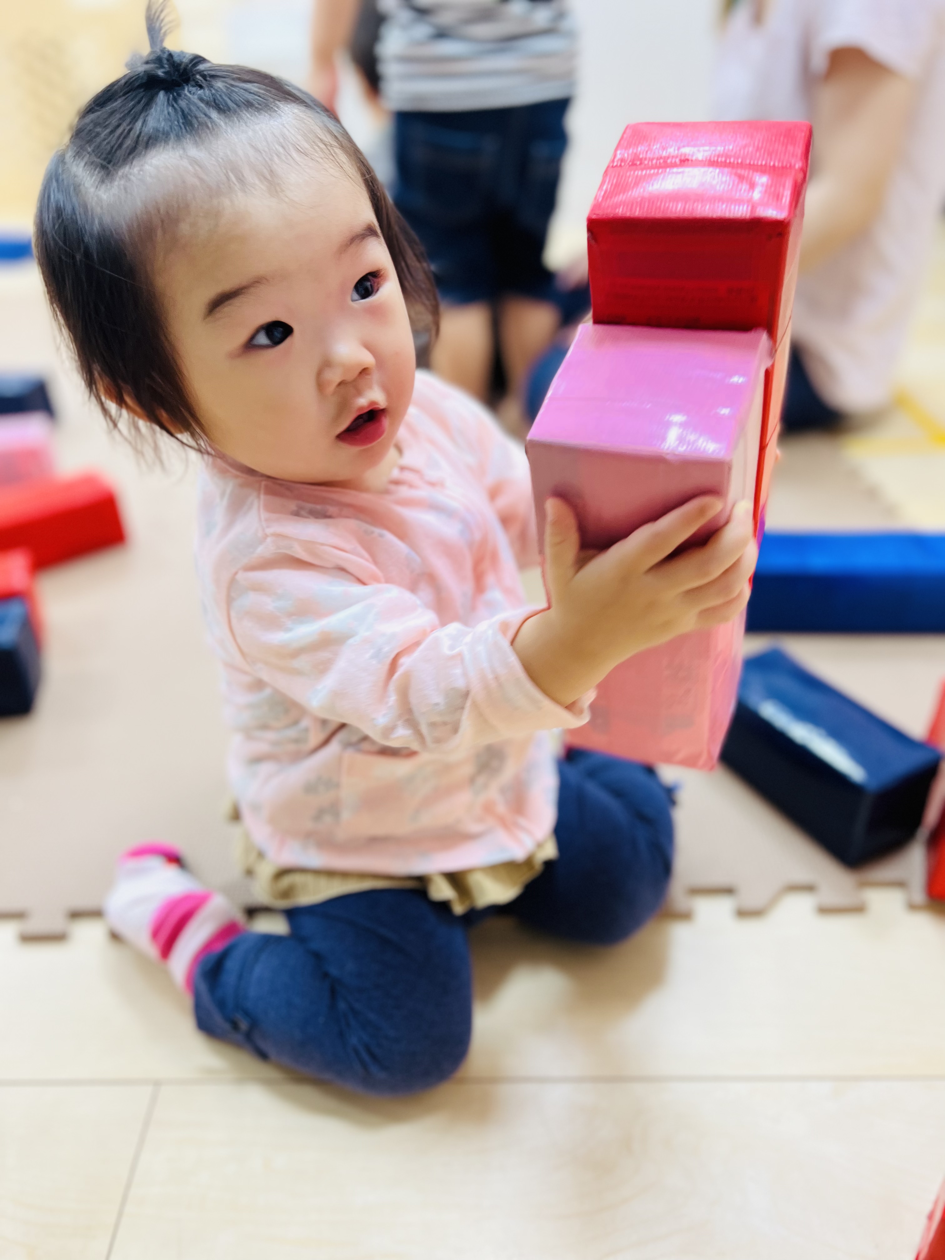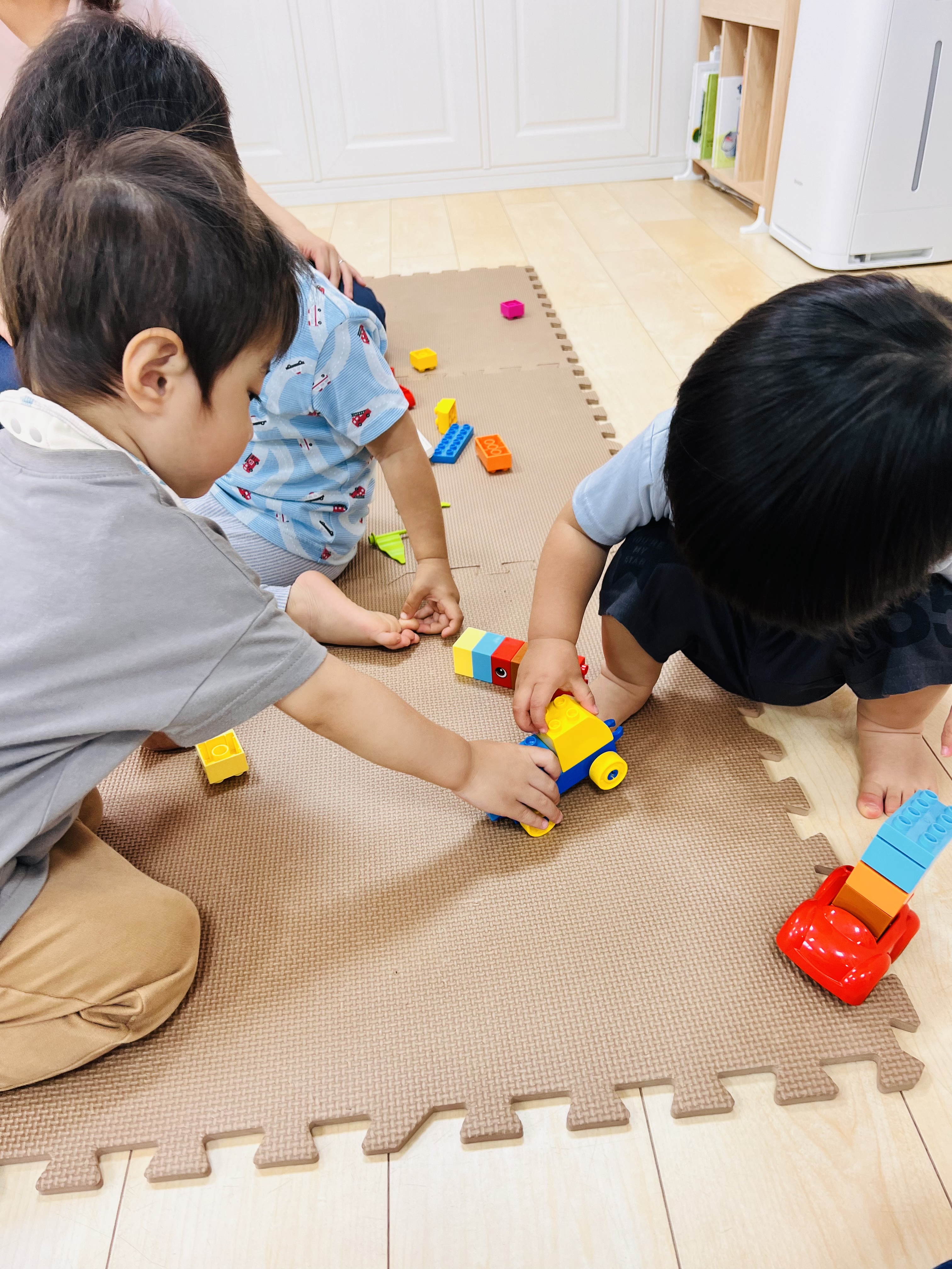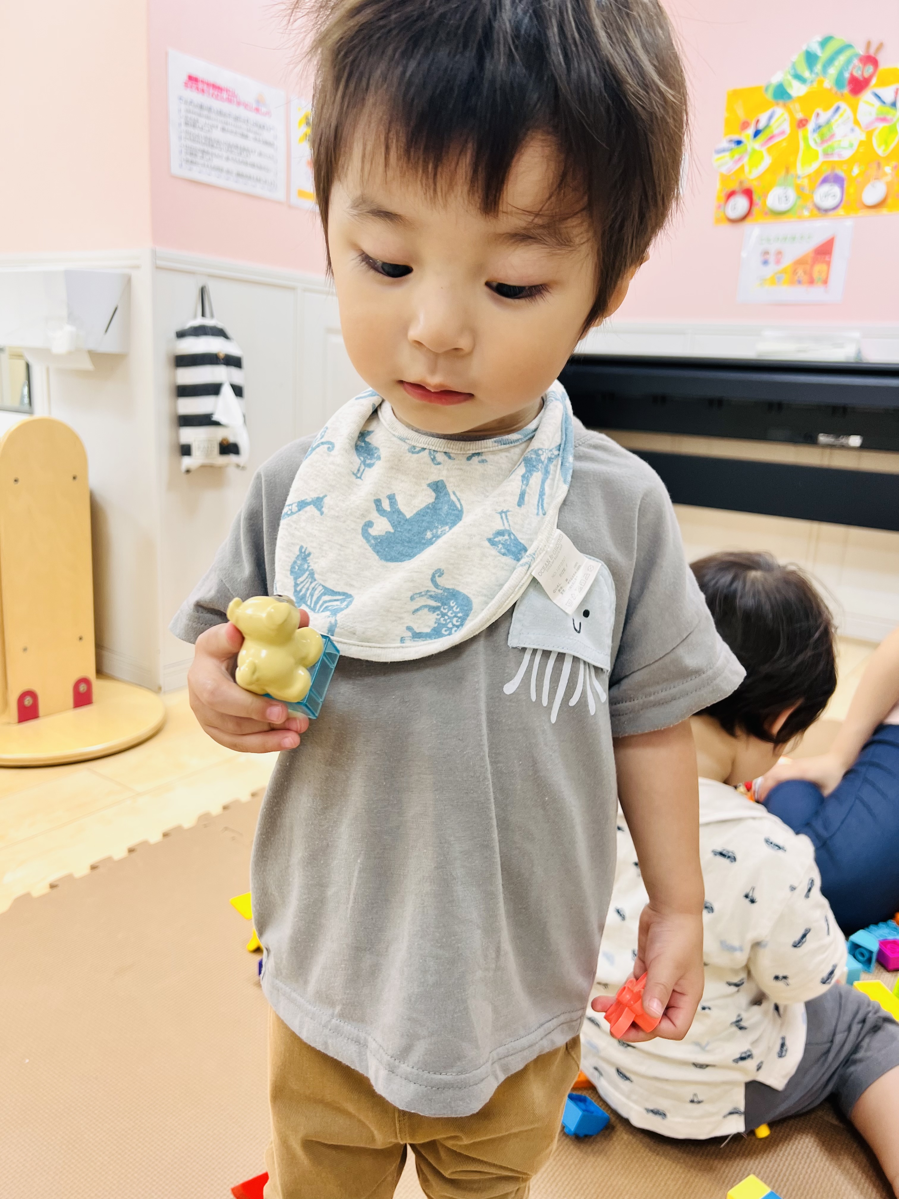 雨の日は室内でたくさんの玩具が使えて、あっちもこっちも遊びたい!と忙しそうですよ😊