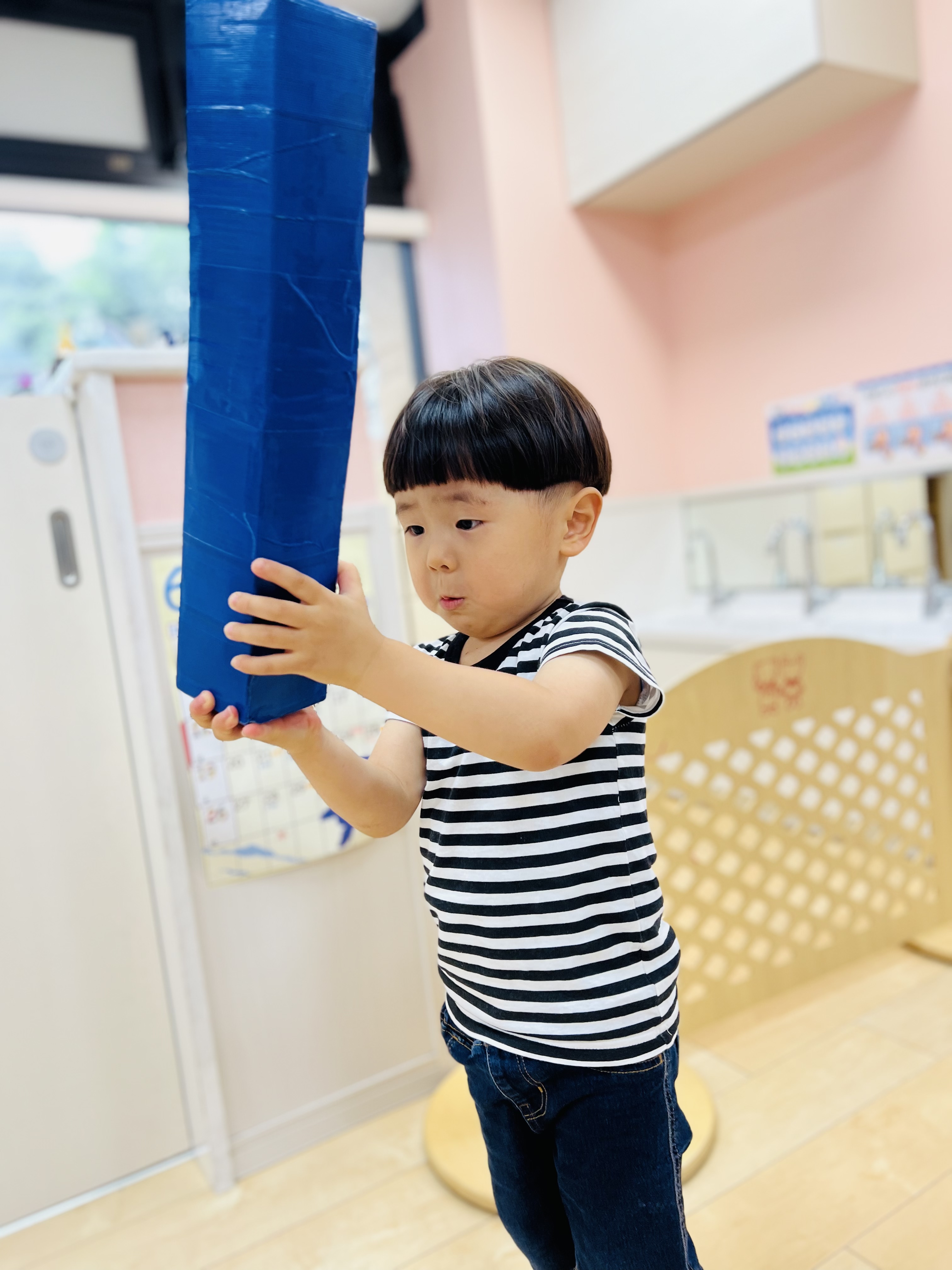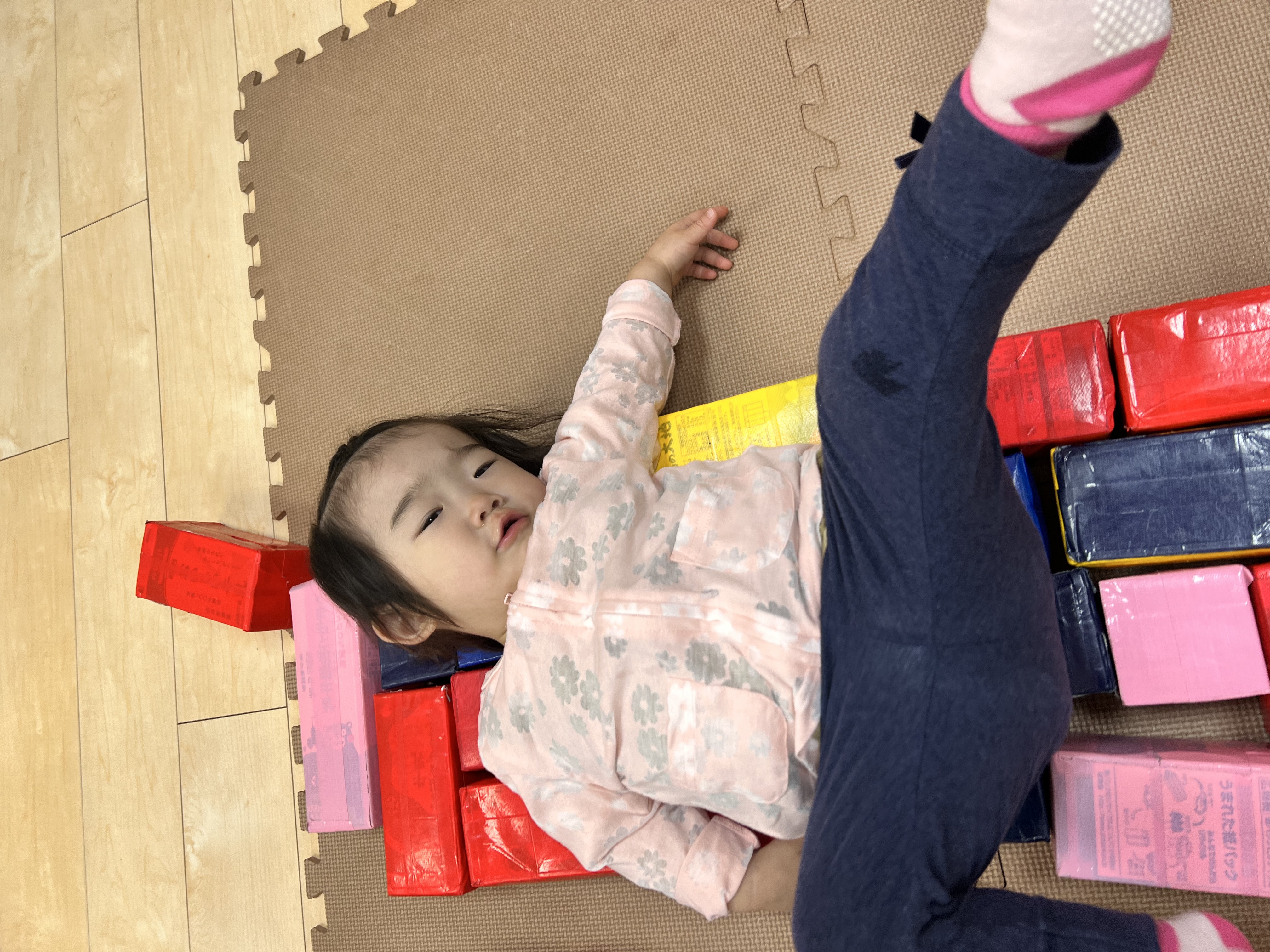 夕方は牛乳パック積み木で大はしゃぎ♫