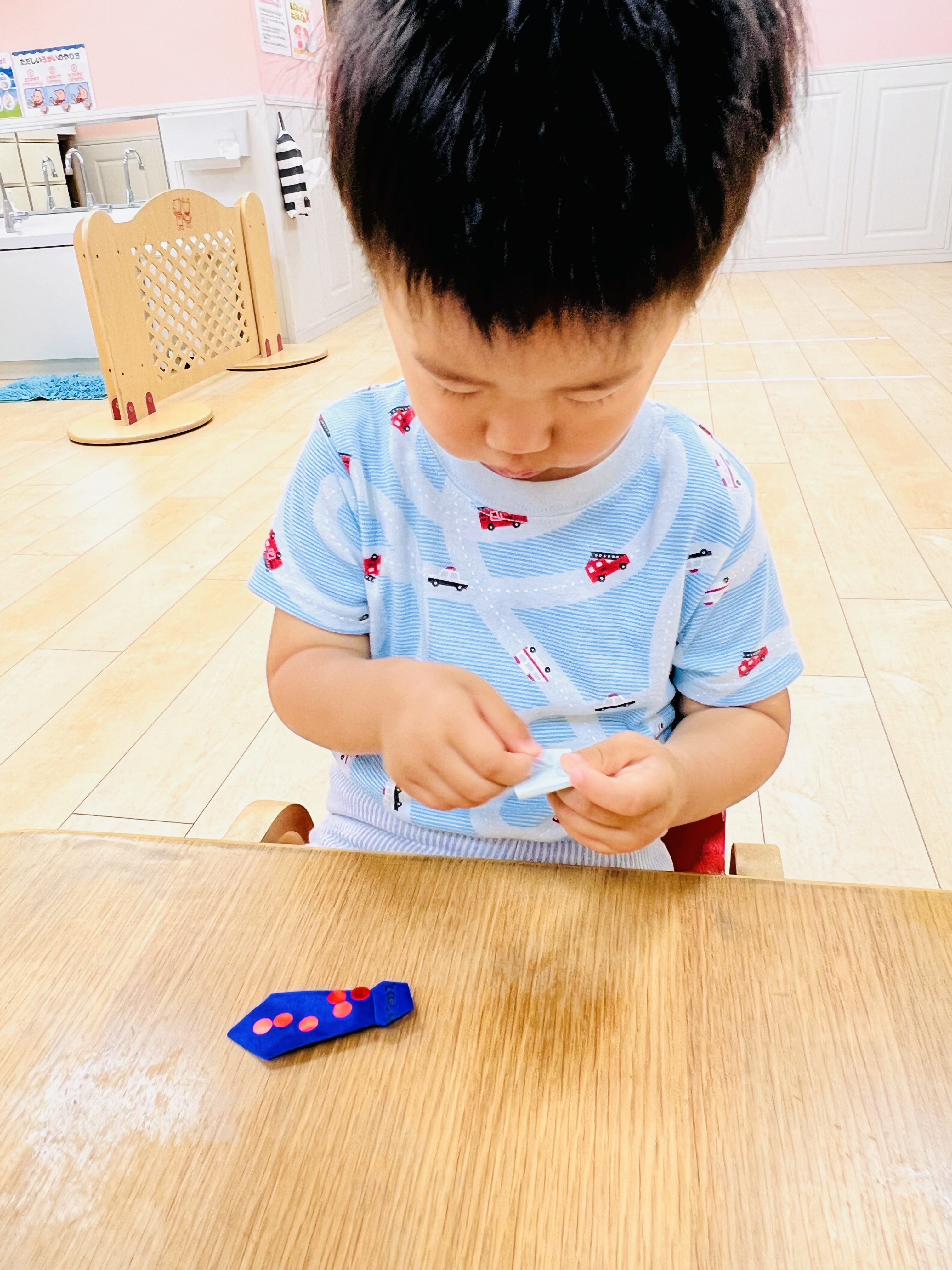 1歳児さんもシールに集中✨可愛いネクタイができてましたよ😊