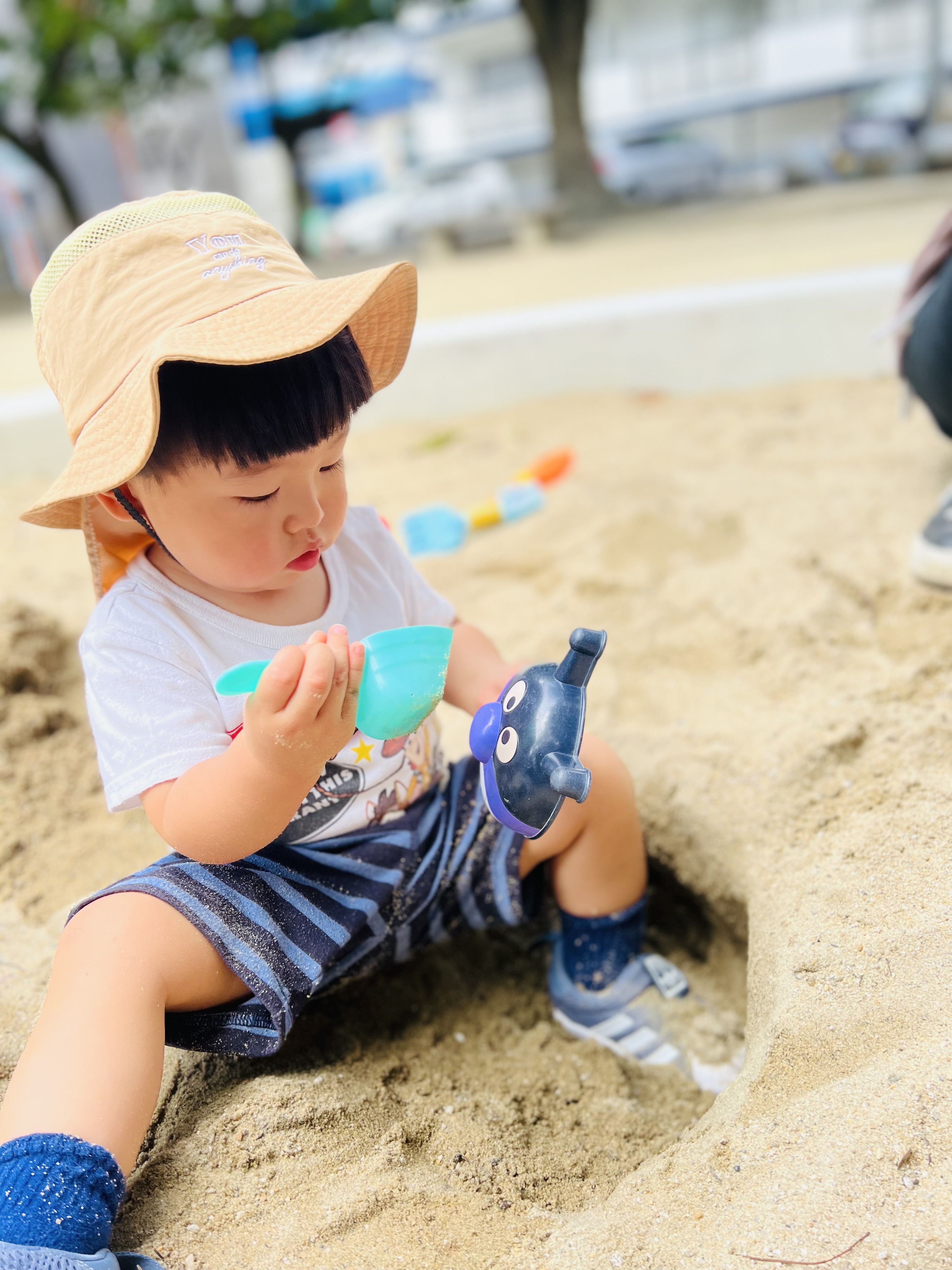 しっかり水分補給をしながらお外遊びを楽しみますよ♫