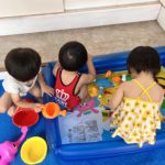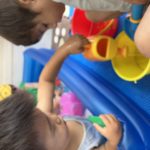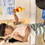霧吹きスプレー、手の小さな子ども達には難しいけど、両手を使ってお水を出すのに成功しました😊自分の力でできるようになると喜びもひとしおです✨