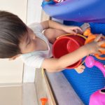 お水をすくえるかな?ペットボトルにお水を入れるのは意外に難しいんですよね😁