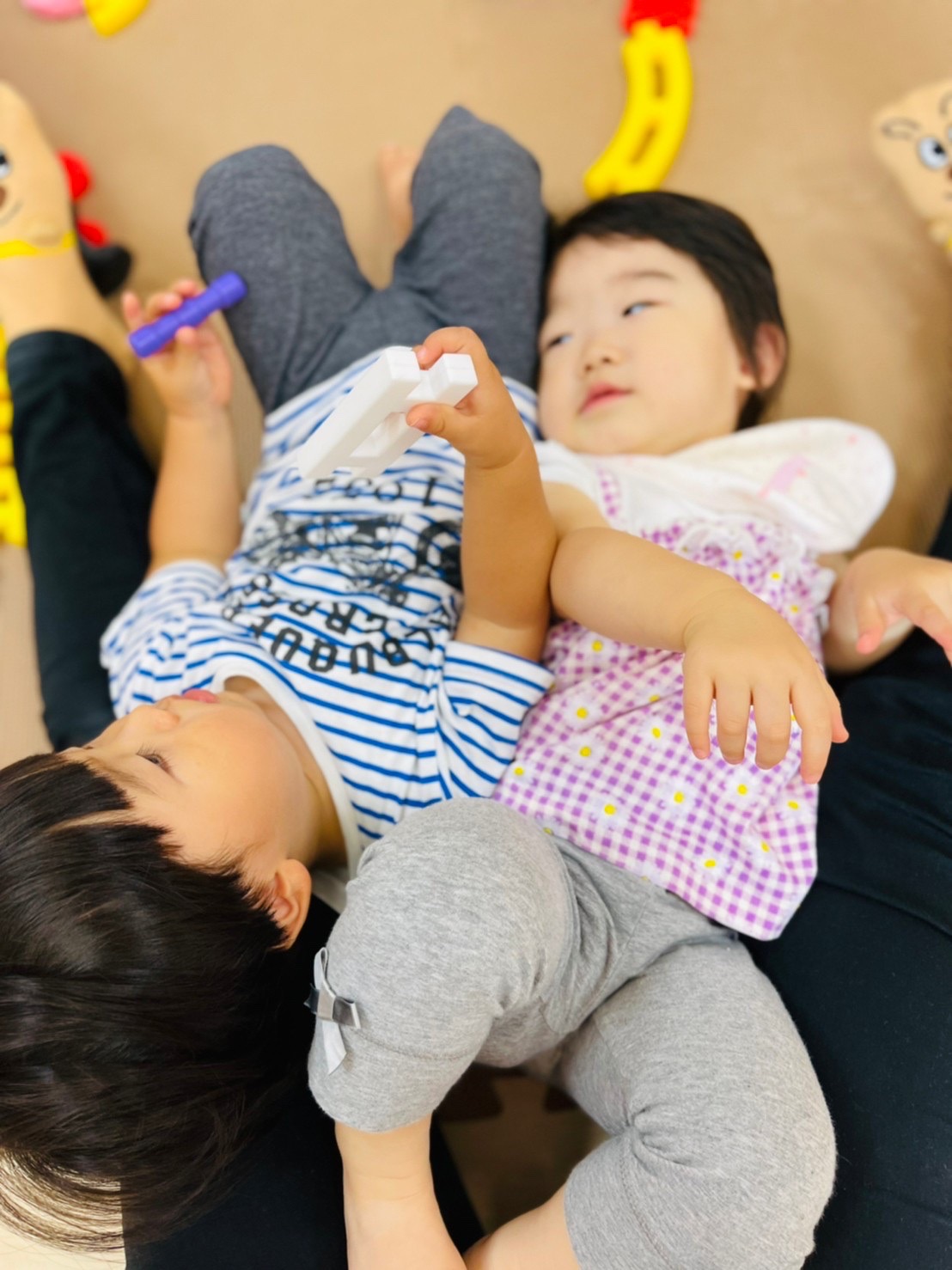 0歳児さんは音楽の鳴る絵本で遊んで、心地よく眠りましたよ😊