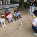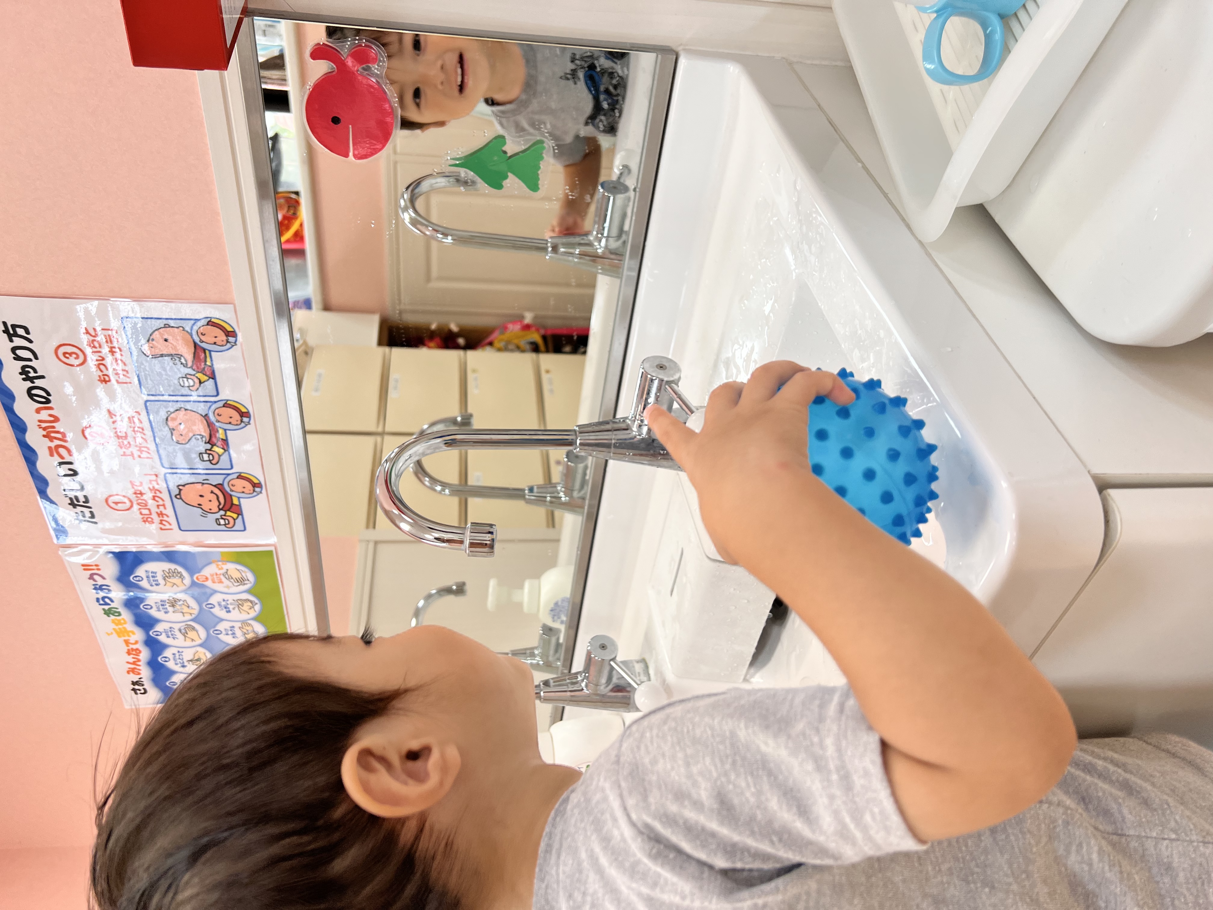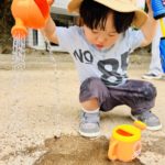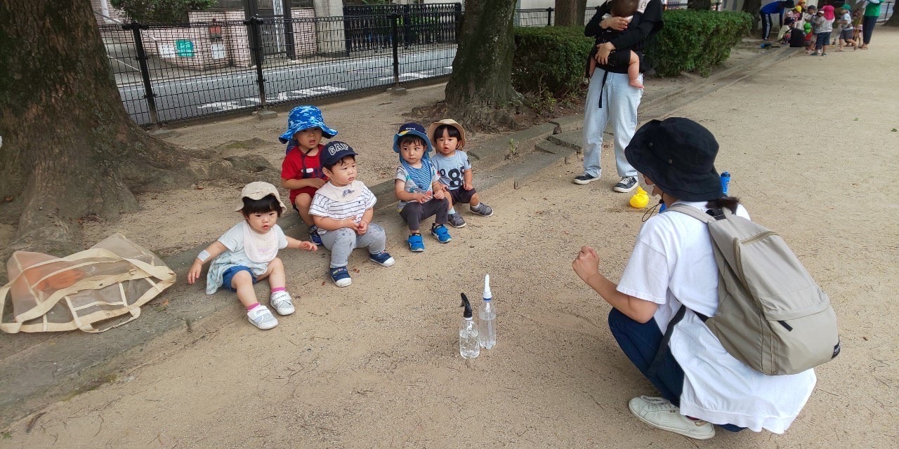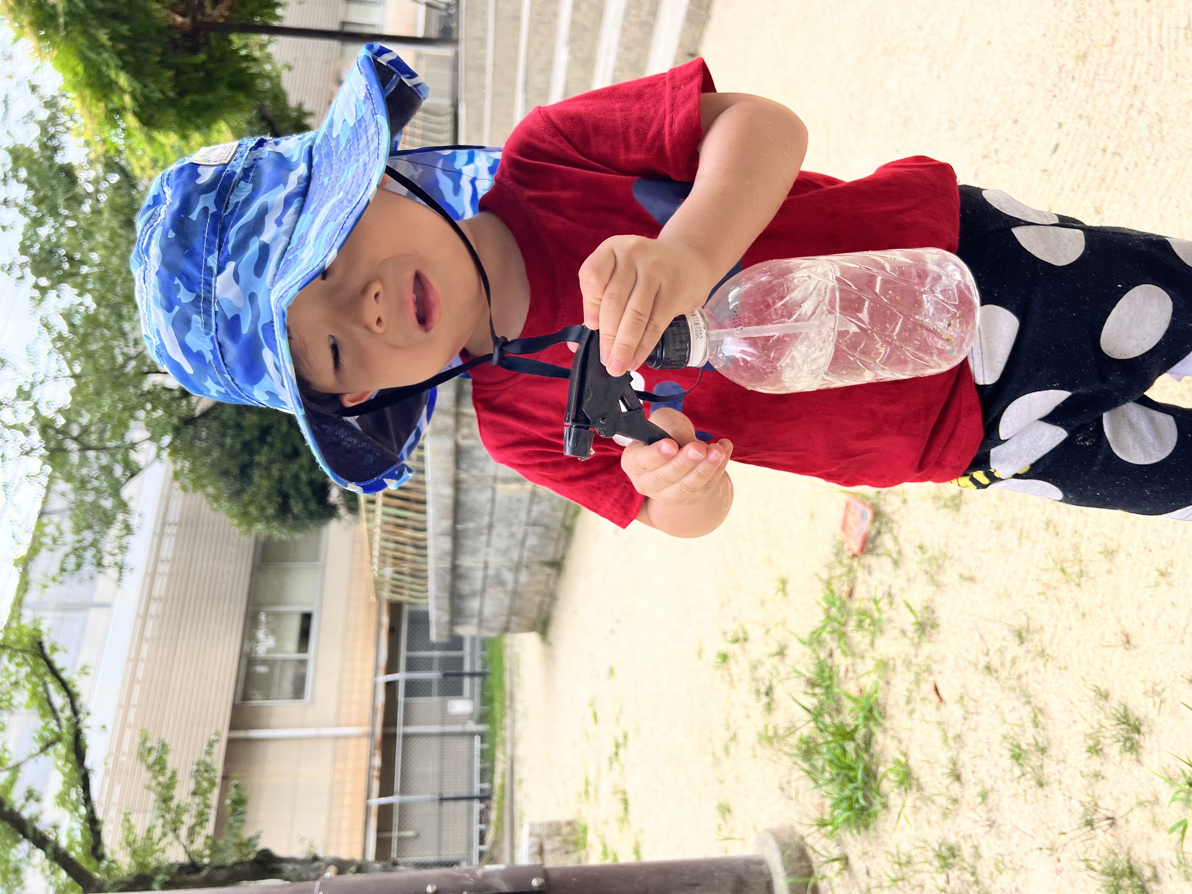 霧吹きスプレー、手の小さな子ども達には難しいけど、両手を使ってお水を出すのに成功しました😊自分の力でできるようになると喜びもひとしおです✨