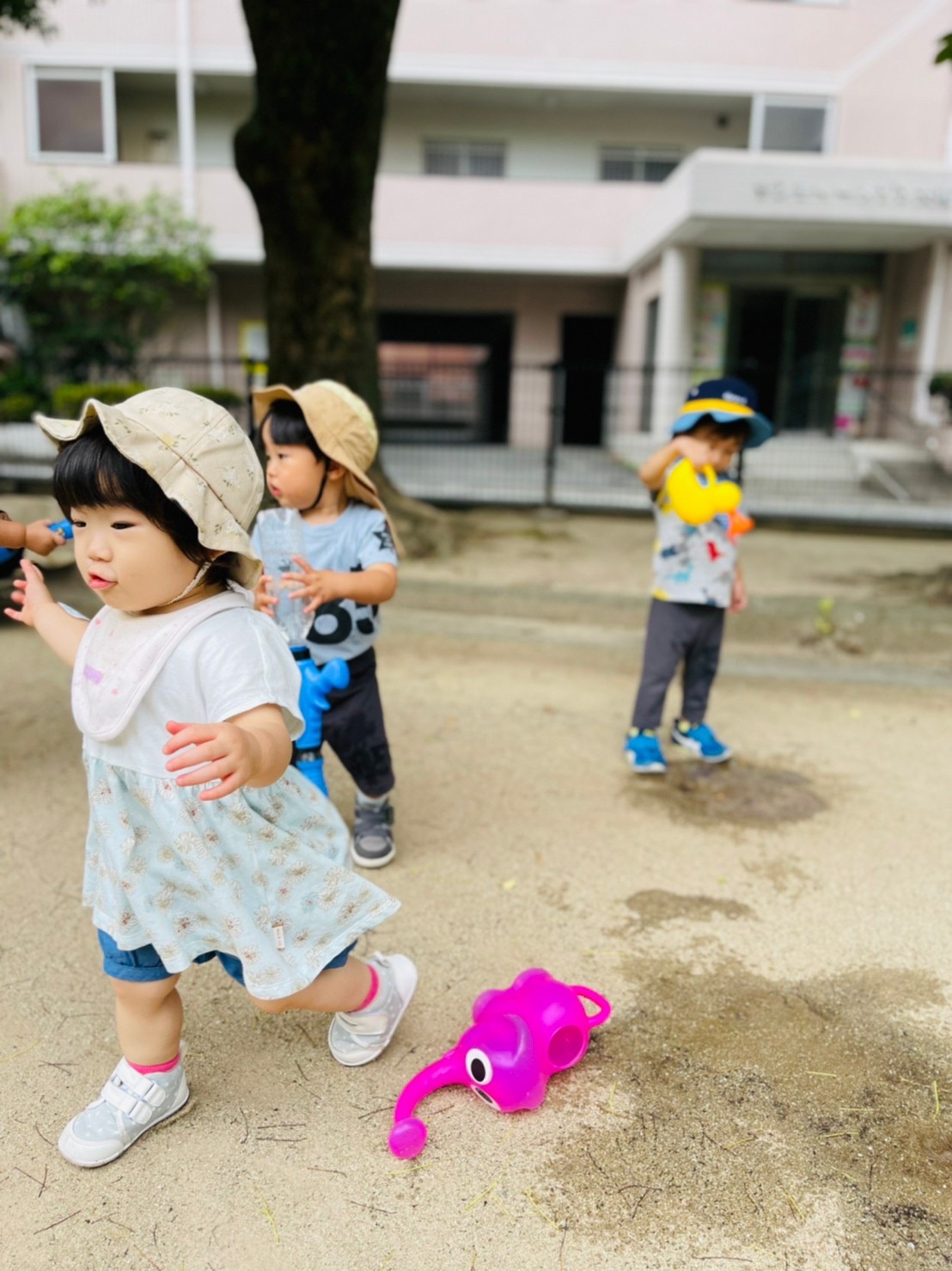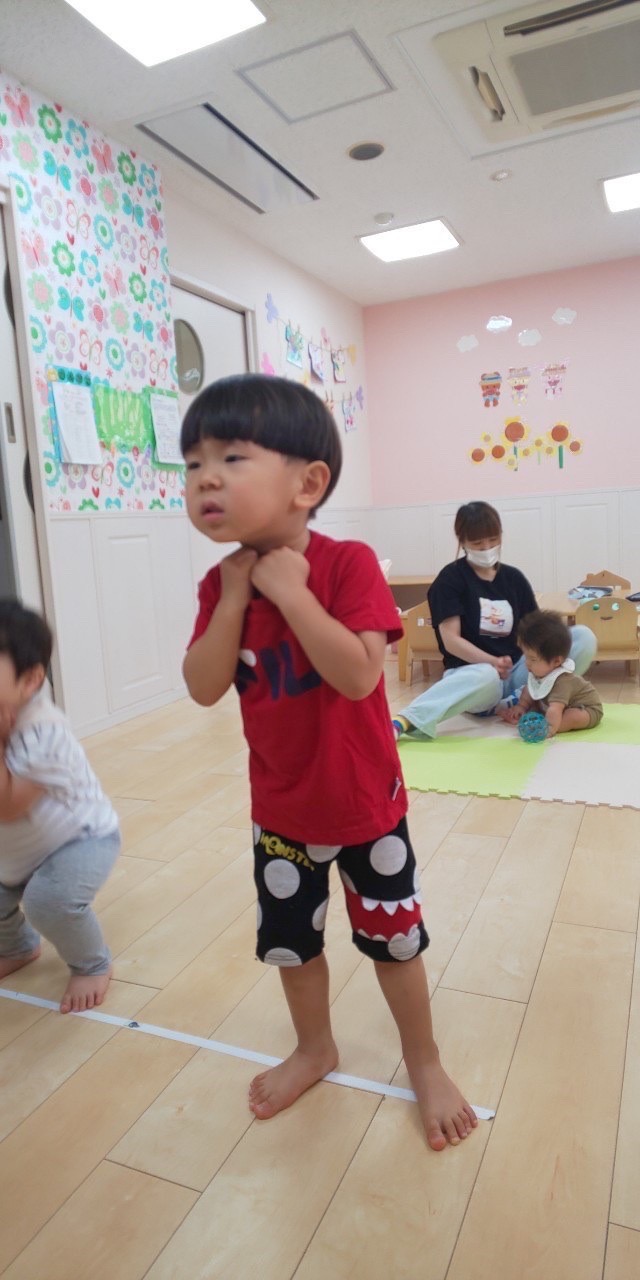 暑い為、10分程の外遊びでしたが、みんな伸び伸び遊んでました😊