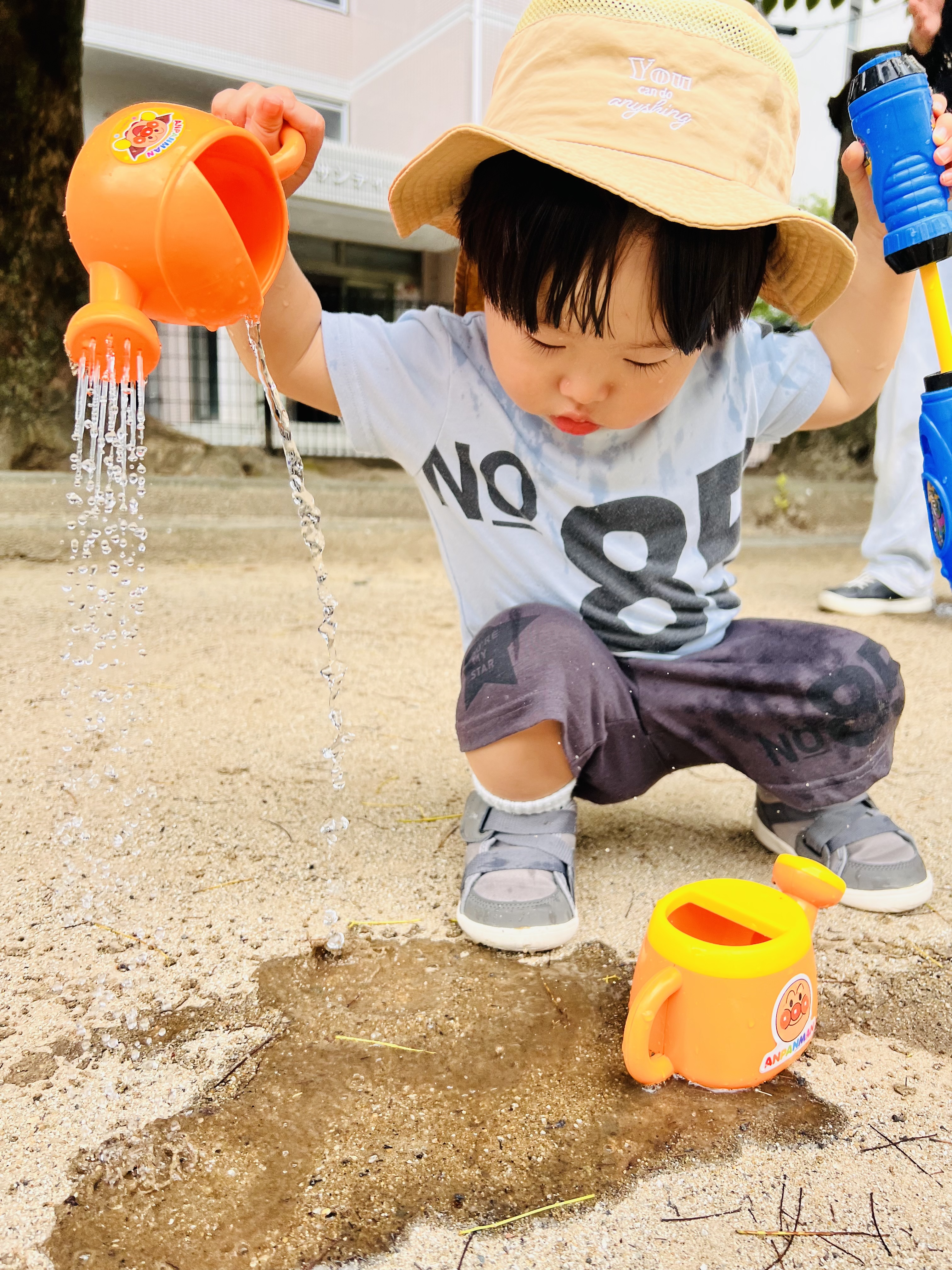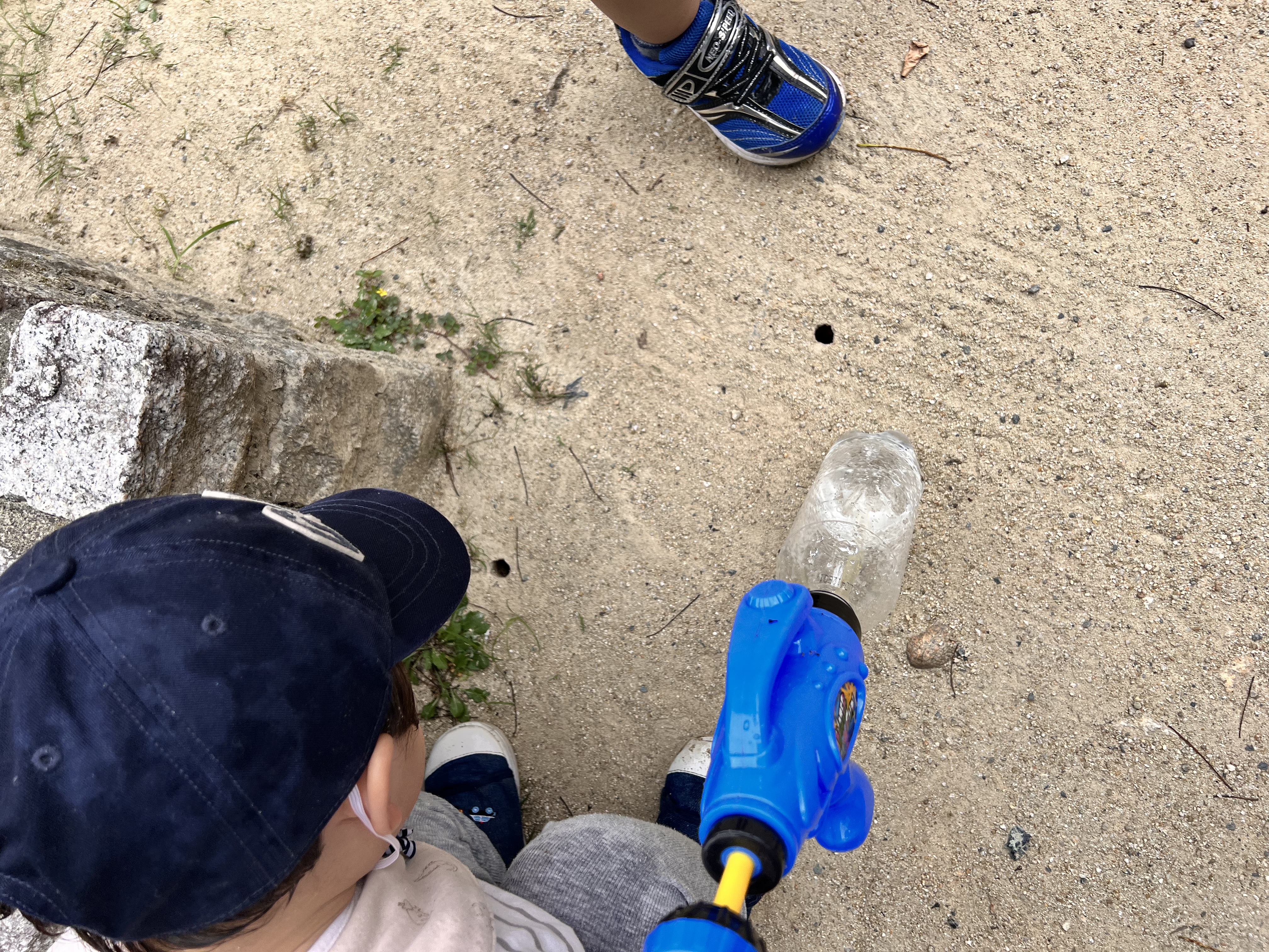 お水をすくえるかな?ペットボトルにお水を入れるのは意外に難しいんですよね😁