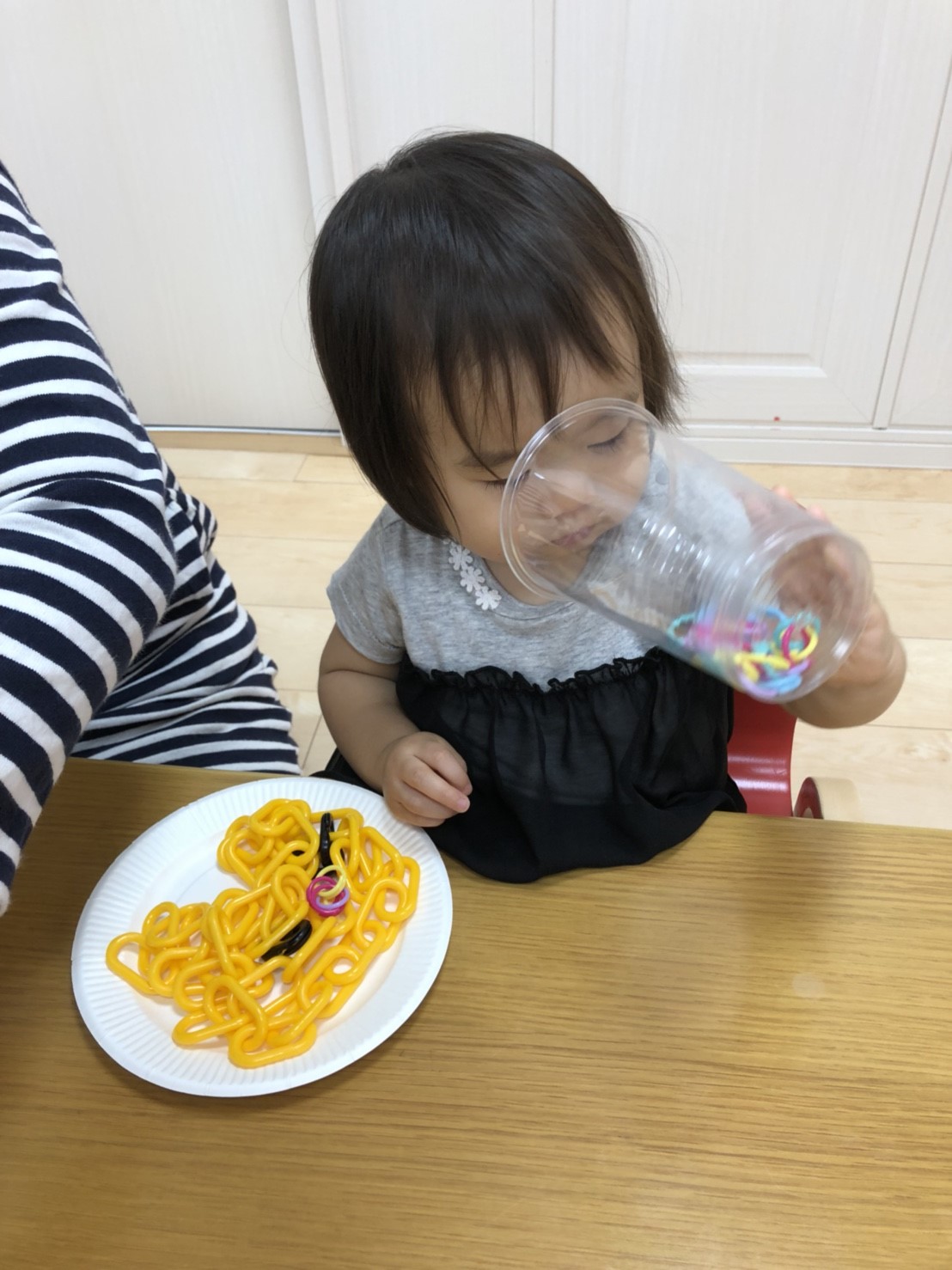 お皿を出すとなんだかスパゲッティのようになってますね♬