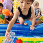 0歳児さんは水よりもバケツやジョウロをニギニギするのに夢中です🥰