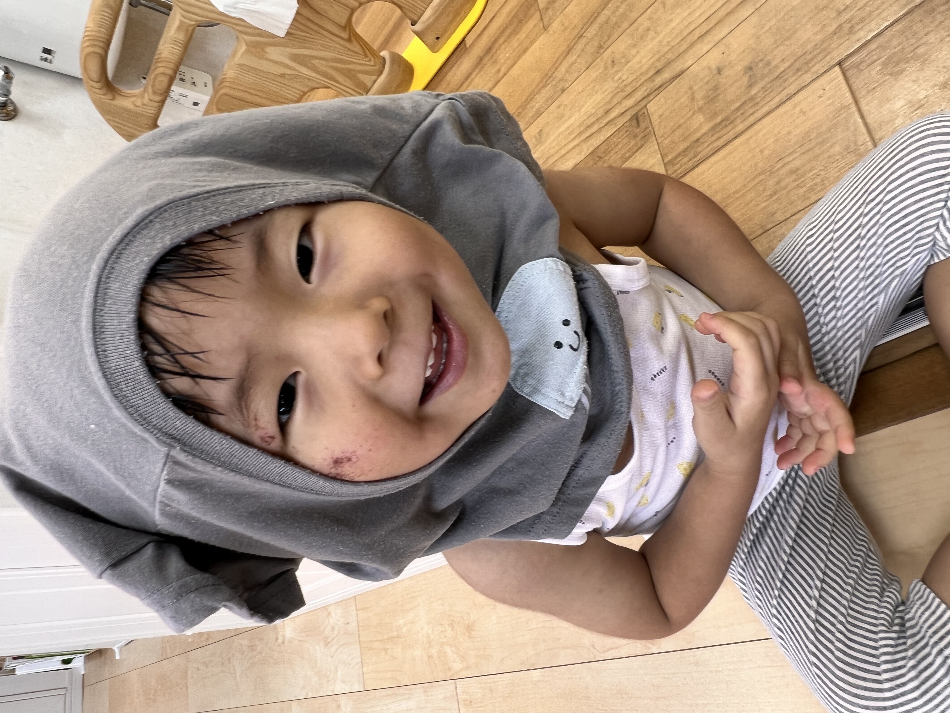 頭がー💦と泣いてるかと思いきやニンマリなお顔でした😁