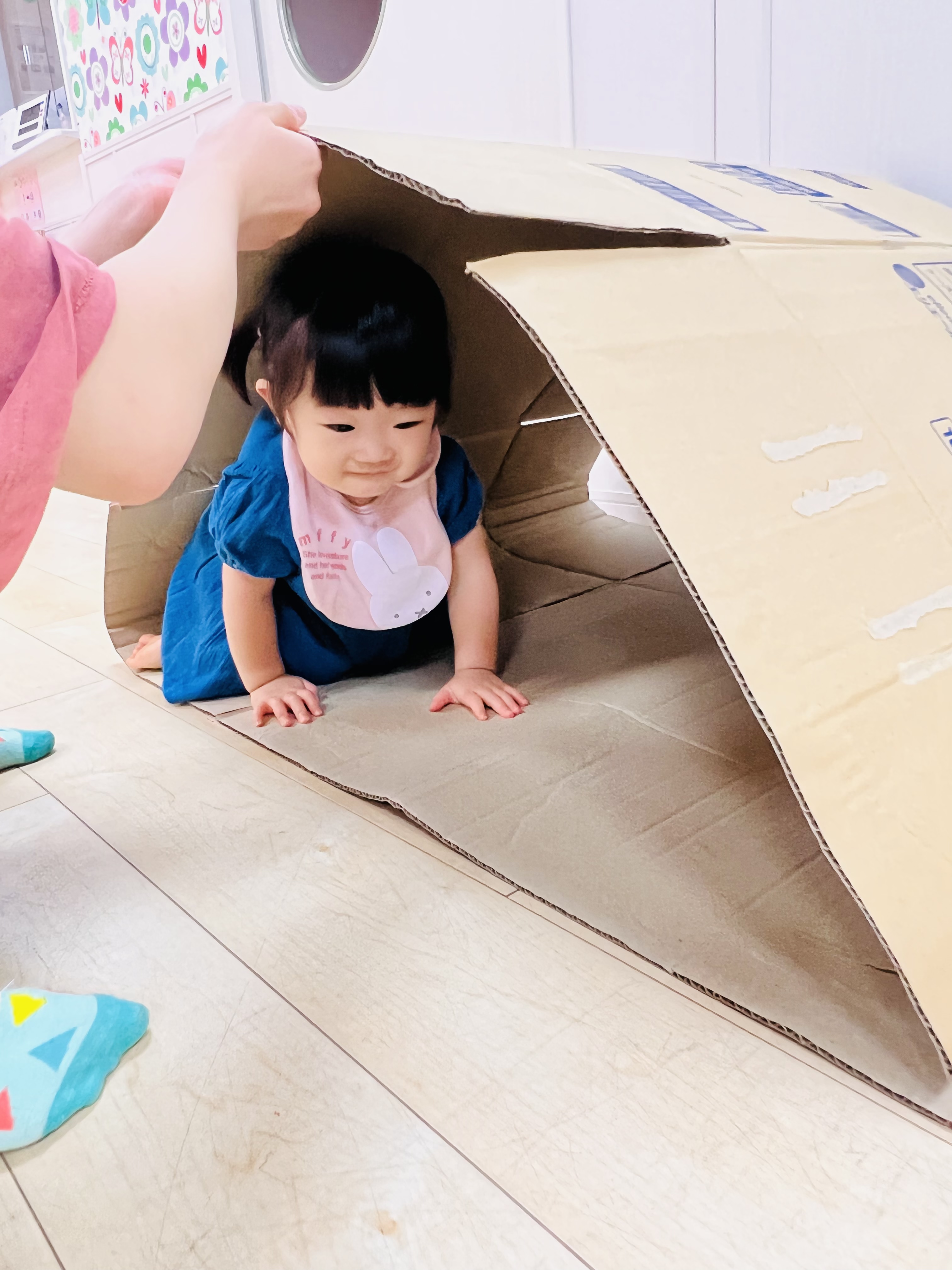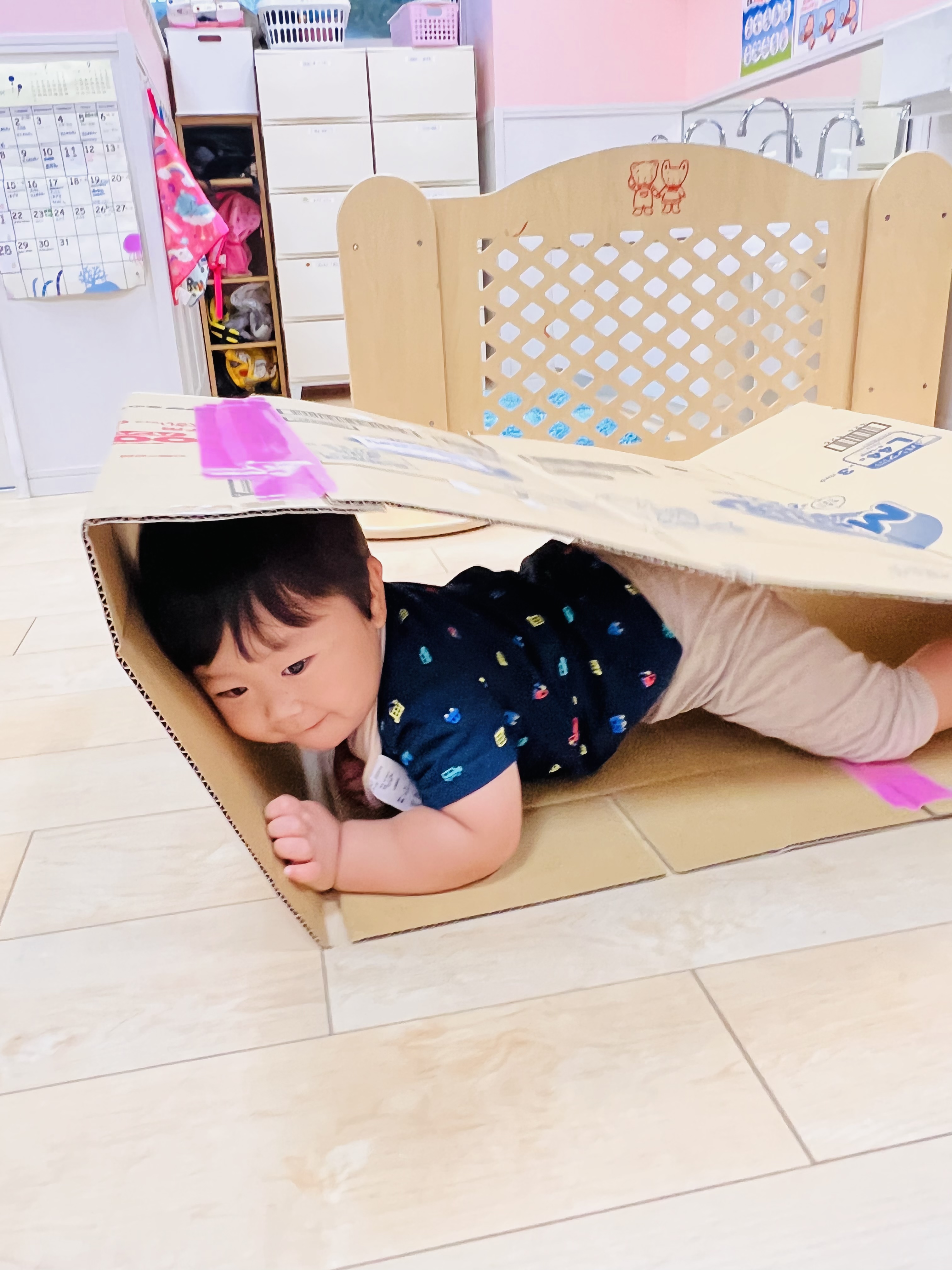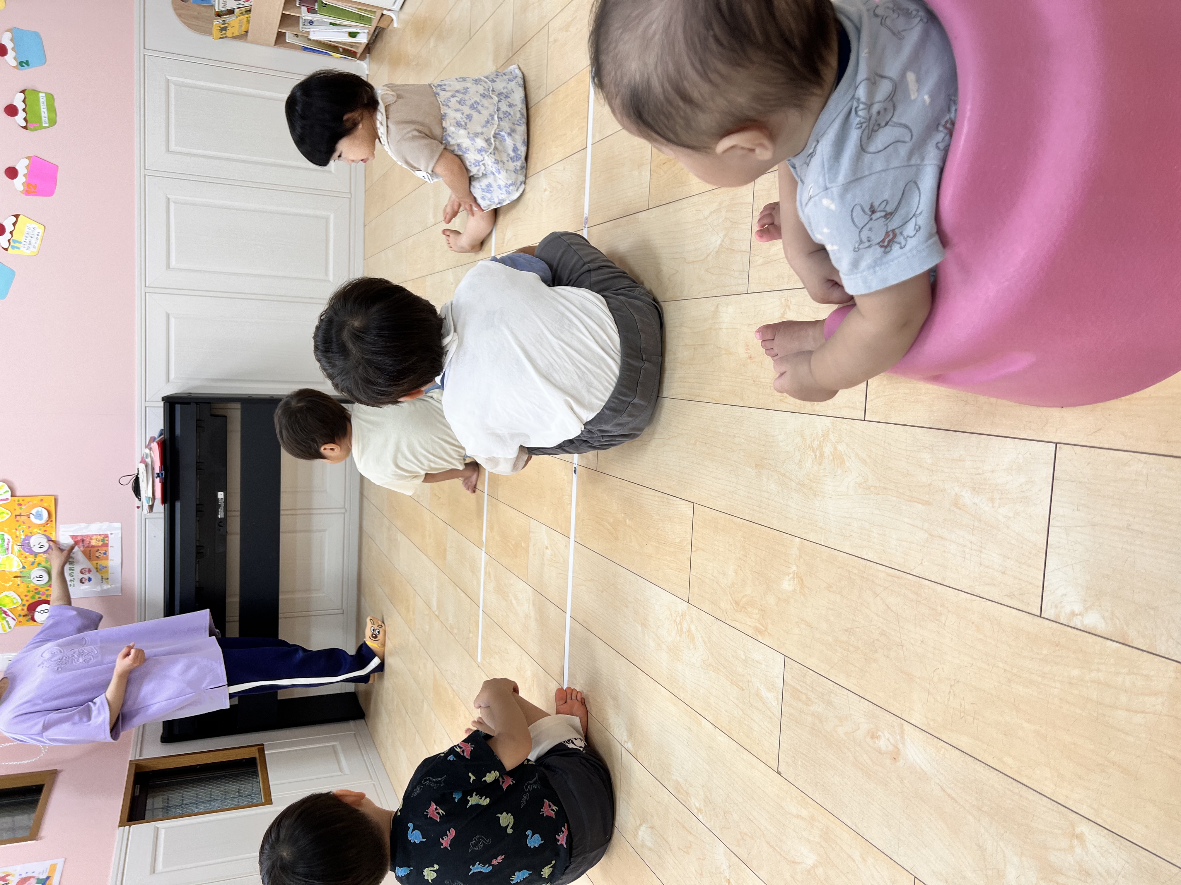 みんなゴール目指して最後までハイハイ頑張りました✨少しずつスピードが速くなったり、ハイハイの仕方や姿勢を変えてみたり、レースする度に進化する子ども達のキャタピラー、次は誰が1等賞をとるのか…予想のつかない子ども達の成長が楽しみです♫