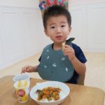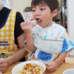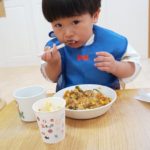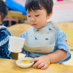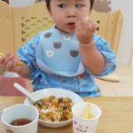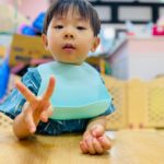 食べ終わったお友達は終わったよーとピースサイン✌️