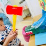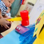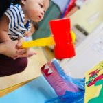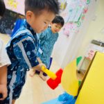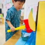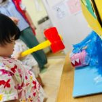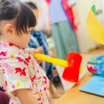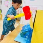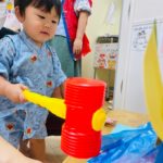 やる気いっぱい叩くお友達もいれば、先生の側で恐る恐るハンマーを握る子も😊